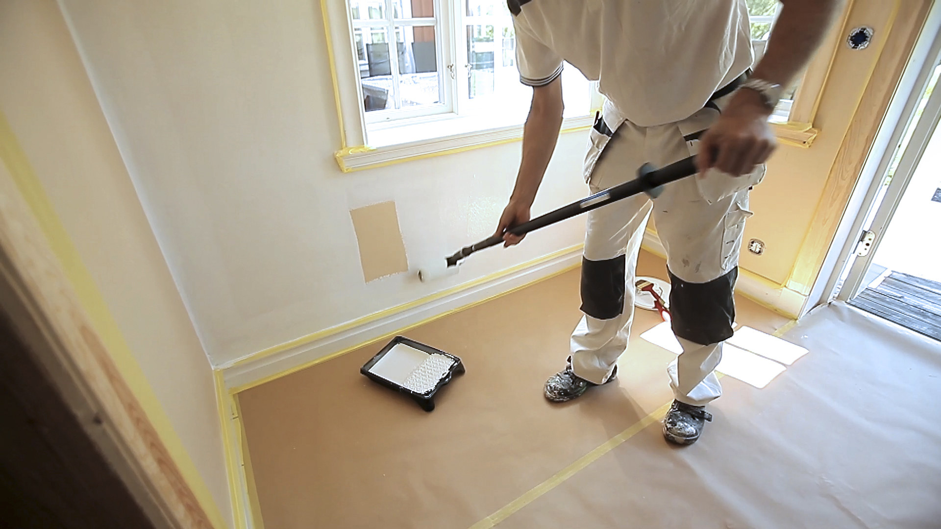 21 tips til deg som vil male som en proff! Male innendørs Chera WestmanOppdatert 06.04.2021 (Publisert 20.02.2015) Forskjellen mellom oss som maler en gang iblant, og en profesjonell maler er stor. Maleren gjør jobben raskere, med mindre søl og med et penere resultat. Men ved å ta håndverkerens beste tips til etterretning, kommer vi lekmenn et godt stykke på vei mot et proff resultat! Innhold Følg Dele Innhold 1. Les og lær: 2. Rengjør godt: 3. Vask smart: 4. Bruk anbefalt rengjøringsmiddel: 5. Fjern pelsen: 6. Tape eller skråpensel? 7. Isoler flekkene: 8. Stopp gjennomblødning: 9. Overhold tørketider: 10. Matt ned blanke flater: 11. Først grunning, så sparkel: 12. Bytt verktøy: 13. Riktig pensel: 14. Rull ut malingen: 15. Blanke flater: 16. Arbeid metodisk: 17. Bruk malebøtte: 18. Mal inn i hjørnet: 19. Overganger: 20. Ikke glem listverket: 21. Fukt luften: Følj Følg ifi.no på Facebook, TikTok og Instagram.Registrer deg her og motta vårt nyhetsbrev, med nye artikler og nyttige tips 2-3 ganger i måneden. Motta nyhetsbrev Dele Send til epost Cancel Send Det finnes ingen snarveier når vi snakker om maling. Det gjelder å gjøre et nøyaktig grunnarbeid og bruke maling av høy kvalitet. Da blir sluttresultatet perfekt.En god hjelp på veien er dog å følge proffenes arbeidsråd. Her er de 21 beste tipsene for raskt innendørs malearbeid med godt resultat! 1. Les og lær: Les informasjonen på emballasjen, og følg veiledningen. 2. Rengjør godt: Defekter og skavanker i taket kan ikke skjules bare med maling. Bruk 80 prosent av tiden til forarbeid, og 20 prosent til selve malingen. Vask grundig slik at flaten er ren før du setter an penselen. VASK: Alt malearbeid starter med rengjøring. Jordan Foto: Jordan 3. Vask smart: Fyll en liten pumpekanne med vann og rengjøringsmiddel, og dusj flaten med det. Skyll og tørk deretter med en mikrofibermopp og rent vann. Arbeid over mindre områder av gangen, og bytt skyllevann ofte. 4. Bruk anbefalt rengjøringsmiddel: Malervask, forvask, husvask. Små flater kan rengjøres med spesiell våtservietter som er beregnet for rengjøring før maling. Kraftvask, salmiakk, grønnsåpe, Zalo og rødsprit anbefales ikke. 5. Fjern pelsen: Etter vask vil fibrene i ubehandlede treoverflater reise seg. Slip i fiberretningen med fint sandpapir, og fjern deretter alt støvet med mikrofiberklut. FJERN PELSEN: Etter vask vil fibrene i treverket reise seg. Puss lett over med fint slipepapir eller en fin slipepad. Foto: ifi.no 6. Tape eller skråpensel? Overflater som ikke skal males, beskyttes med maskeringstape. Ta bort tapen med det samme du er ferdig med å male, slik at den ikke fester seg til underlaget. Eller gjør som proffene – bruk skråpensel inn mot kanter og spar ut malingen (presisjonsmal forsiktig inn mot kanten) – i stedet for å bruke masse tid på å maskere med tape. PRESISJON: Var stø på hånden og bruk skråpensel istedenfor å maskere. Foto: Jordan 7. Isoler flekkene: Kvistene dør aldri, og nikotin, sot fra stearinlys og vannskjolder kan være vanskelig å male over med godt resultat. Misfargingen har ingen problemer med å trenge gjennom flere sjikt maling. Bruk et eller to strøk sperregrunning eller isolermaling før malingen påføres. MISFARGING: Grunning gir god vedheft til toppstrøket. Sperrgrunn og isolergrunn forhindrer misfarging. Foto: Jordan 8. Stopp gjennomblødning: Er det flekker i taket du er litt usikker på om må isoleres, mal dem et strøk først og se om det kommer gjennom. Gjennomblødning skjer umiddelbart. 9. Overhold tørketider: Ha ikke for dårlig tid mellom behandlingene, la strøkene tørke godt for et bedre sluttresultat. FLERE SJIKT: Overhold tørketidene. Foto: Beckers 10. Matt ned blanke flater: Lakkert treverk, og treverk malt med blank maling må mattslipes. Viktig er da å vaske før sliping, ellers gnir vi skitten fast i underlaget. 11. Først grunning, så sparkel: Grunn alltid før du sparkler. Påfør deretter alltid to strøk grunning oppå sparkel, ellers får flaten glansskjolder. Hvis du sliper på grunningen, merk med blyant hvor du har slipt, og flekkgrunne de stedene. 12. Bytt verktøy: Ikke bruk samme pensel til kvist- og sperregrunning basert på epoksyharpiks, som du bruker til malingen etterpå. 13. Riktig pensel: Svanehalspensel er ergonomisk, gir lang rekkevidde og er god å bruke inntil taklister og i hjørner. Velg bredde på penselen etter oppgaven og flatens størrelse. Bruk en oval eller flat pensel til påføring over store flater, en rund eller skrå til detaljer og profiler. NÅ OPP OG INN: En pensel med langt skaft gir ekstra rekkevidde. Foto: Jordan 14. Rull ut malingen: Påfør maling med rull, og fordriv (jevne ut) med en flat pensel. Ved arbeid over store flater som tak og vegger settes begge verktøyene på forlengerskaft. Det gir god rekkevidde og en ergonomisk arbeidsstilling. Ikke dra ut skaftet for langt. Stå plassert under verktøyet, ikke ved siden av. 15. Blanke flater: For ekstra blankt resultat slipes og sparkles flaten lett etter at den er grunnet. Deretter påføres et mellomstrøk toppmaling, og flaten slipes lett en gang til. Deretter påføres toppstrøk. 16. Arbeid metodisk: Mett rullen og rull ut ett dypp. Fordriv umiddelbart, før du dypper rullen igjen og påfører mer maling. Start med å rulle tilbake inn i den våte, fordrevne malingen. Ikke press verktøyet for hardt mot underlaget, vær lett men bestemt i bevegelsene. 17. Bruk malebøtte: Slå malingen over i en rullebøtte, da slipper du å avbryte for å fylle på mer maling så ofte. 18. Mal inn i hjørnet: Start aldri med maling i hjørnet. Bedre er å sette ned pensel eller rull et lite stykke ut, og male inn i hjørnet. Det synes alltid hvor du setter ned penselen, aldri hvor du løfter den. 19. Overganger: Der vegger og tak er kledd med gips, sparkles overgangen mellom tak og vegg med en papirstrimmel brettet i vinkel. Er veggene kledd med gips, mens taket er av betong