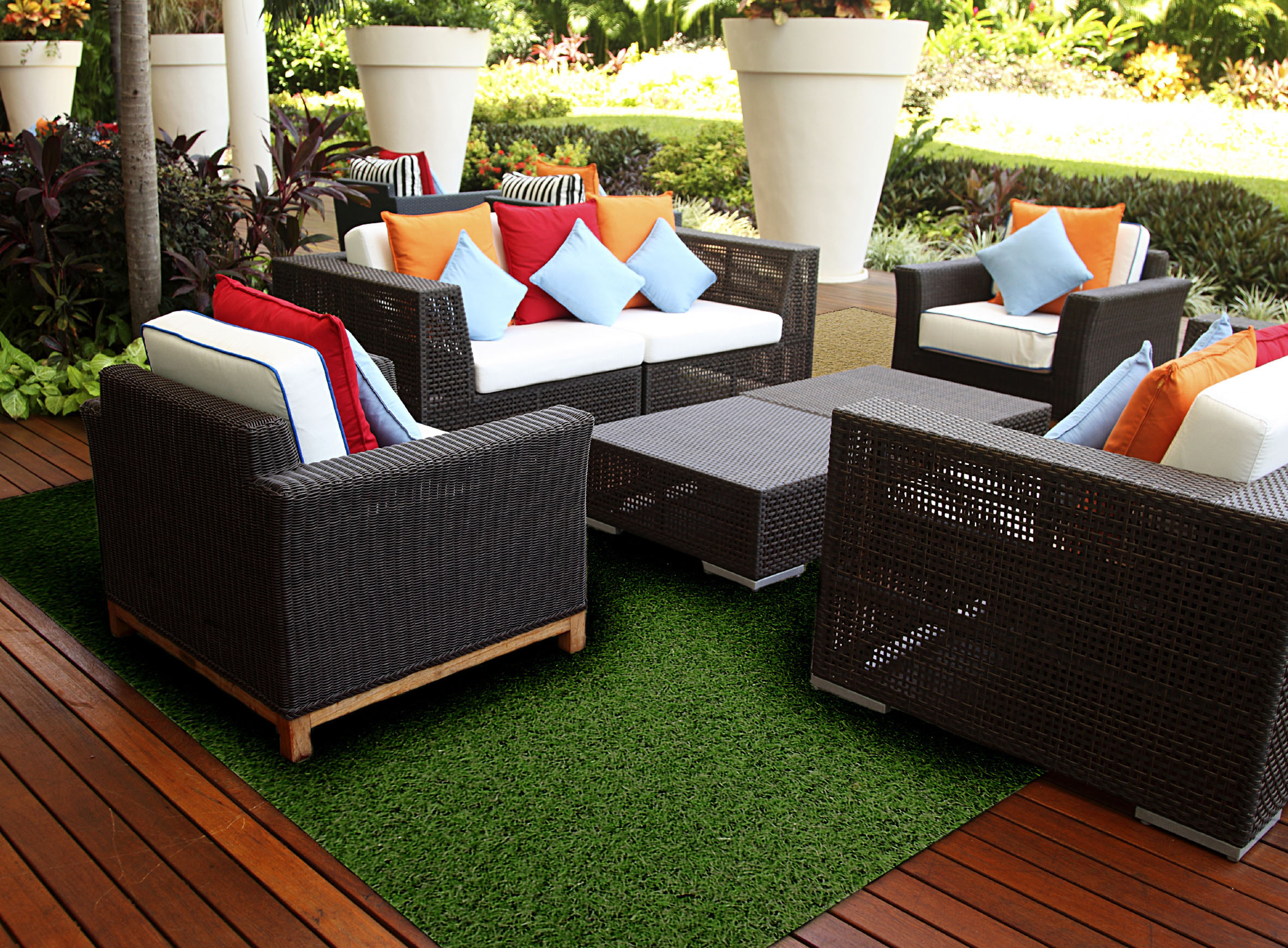 – Kunstgressteppe på verandaen er både praktisk og behagelig. Det er godt å gå på og ligger stabilt så lenge underlaget er solid og stødig. En slik løsning vil være ideell for eksempel på et murdekke til en gammel terrasse, sier Henriksen.