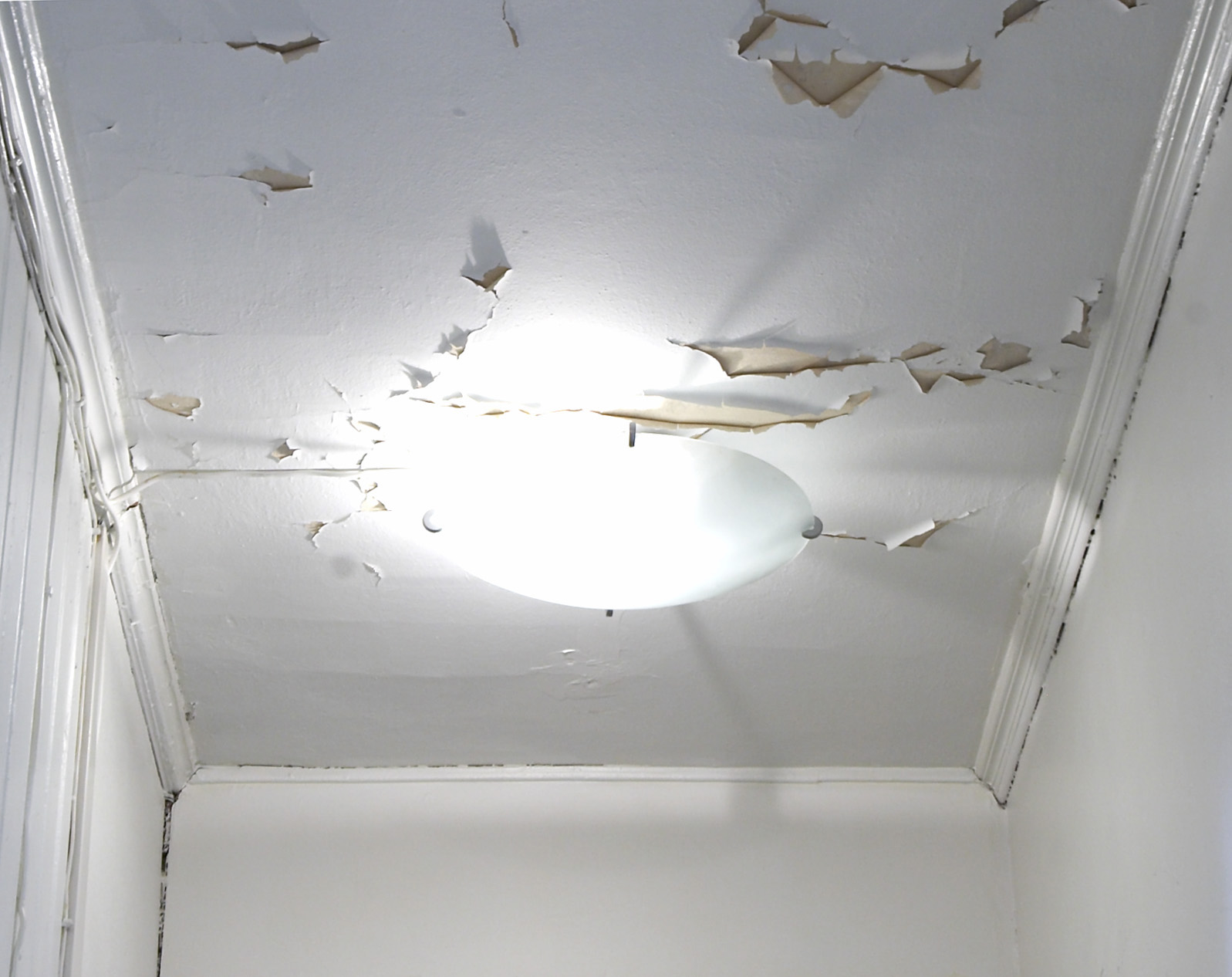 Kunststoff kan limes - gips krever noe mer. Lister skal skrus opp. Bor hull i gipsen og lag en forsenkning til skruen. Skruehull, endeskjøter og fuger tettes med gipsmasse.