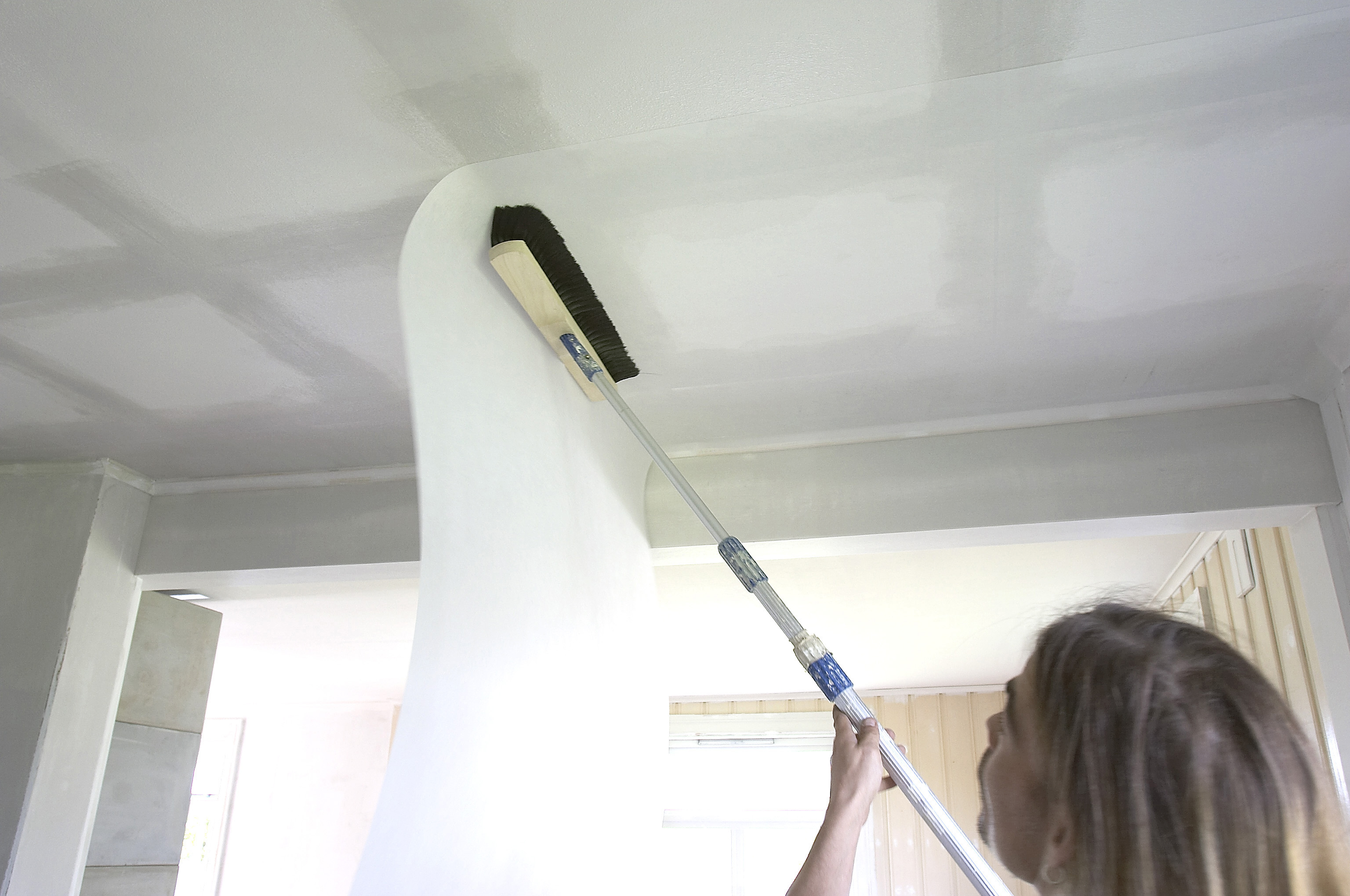 På malte, strukturerte plater som skal glattes brukes husfix eller tilsvarende til sparkling. Deretter limes det opp underlagsduk før maling.