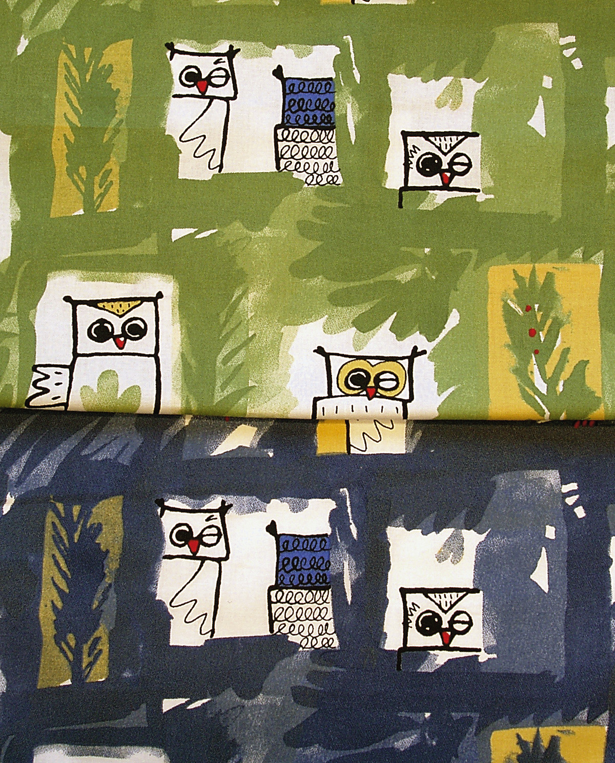 De blunker til deg! En gøyal tekstilnyhet med uttrykksfulle ugler. Tilhørende kolleksjon har større ugler på hvit, grønt eller blå bunn. Tekstilenes farger er fristende å bruke flere steder i rommet, som maling på et møbel eller en malte vegger.