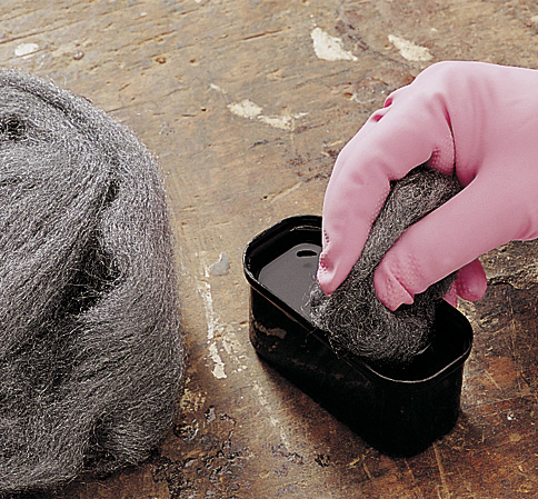 Gå først over møblene med møbelrens med stålull nr. 0, før du påfører maling- og lakkfjerner på flatene med en naturbustpensel. Følg produsentens anvisninger om virketid, og tørk av med stålull nr. 2. Nøytraliser deretter med en ny omgang møbelrens, og la det tørke.