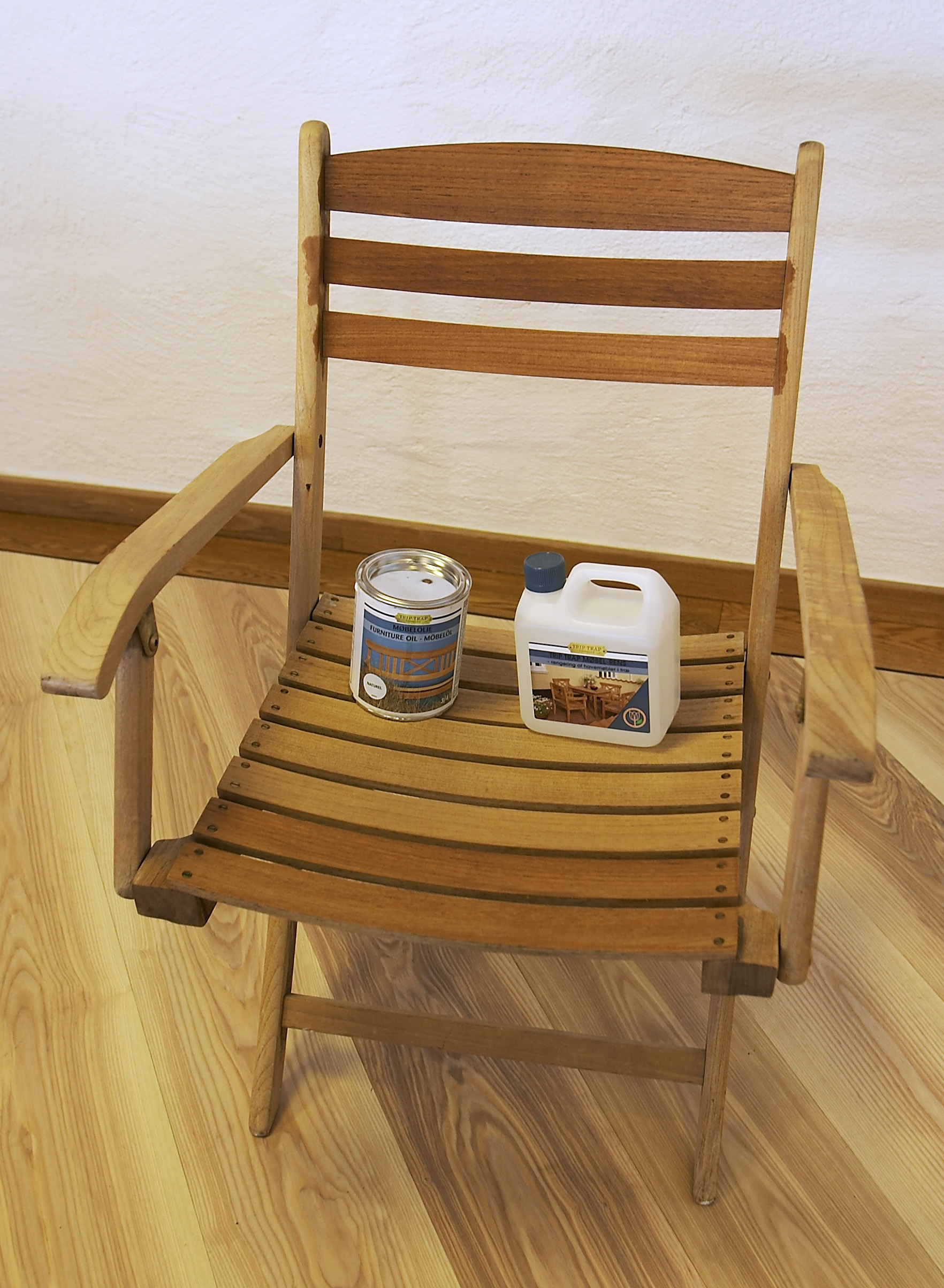 Man behøver ikke rense teakmøblene helt hvert år. I stedet kan man bruke den enklere løsning med enkomponent-produktet Trip Trap Møbel-Rens årlig og deretter oljebehandle en gang pr. sesong.