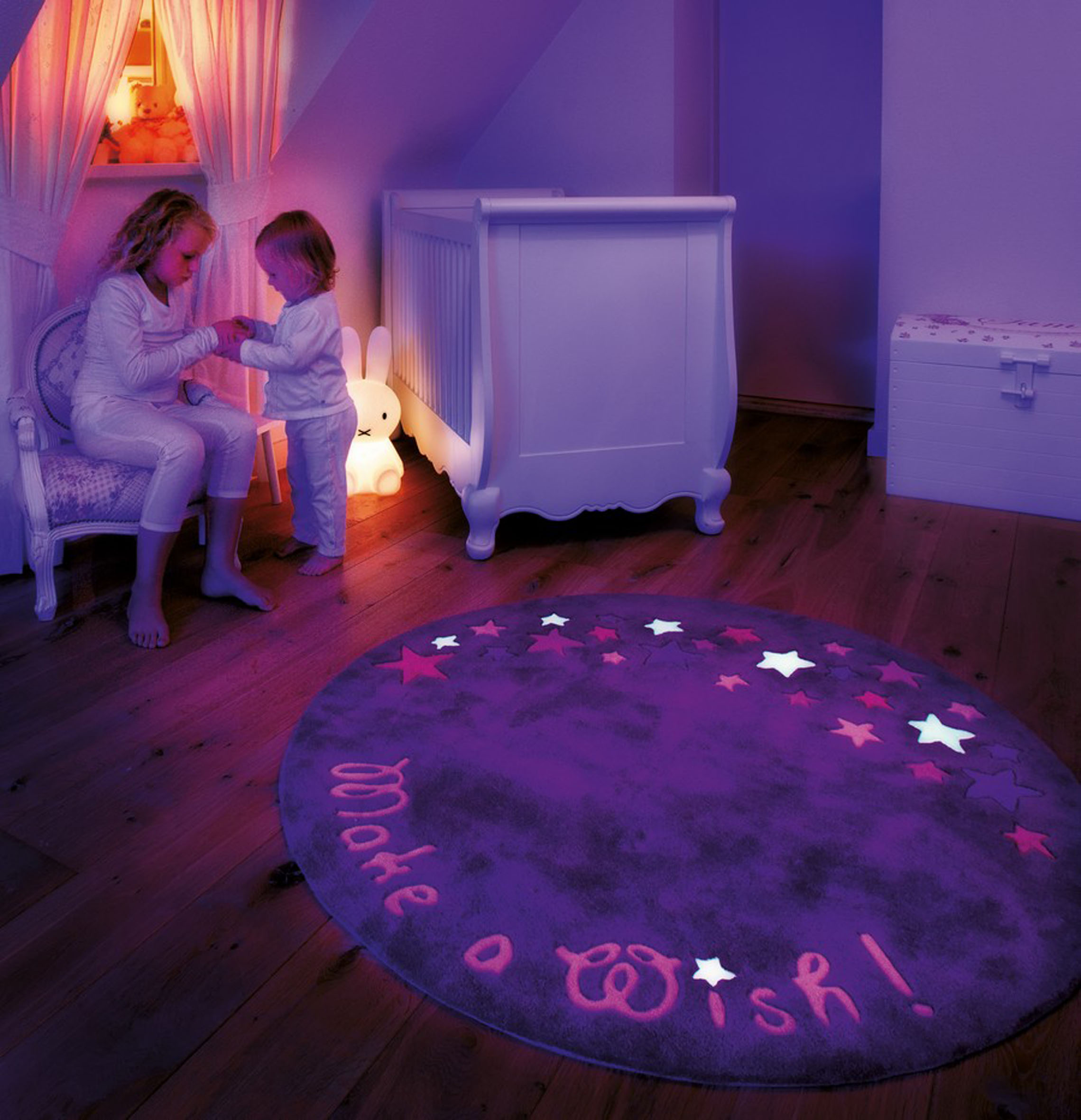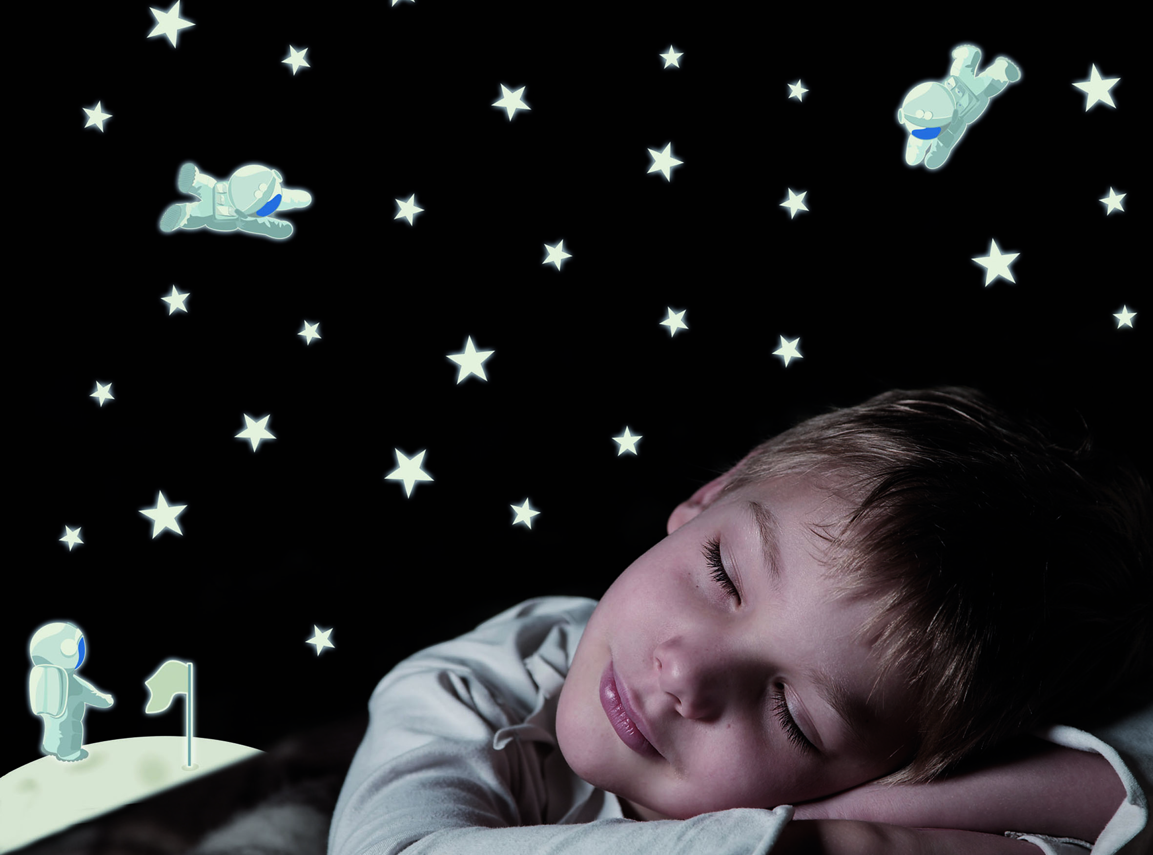 Annet som er populært i barnerommet er små lysende klistremerker man setter på veggen, i taket eller direkte på sengen, som sengegavlen.
