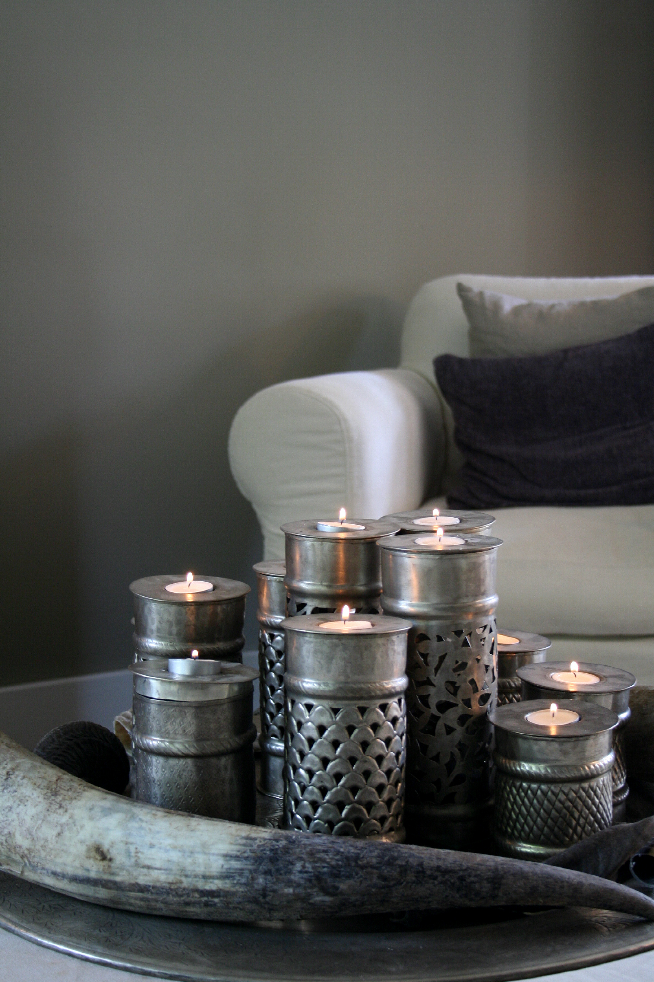 I tråd med høstens viktigste interiørtrend, er fargeskalaen holdt lun og forholdsvis mørk. Det finnes ikke en eneste hvit vegg i hele boligen, men helhetsinntrykket finnes ikke mørkt og dystert av den grunn. God belysning, lyst tak og lyse møbler gjør likevel at rommene virker åpne og lyse, og som gode sted å oppholde seg. Hovedrommene er malt med fargen River Silt – en anvendelig farge som passer til det meste.