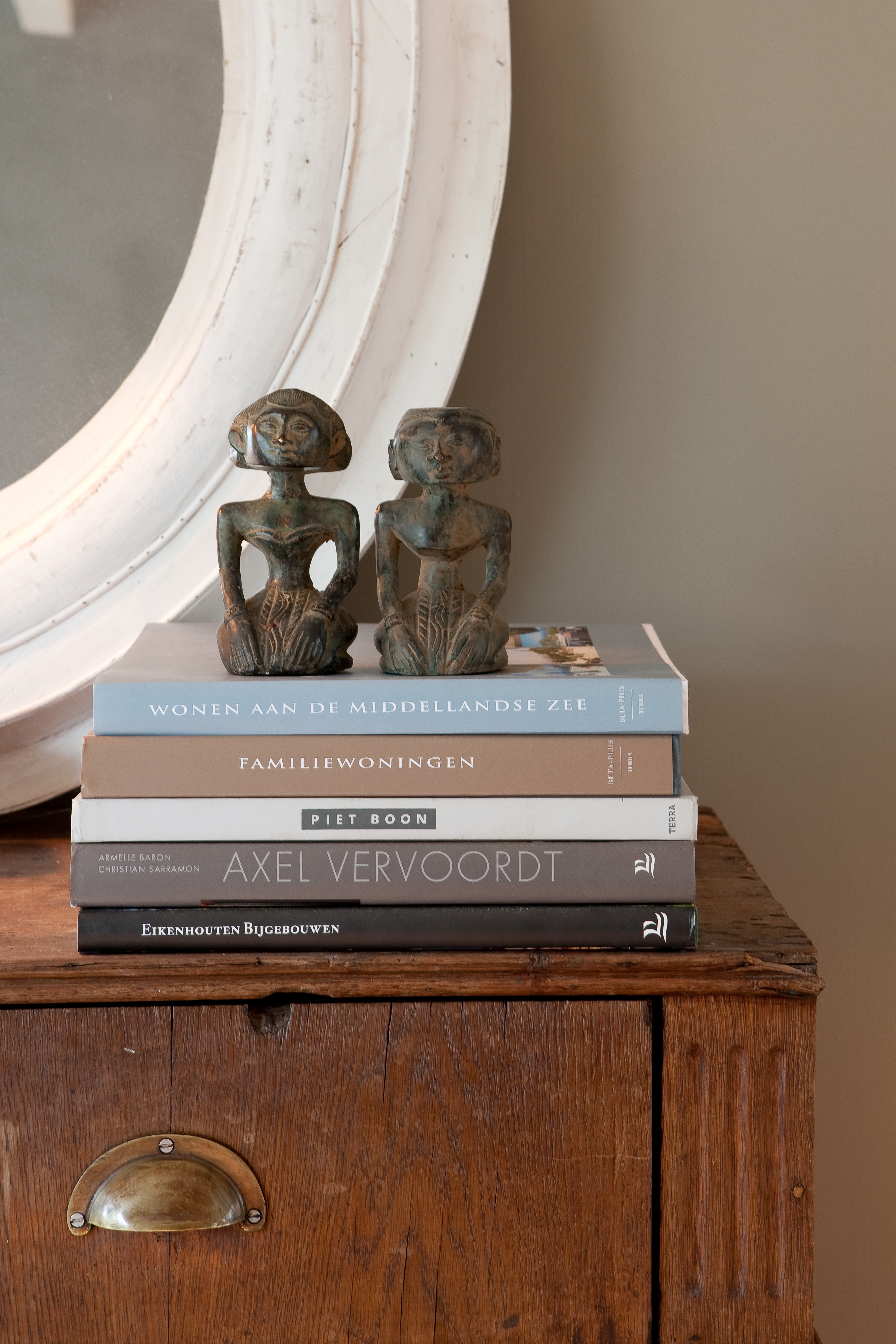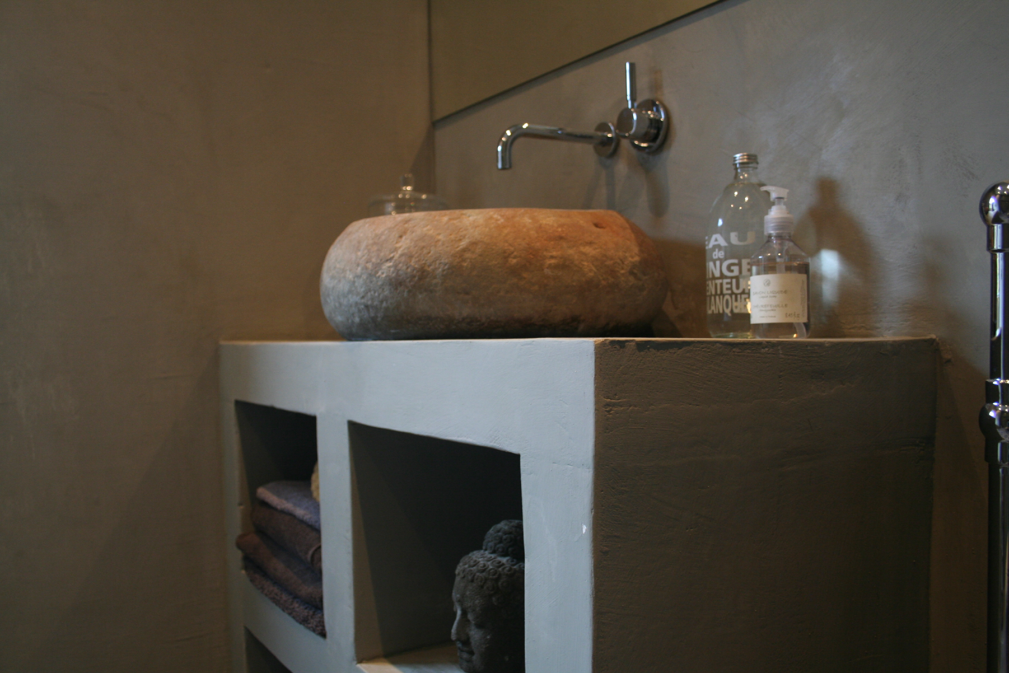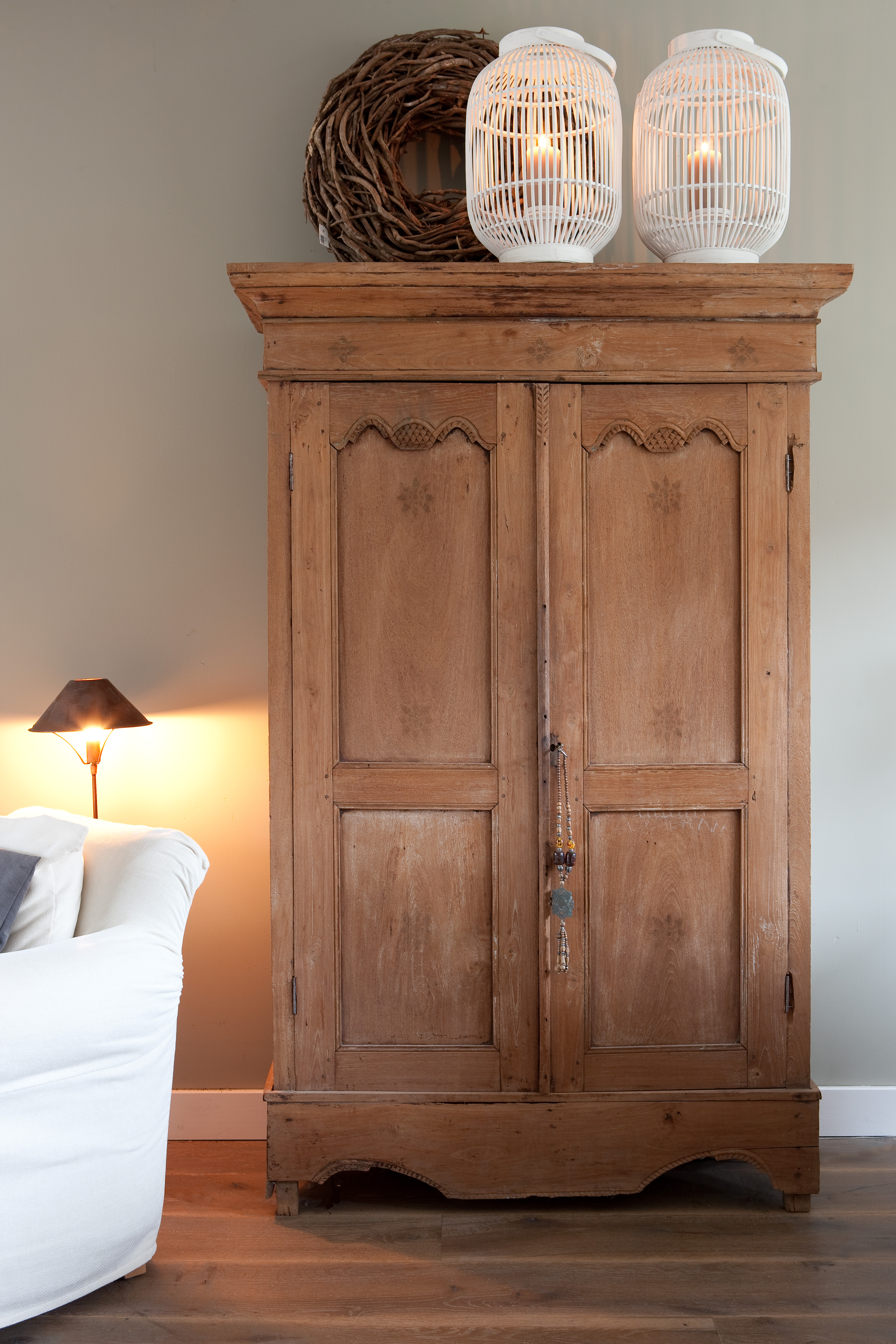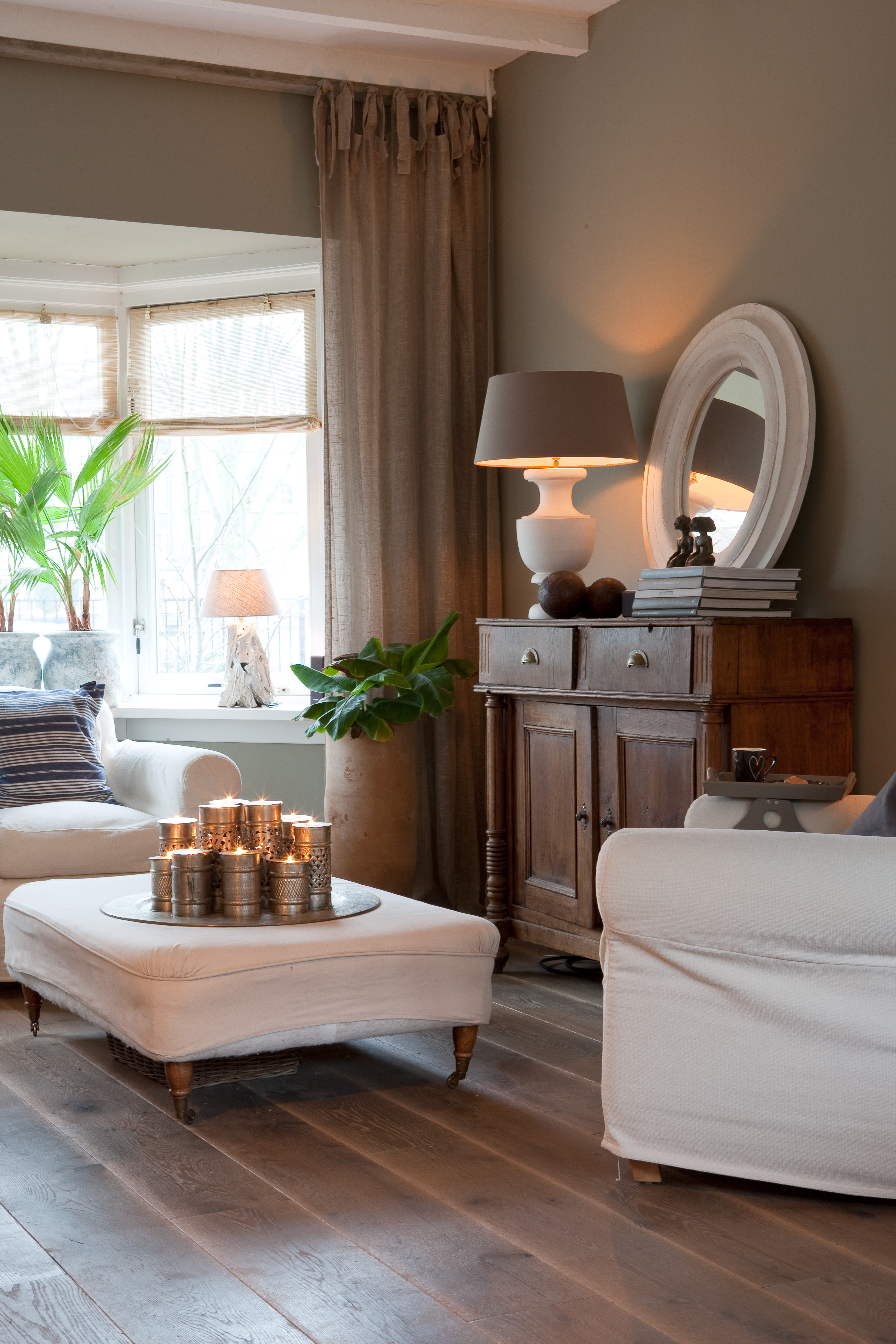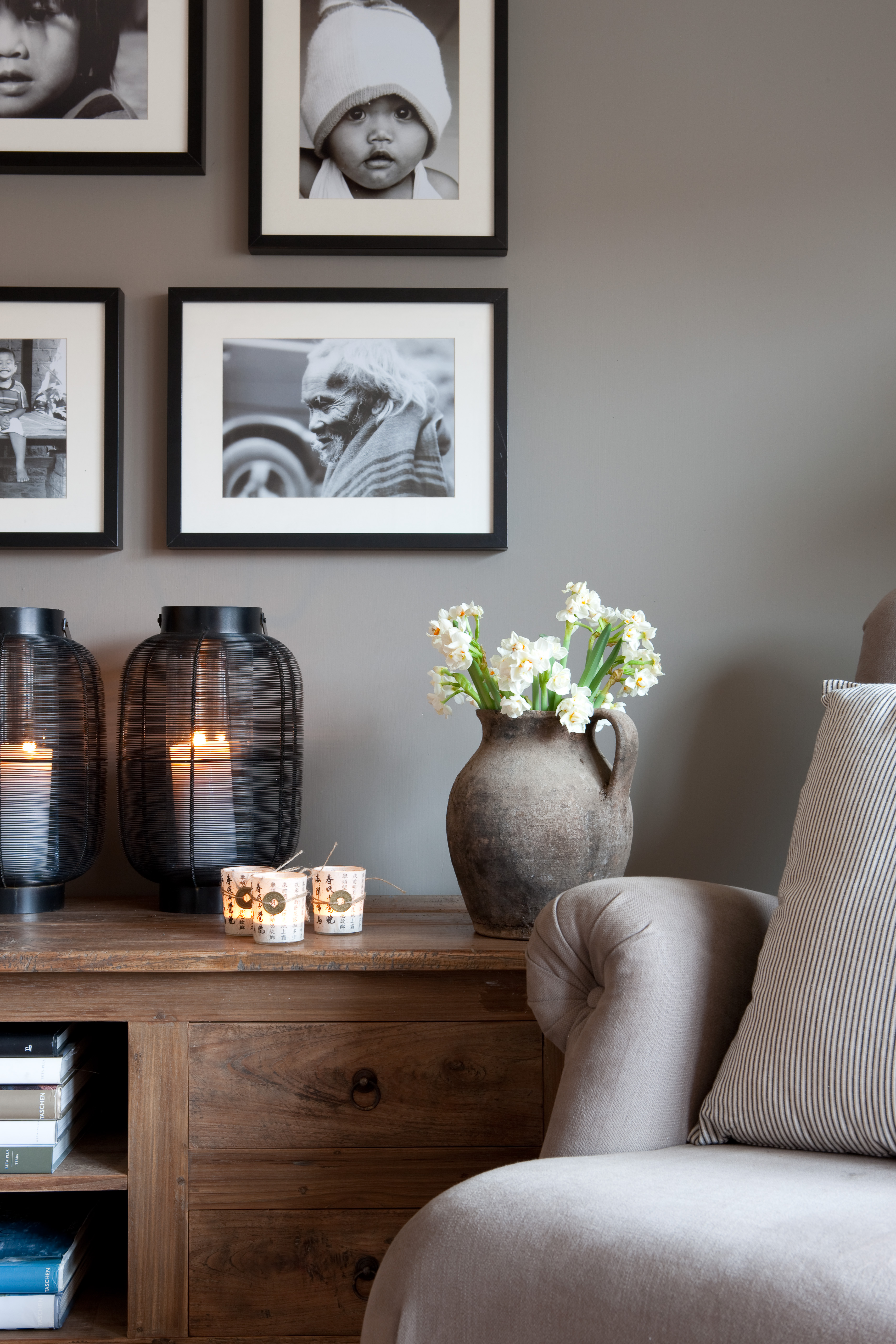 For å skape en gjennomført atmosfære i hele huset, var huseierne opptatt av at fargene skulle fungere som et lunt bakteppe. De mange spesielle gjenstandene måtte få den oppmerksomheten de fortjente, og skulle ikke behøve å kjempe mot de øvrige fargene i interiøret. Valget falt derfor på tidsriktig kalkmaling fra Pure & Original på veggene i alle rom. De aller fleste rom fikk den helmatte malingtypen Classico, som gir et helt dødmatt utseende. En annen malingtype fra samme produsent, Fresco, med sin spesielle betonglook, ble brukt som et spennende krydder forskjellige steder i huset.