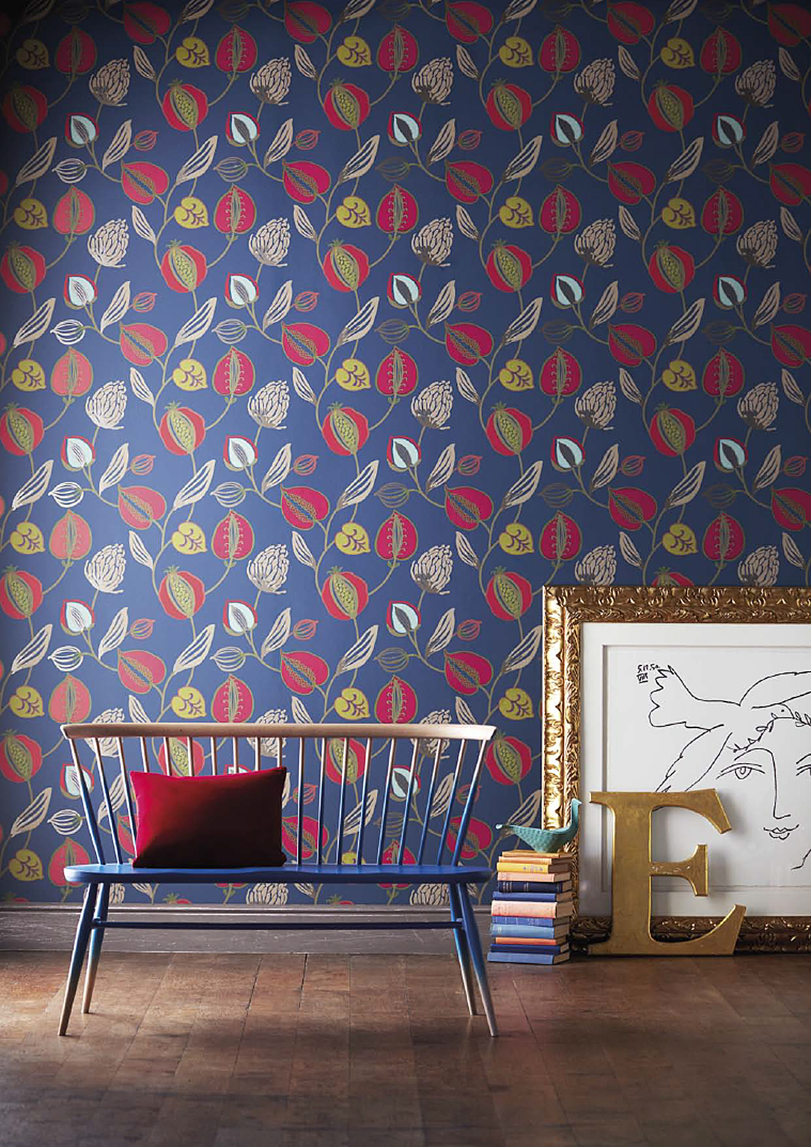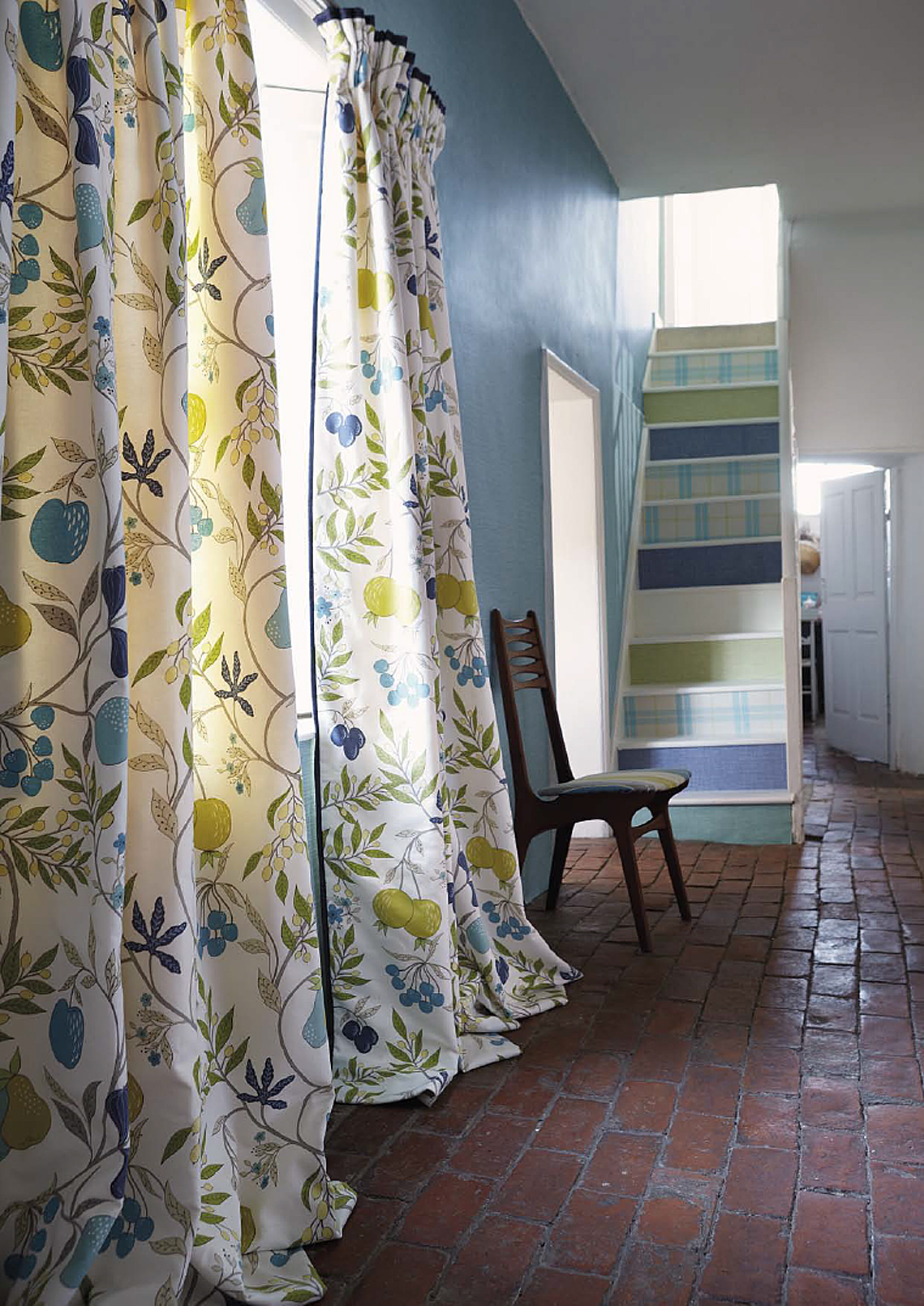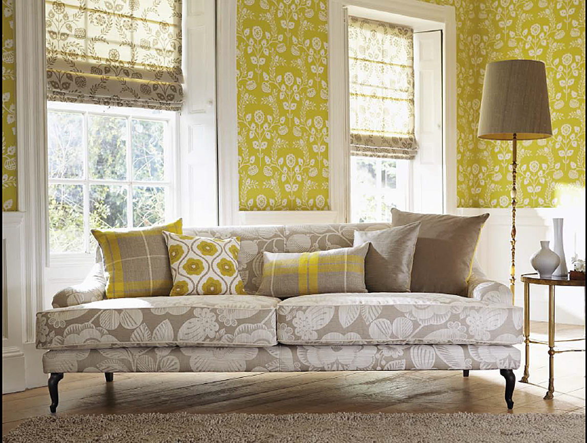 Tapetene i Folia Wallpapers-kolleksjonen kommer i åtte forskjellige design: lekne kruseduller, tweedruter, store frukter slik som plommer, fiken og oliven, blandet med klassiske damaskornamenter. Alt kan kombineres med ensfargede tapeter med linstoff-look i flere farger.