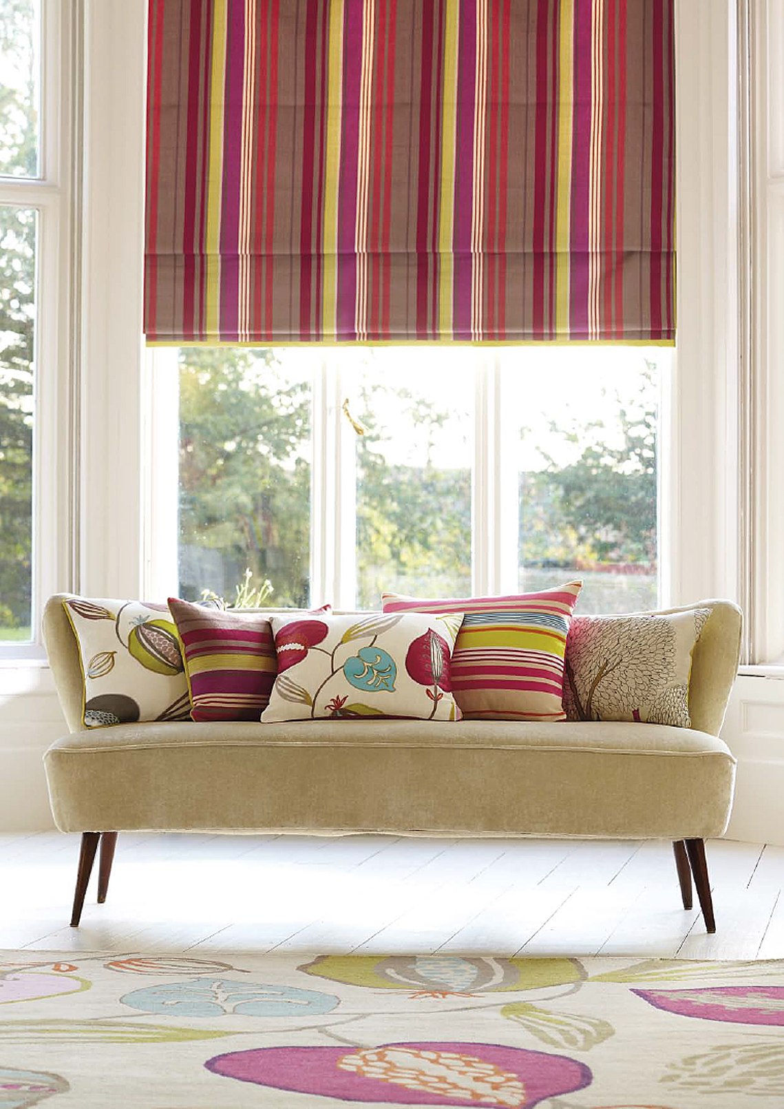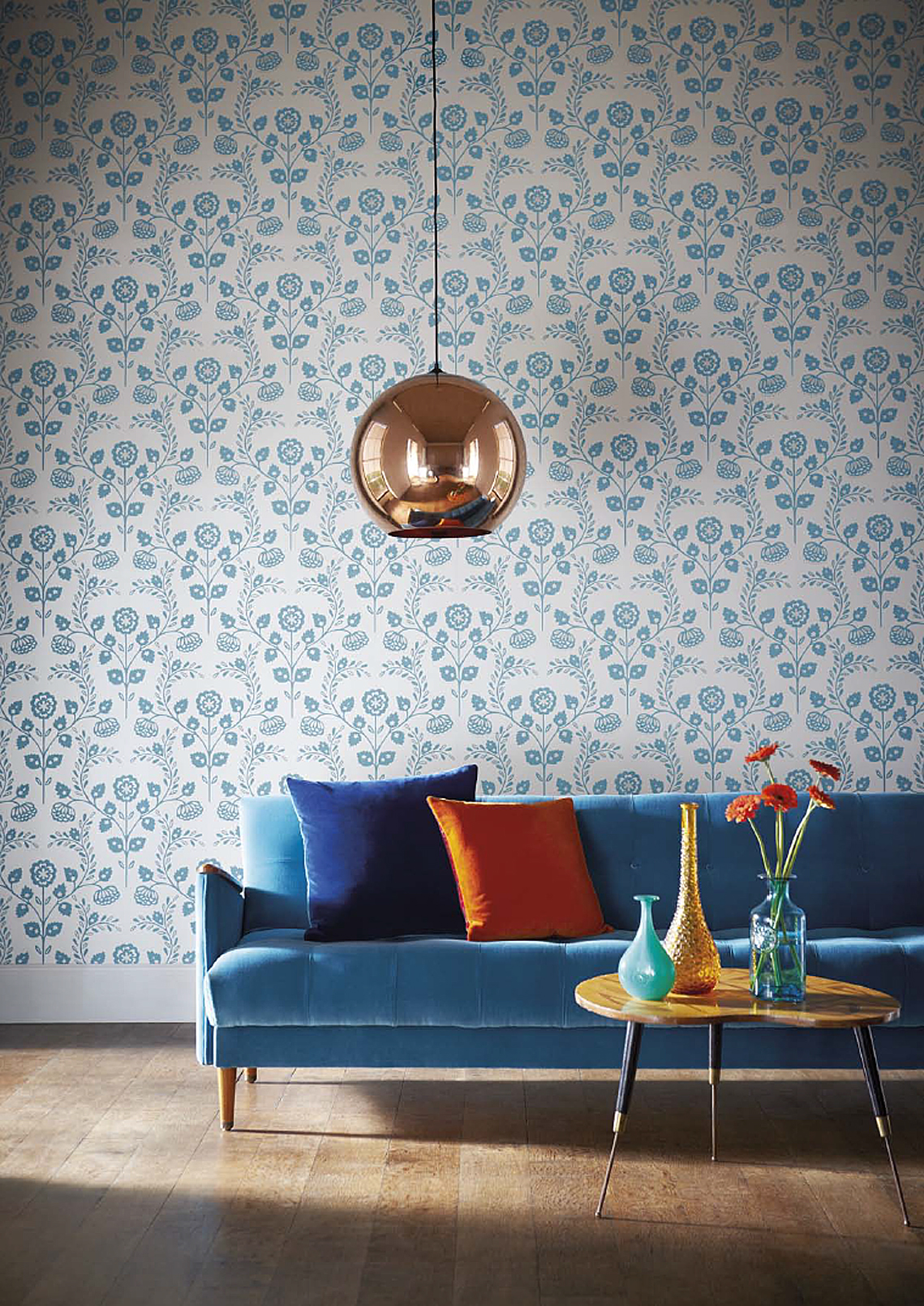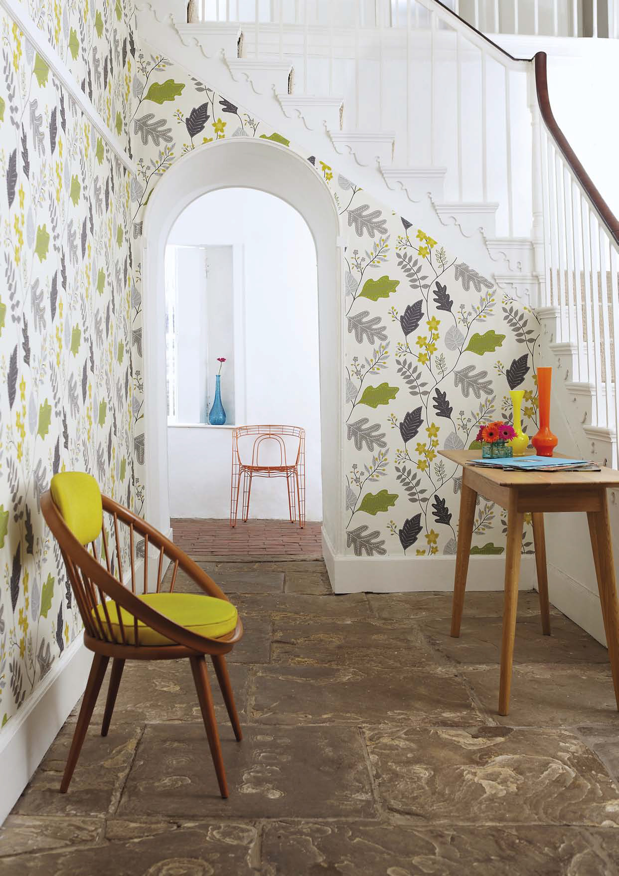Tapetene i Folia Wallpapers-kolleksjonen kommer i åtte forskjellige design: lekne kruseduller, tweedruter, store frukter slik som plommer, fiken og oliven, blandet med klassiske damaskornamenter. Alt kan kombineres med ensfargede tapeter med linstoff-look i flere farger.