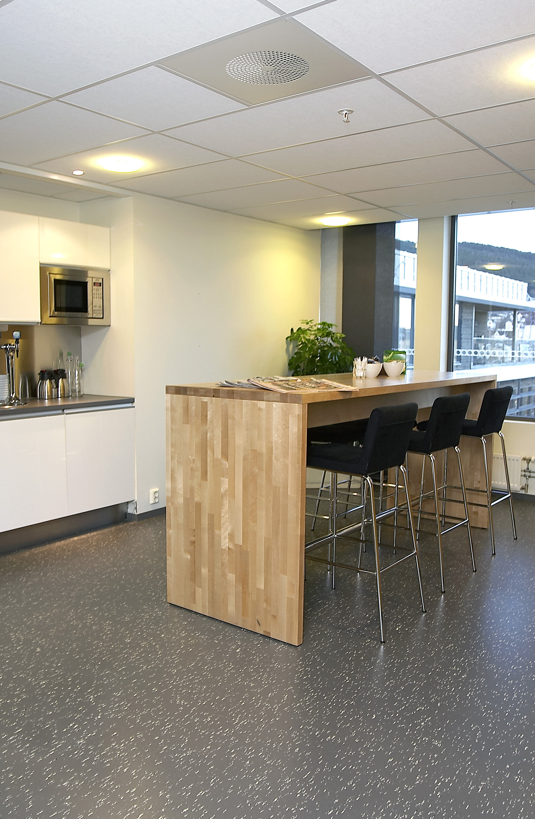 Malermesterfirmaet Lothe AS i Drammen har hatt alle de innvendige malerarbeidene. Forbo har levert 3000 kvm linoleum, Artoleum Graphic 5311, et belegg som står godt til krom og sølvgrå flater, tre og fargede elementer.