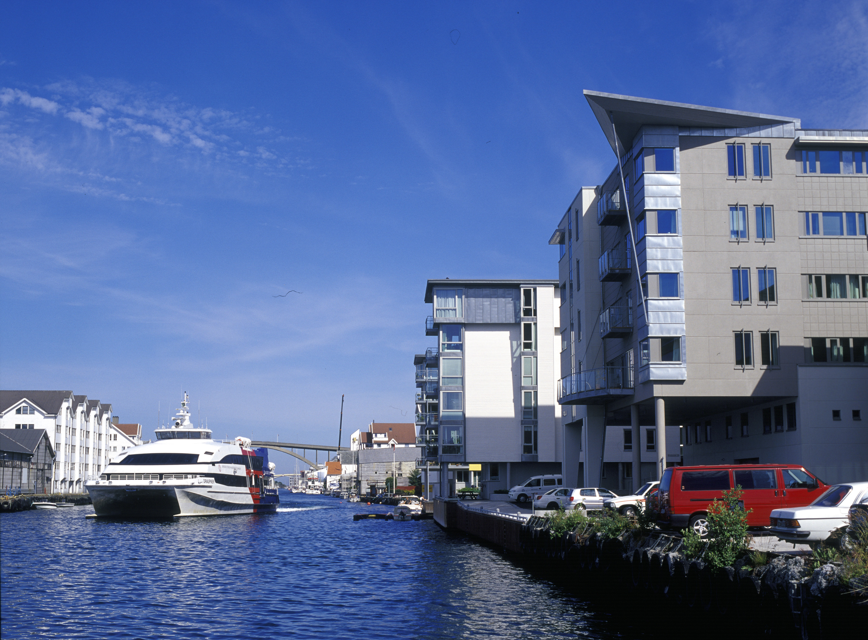 Åpent har det blitt - i nybygget med adresse Smedasundet 50 på den havnestripe Haugesund er blitt så kjent for. Bygge har en grunnflate på ca. 6.500 kvadratmeter og er på seks etasjer hvorav politiet disponerer fem. Veidekke AS har stått for totalentreprisen, mens arkitekt har vært Haugesund-kontoret Brekke Helgeland Brekke AS ved sivilarkitekt Stein Jarle Helgeland. Han har også satt preg på bygget ved å tegne dekorative gulv.