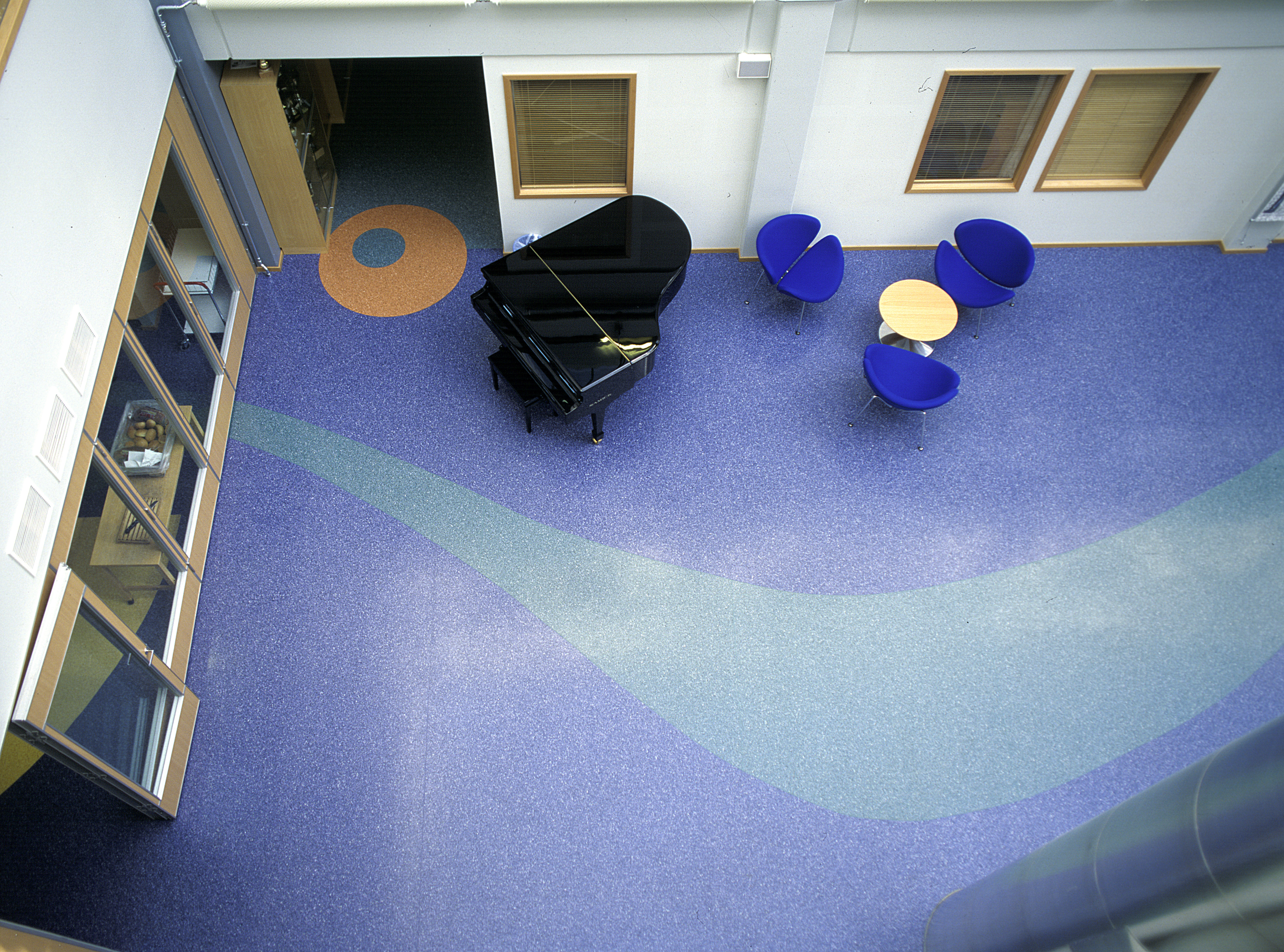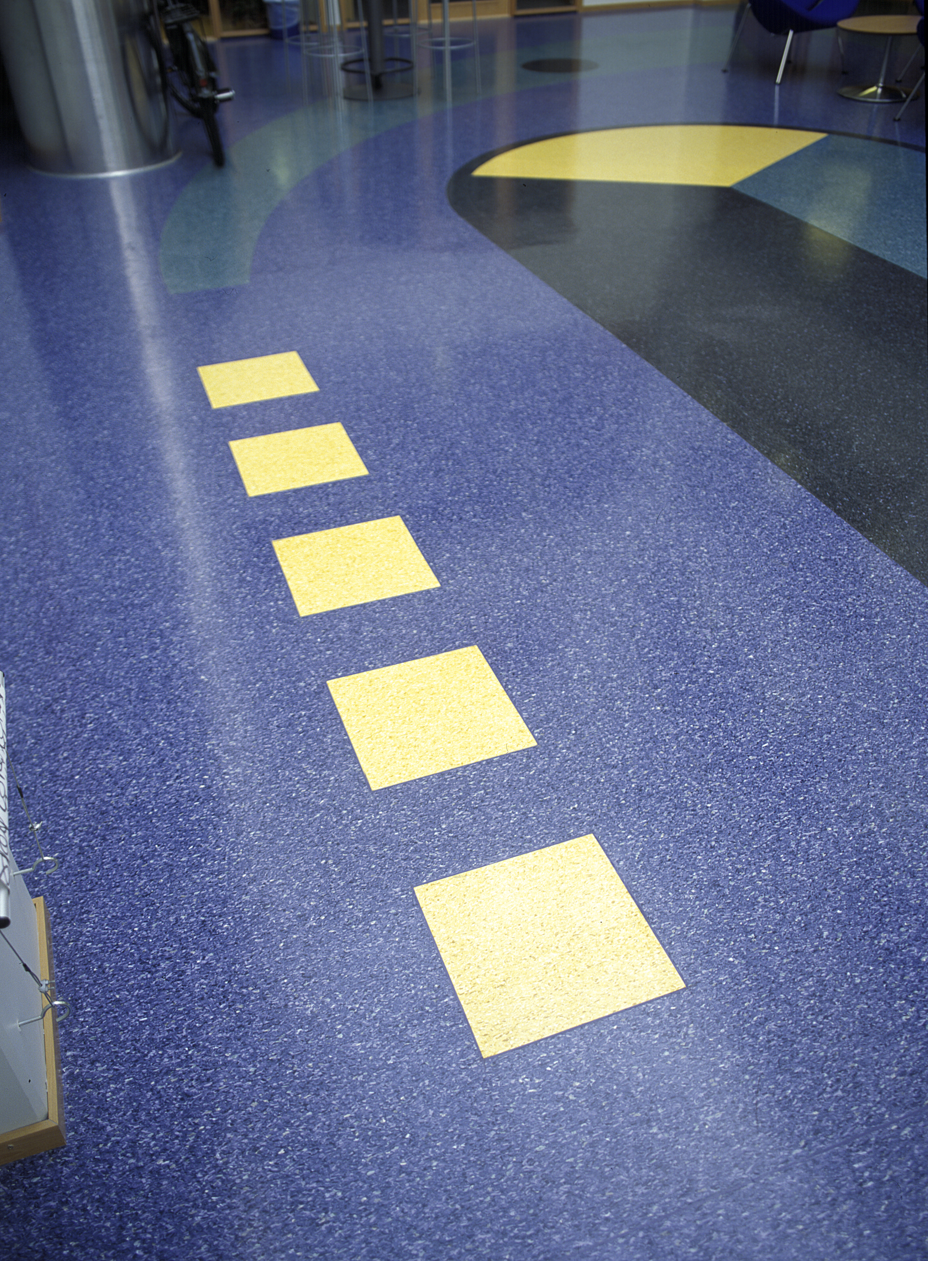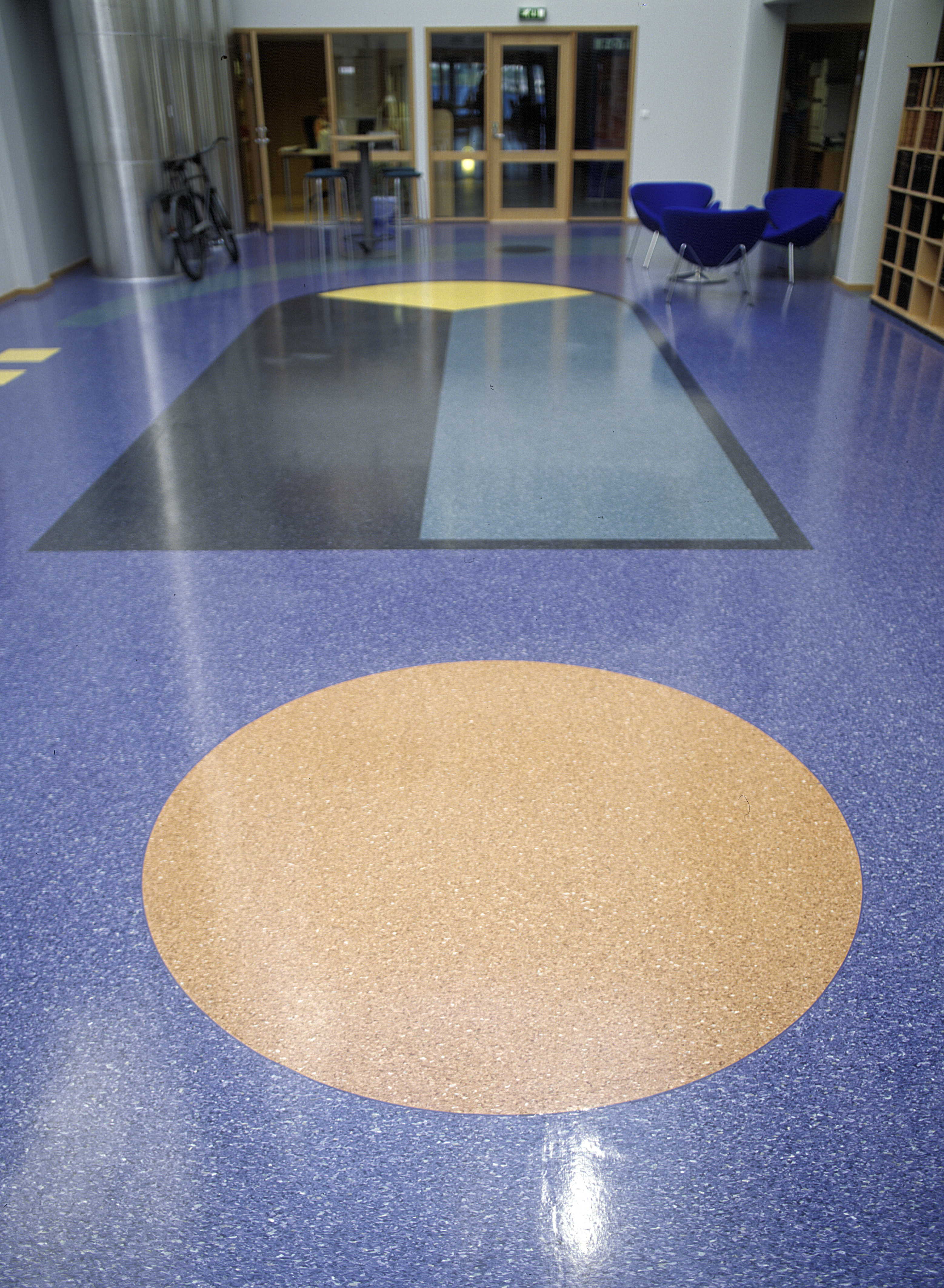 Arkitekt har også tenkt helhet i fargevalget. Det er benyttet tre hovedfarger i bygget - Eminent 047 (gul-brun), 055 (blå) og 058 (grønn). Den blå er valgt som hovedfarge i atriumets mønstergulv, mens den grønne blant annet er benyttet som et 25 meter langt bølgemotiv. I tillegg er det benyttet fire mønsterfarger - sort, gul, terrakotta og mørk blå. Hele kolleksjonen egner seg for øvrig godt til mønsterlegging fordi den består av så klare farger.