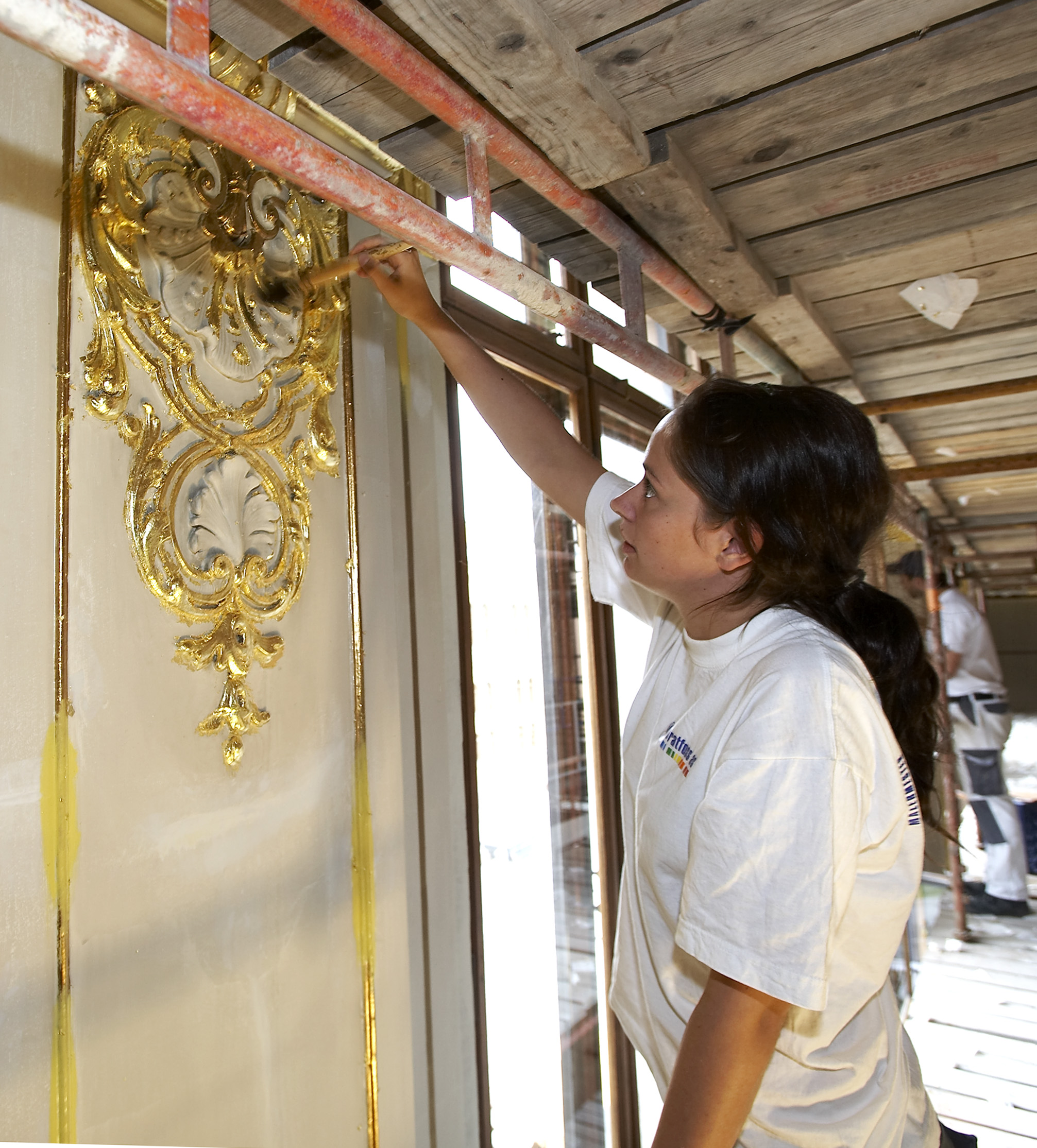 en fin pensel. Gull er dyrt og det er lagt på 65.000 blader/ark i festsalen, en