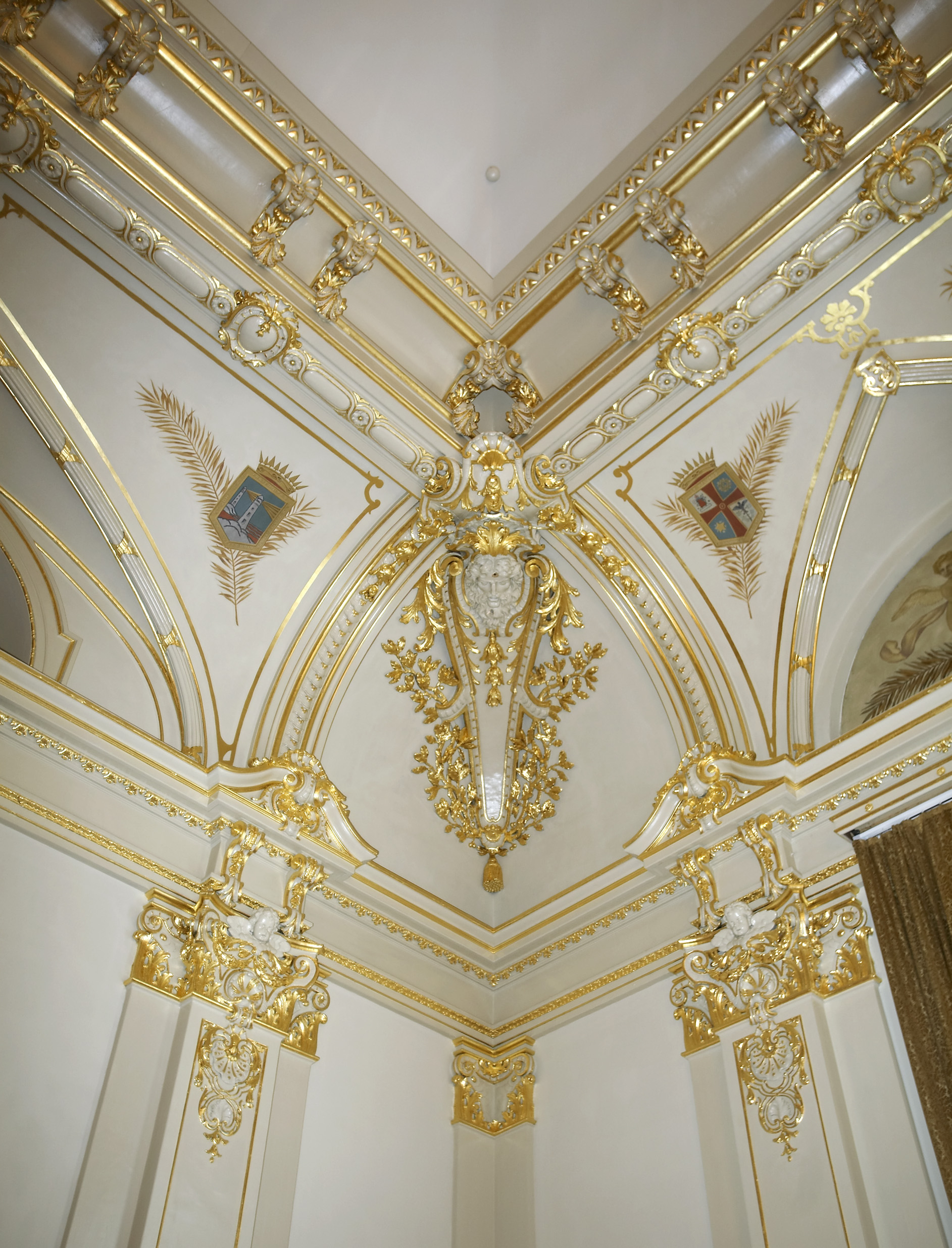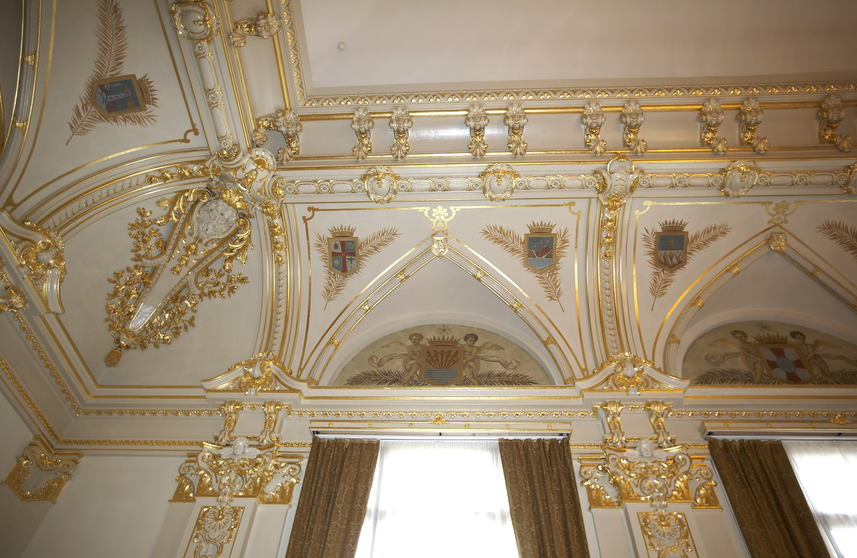 vegger og tak dominerer dekoren som viser alle våpenskjoldene til