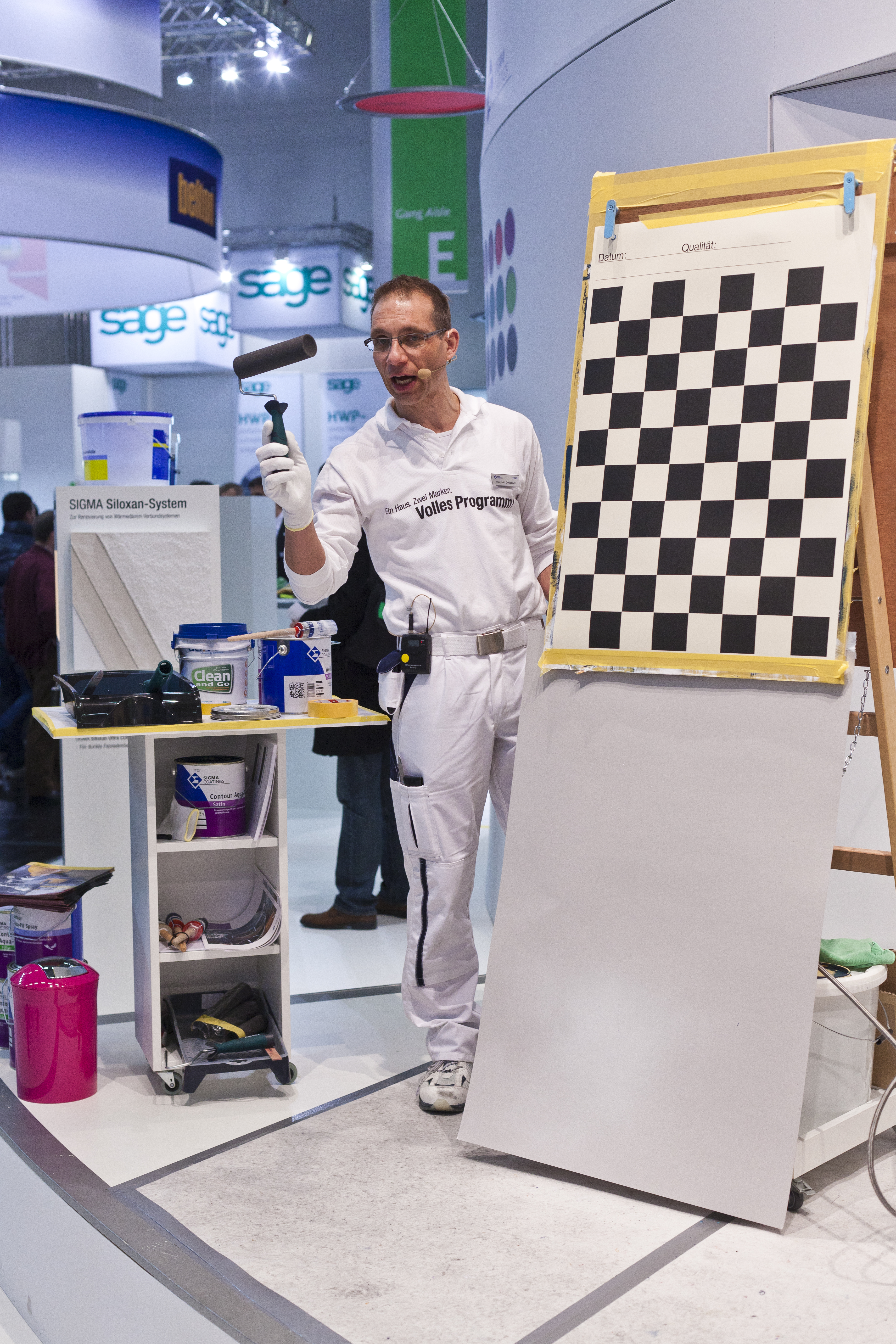 50.000 kvadratmeter store utstillingslokalene. Også enkelte norske besøkende kunne observeres, men tilreisende malermestere og representanter fra norske produsenter druknet fullstendig i folkehavet.