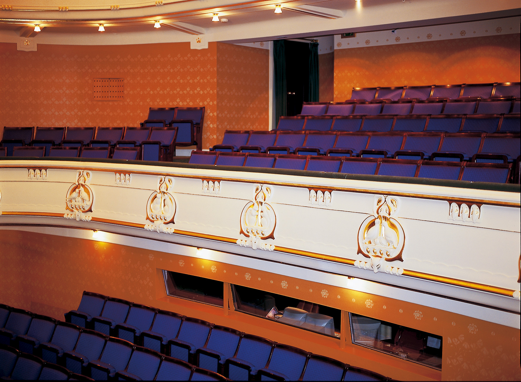 Det flotte partiet runde selve hovedscenen har fått et blått innslag. Noen ville at partiet skulle males i den originale lyse fargen, men ved moderne scener idag ønsker man nå en sort farge på grunn av lystekniske årsaker. En mørkere farge måtte altså til og man havnet på en blågrå.