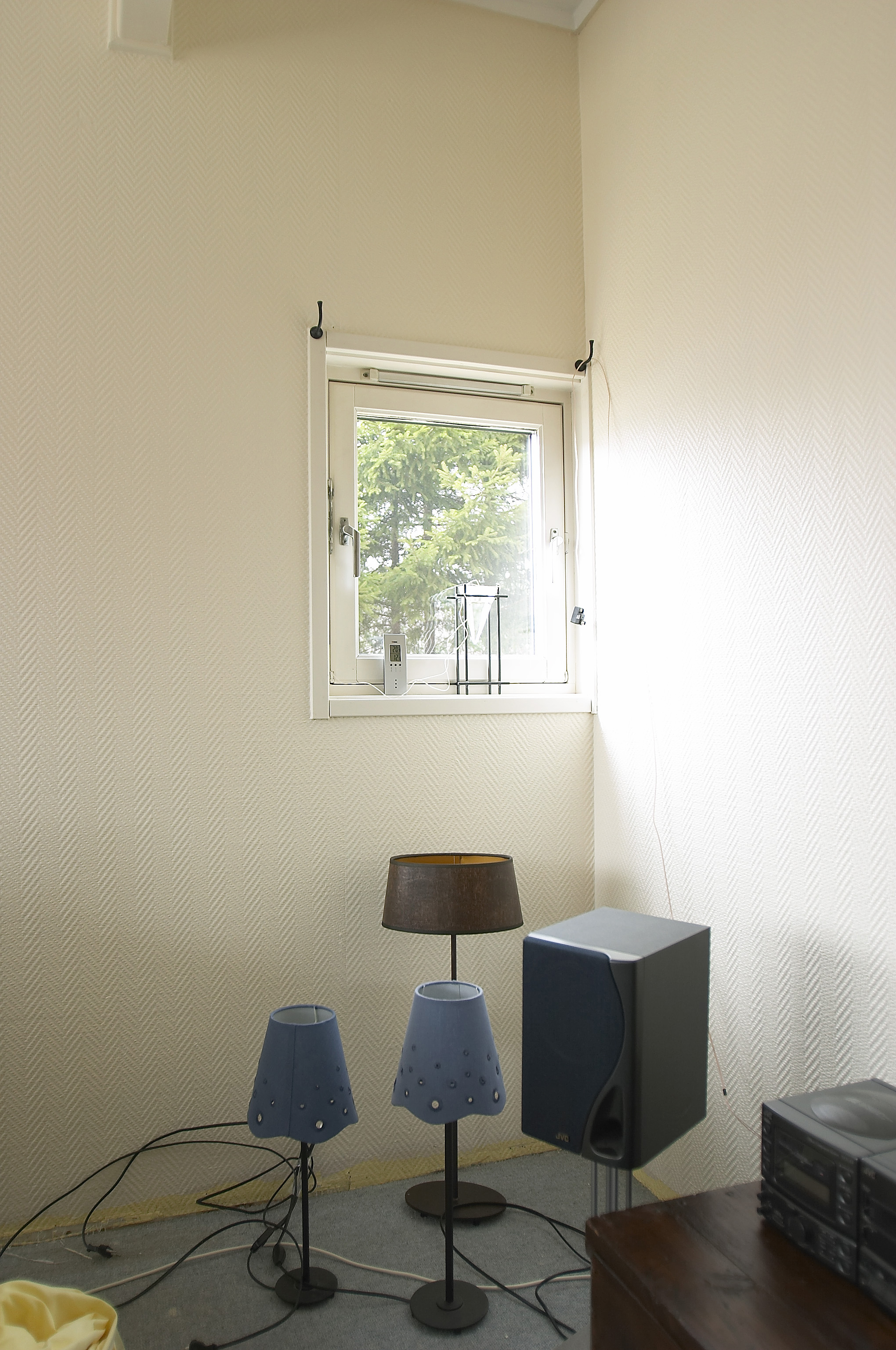 Her er det lille vinduet trykket helt opp i veggen og det ser malplassert ut. Plasseringen gjør at det er umulig å få til et pent gardinoppheng.