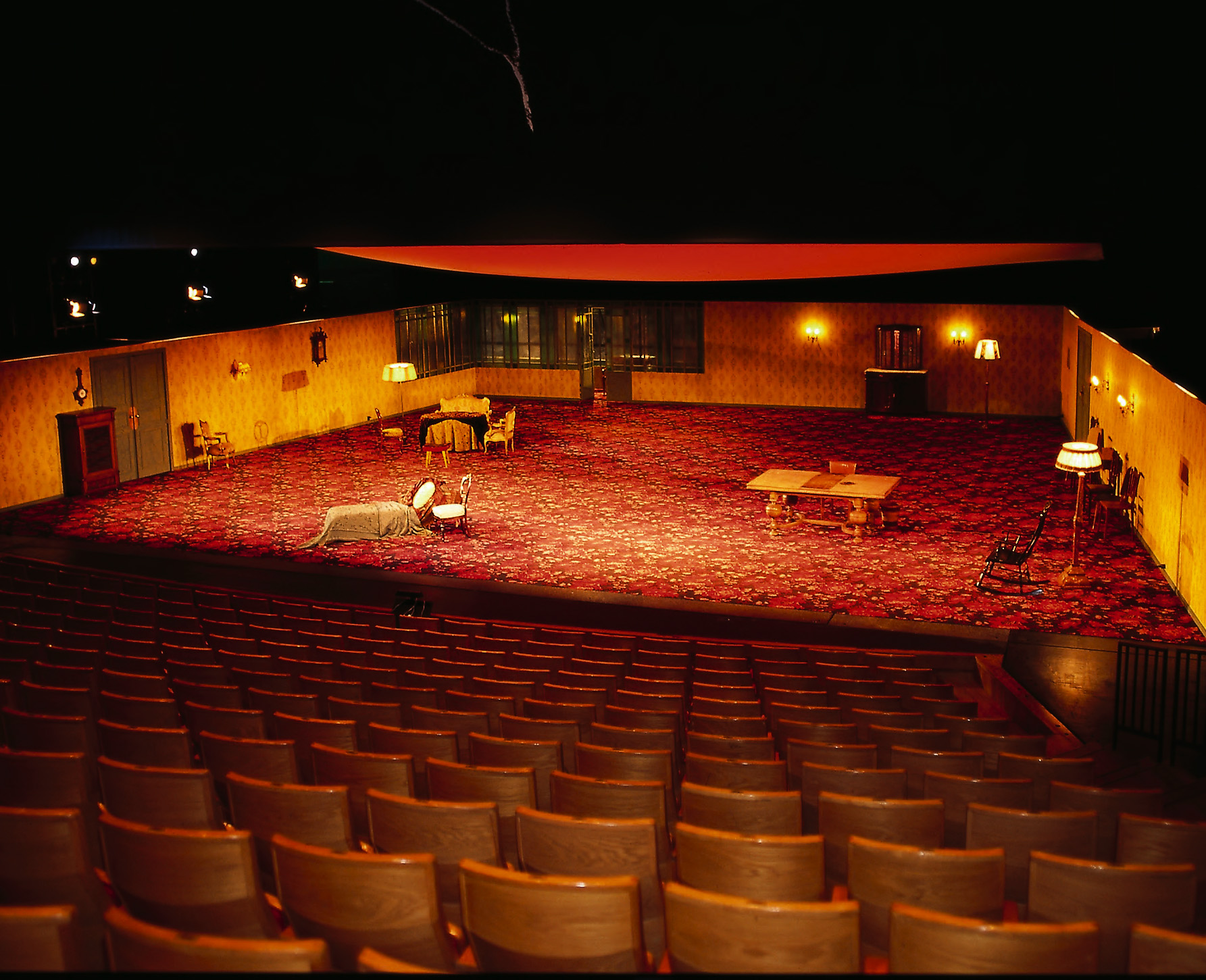 I samarbeid med Eges designavdeling i Herning i Danmark ble det nå i tett samarbeid med scenograf produsert et stormønstret teppe i gammel barokkstil som skulle passe til stemningen i Tsjekovs drama. Det ble valgt en Ege-kvalitet i Highline 630 på grunn av den kompakte velourkonstruksjon med en lav totalvekt.