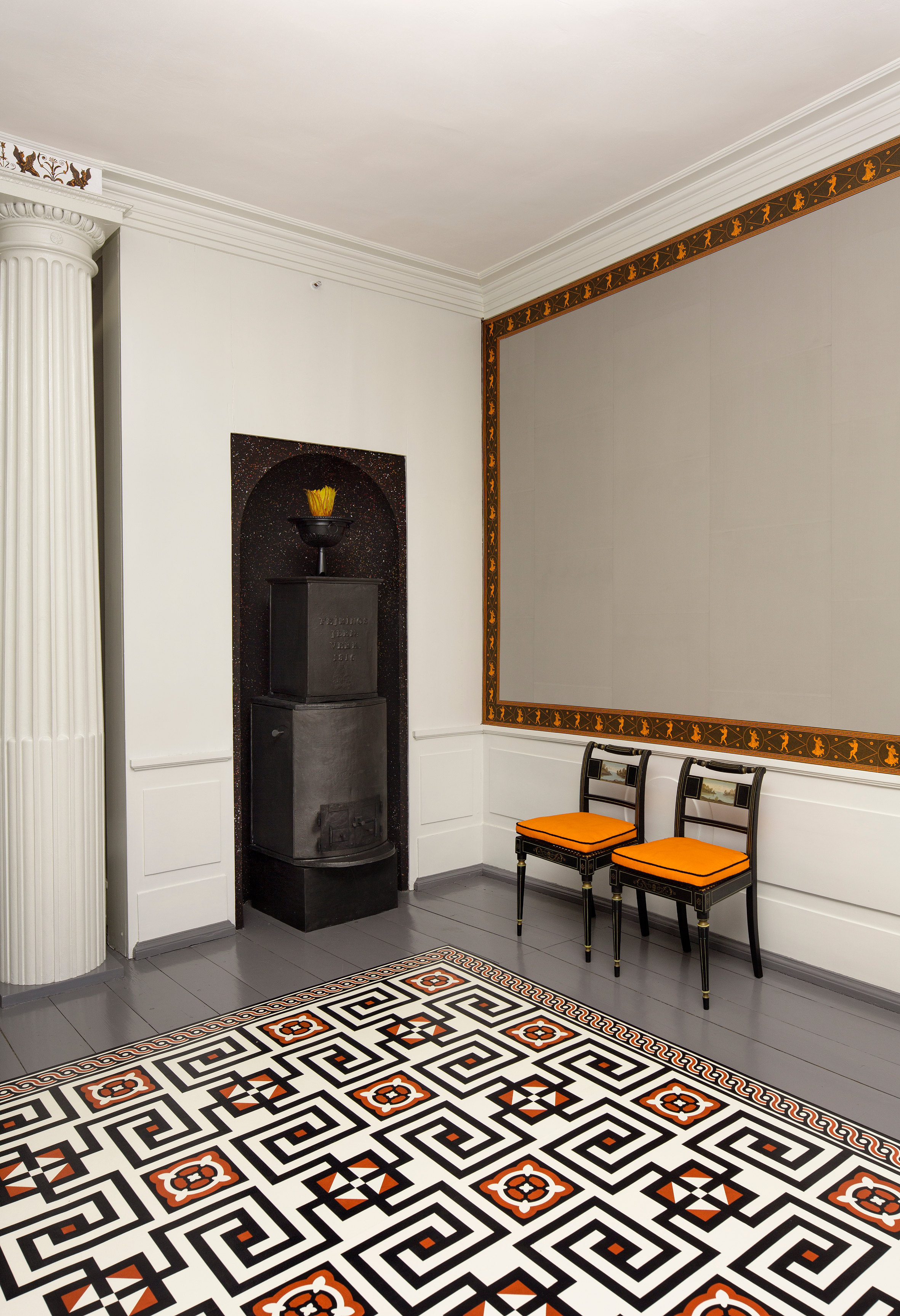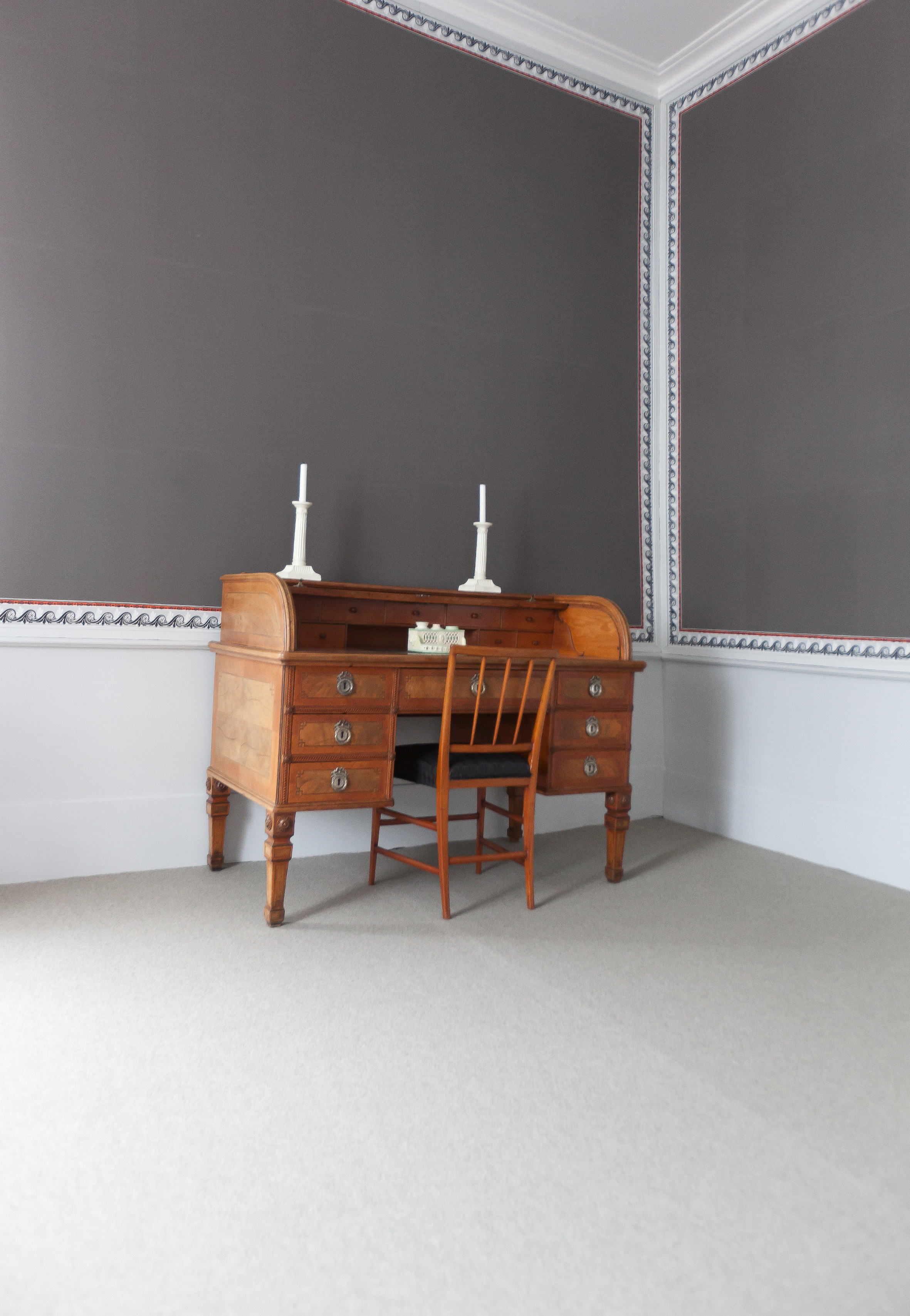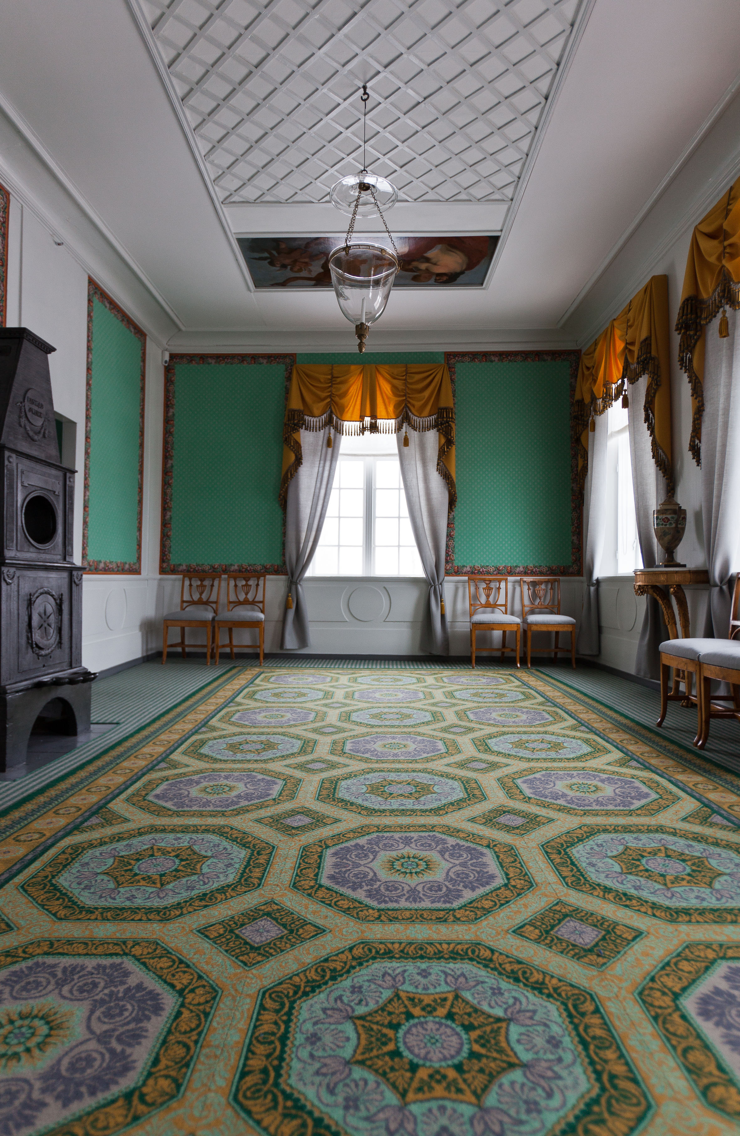 – Vi fant noen små biter av tidligere tapeter i Riksarkivet forteller konservator Risåsen, disse var heldigvis tatt vare på i forbindelse med tidligere oppussing. Men at de fantes var gått i glemmeboken for alle, men vi kunne altså sette i gang med å produsere kopier som er blitt utrolig nær originalen, både når det gjelder mønstre og farger. Den gamle blokktrykkemetoden er det ikke mange som utfører i dag, men vi fant en produsent i Tyskland. Noe av arbeidet ble også utført i Sverige.. I tillegg ble det under oppussingen vevd tekstiler, gardiner, møbeltrekk og gulvtepper, i tidsriktige materialer, som passet til værelsene. Møbleringen har vært en større utfordring, ettersom de originale møblene var spredt for alle vinder. Det er dog benyttet ekte møbler fra tiden rundt 1814, så det er svært sannsynlig at dette er som på Carsten Ankers tid. Et klart mål under restaureringen, var at bygningen, både interiør- og eksteriørmessig, skulle framstå som den hadde gjort under da Norges konstitusjon ble undertegnet her. I noen tilfeller har man imidlertid sett seg nødt til å kompromisse litt på dette kravet og heller valgt å prioritere at det hele skulle fremstå som tidsriktig.