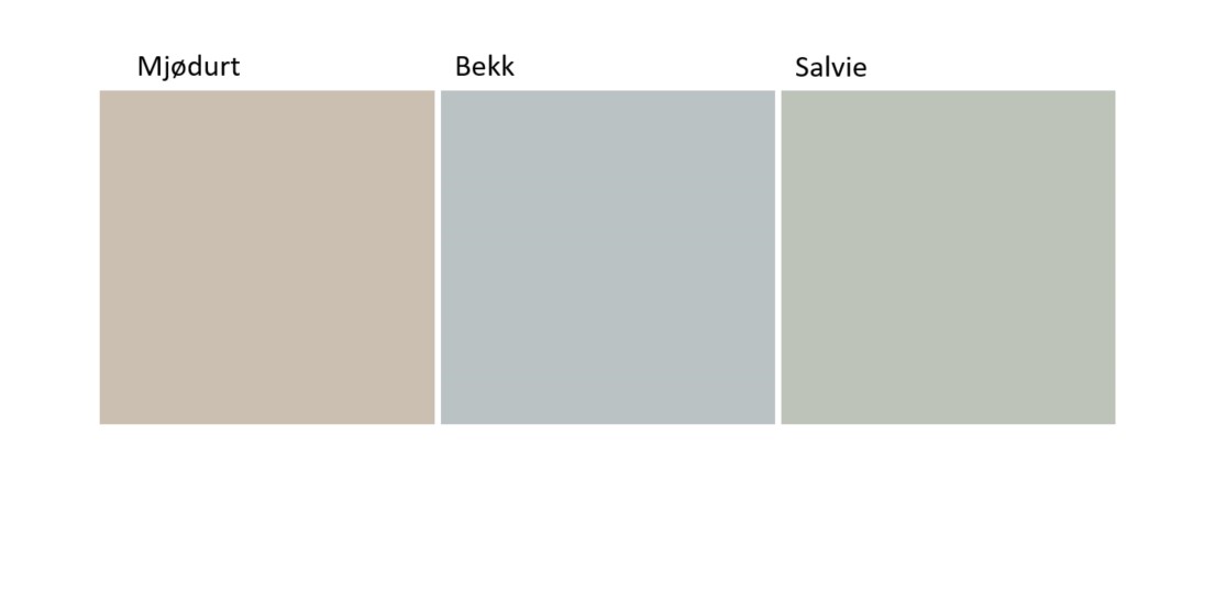 Hun anbefaler fargene Mjødurt og Bekk som godt følge til Salvie. Fargene er like sortaktige og har samme kulørstyrke (1005 i NCS systemet).