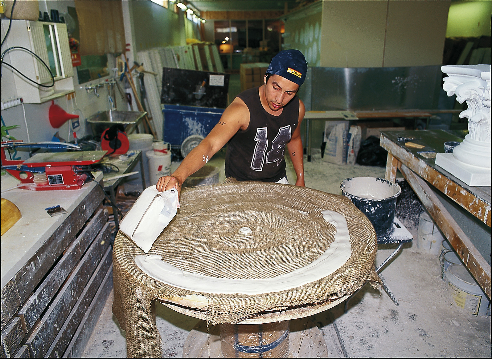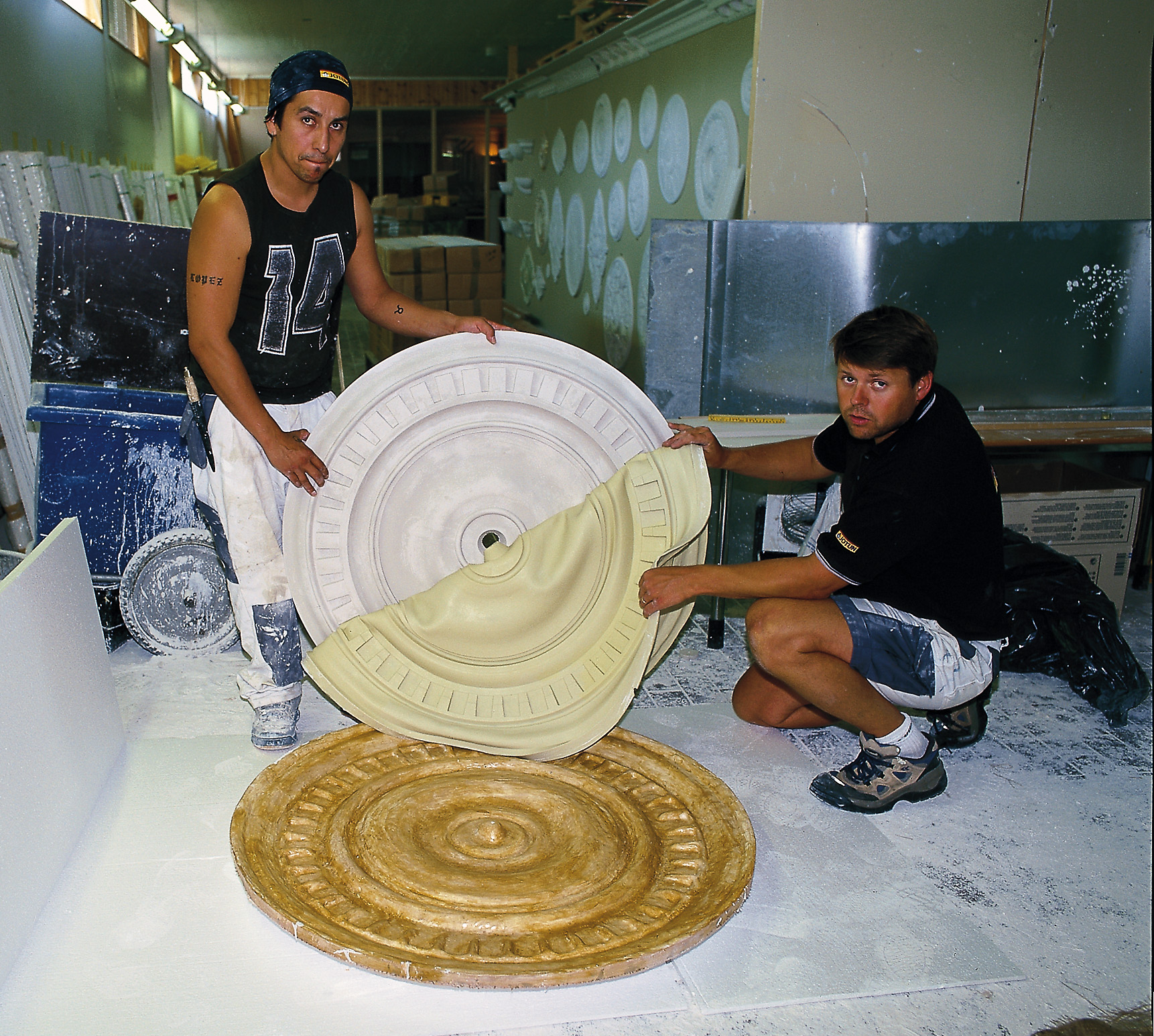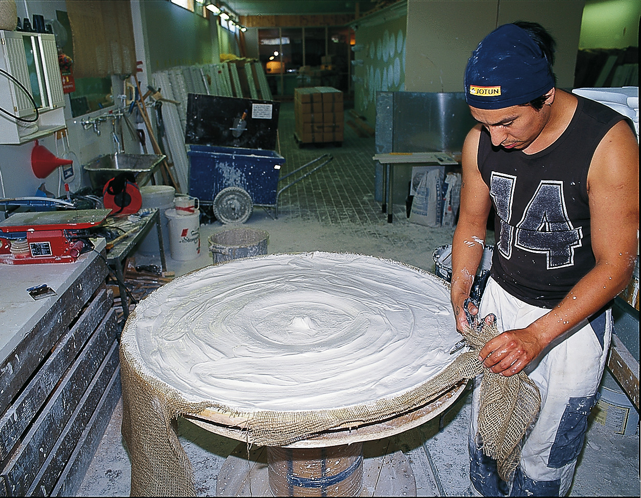 En rosett blir til Gjør det selv IFI.NOOppdatert 21.11.2024 (Publisert 06.12.2002) Billedserien viser hvordan Pablo Lopez lager en rosett. Innhold Følg Dele Innhold Følj Følg ifi.no på Facebook, TikTok og Instagram.Registrer deg her og motta vårt nyhetsbrev, med nye artikler og nyttige tips 2-3 ganger i måneden. Motta nyhetsbrev Dele Send til epost Cancel Send En gipsblanding består kun av vann og gips (finmalt kalkstein) i den helt riktige blanding. Formen er her av gummi lagt i en gipskappe (også en form).Det første tynne laget av gips skvettes på, en gipsblanding som foreløpig er helt bløt. Han bruker en pensel for å komme til ved alle detaljer.En jutestrie er lagt på, som er rosettens armering.Gipsen er bygget på. Den skifter konsistens hele tiden; timingen er viktig i oppbyggingen - opptørkingen av gipsen skjer raskt. Strien blir klippet til og rosetten ferdiggjøres.Rosetten kan tas ut av gummiformen. Ved full opptørking blir gipsen kritthvit. Vi ser gipsmaker Pablo Lopez og Tore Meyer-Mørch. Relaterte emner Gjør det selv Vi anbefaler Slik pusser du opp spisebordet Hvordan male fliser? Rett skille mellom tak og vegg Beskytte treverket: Terrassebeis, olje eller annen behandling? Mer fra Gjør det selv Dekorelementer i gips Maling av stukkatur og rosetter Montér gips Siste artikler Sjokolade, urter og smørtoner på kjøkkenet Mal panelet etter forholdene, ikke kalenderen Varme farger og myke former: Trendene fra Paris 2026 Bli kvitt knirk i gulvet