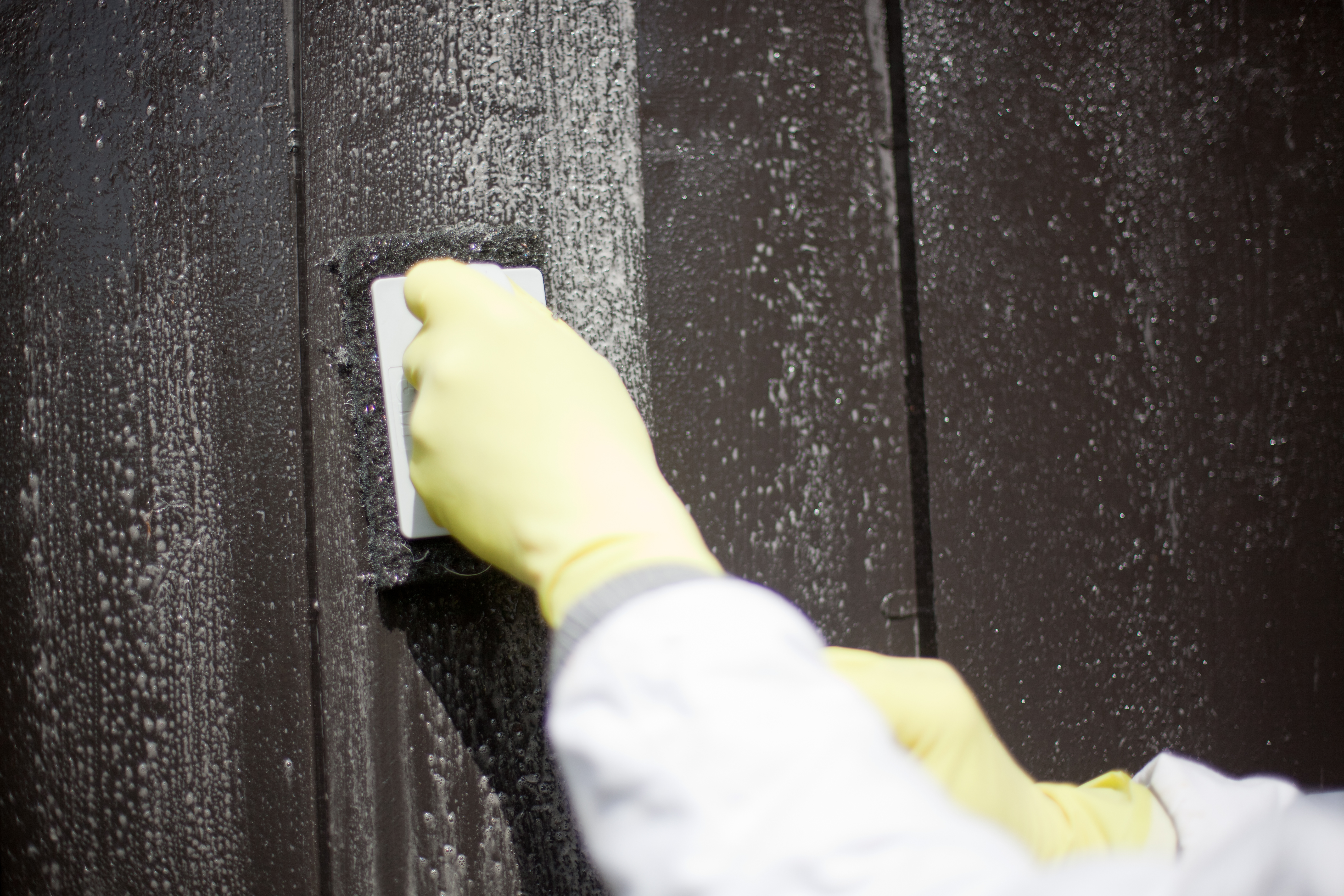 Et supert hjelpemiddel er en skurepad med praktisk håndtak. Dypp paden i vaskevannet og skrubb i vei, så løsner det gufne lett. Skurepad finnes i tre hardheter for ulike flater. Tommelfingerregelen er at jo mørkere farge paden har, jo grovere er den. Håndtaket sikrer et godt grep som letter rengjøringen av dusj og badekar.