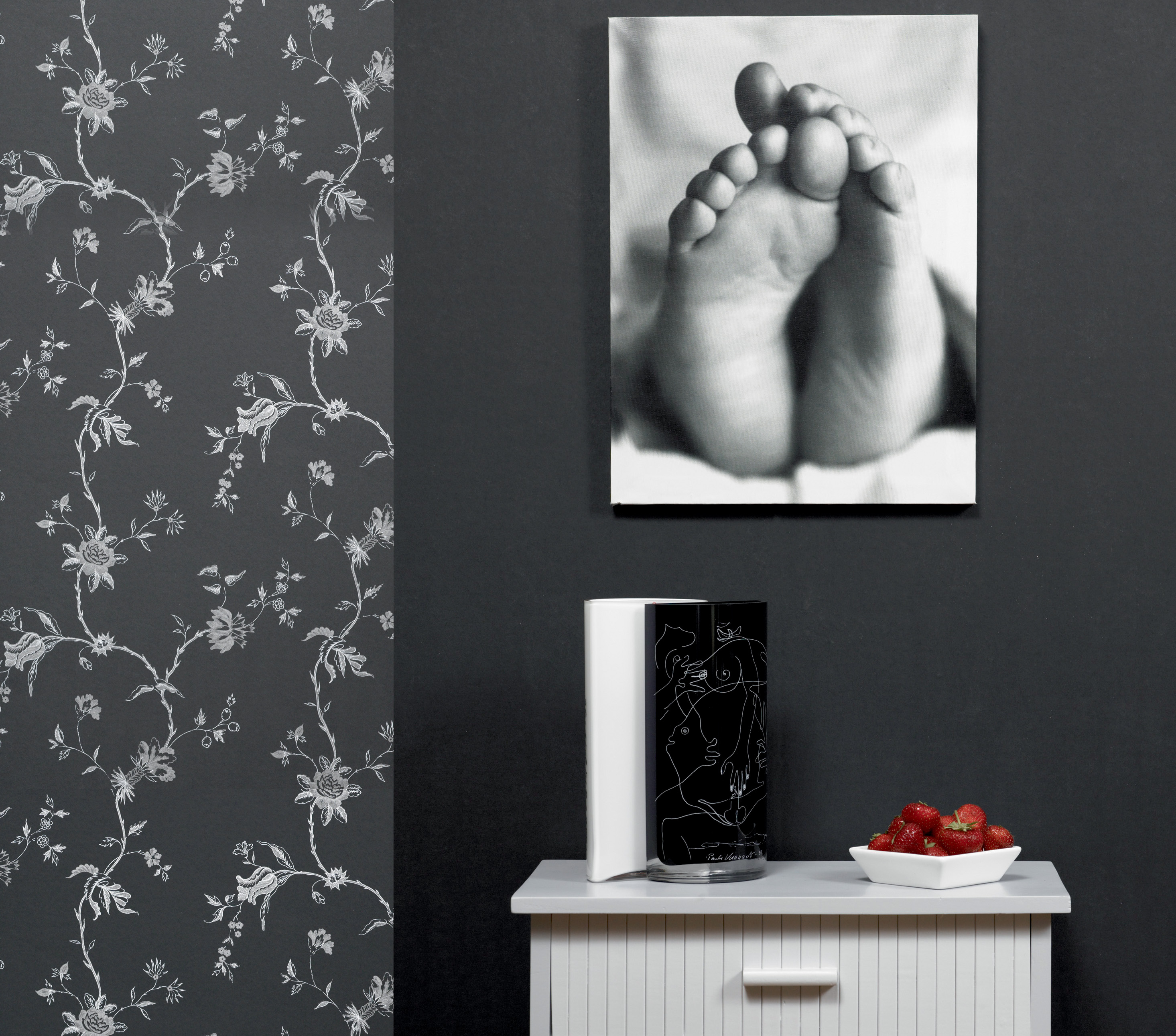 Tapetets ensfargede side matcher en av fargene i mønsteret på andre siden av tapetet. Denne tosidige tapetvarianten gjør det lettere for kjøper og selger å finne frem til rette fargekombinasjon om en skulle velge en fondvegg, eller endre utseende i tilstøtende rom. Skulle kunden være usikker på hva som virkelig passer, ensfarget, mønstret, helt eller delvis mønster - ja, da kan beslutningen tas i ro og mak, vel hjemme. Forutsatt at en har bestemt seg for fargen vel å merke.