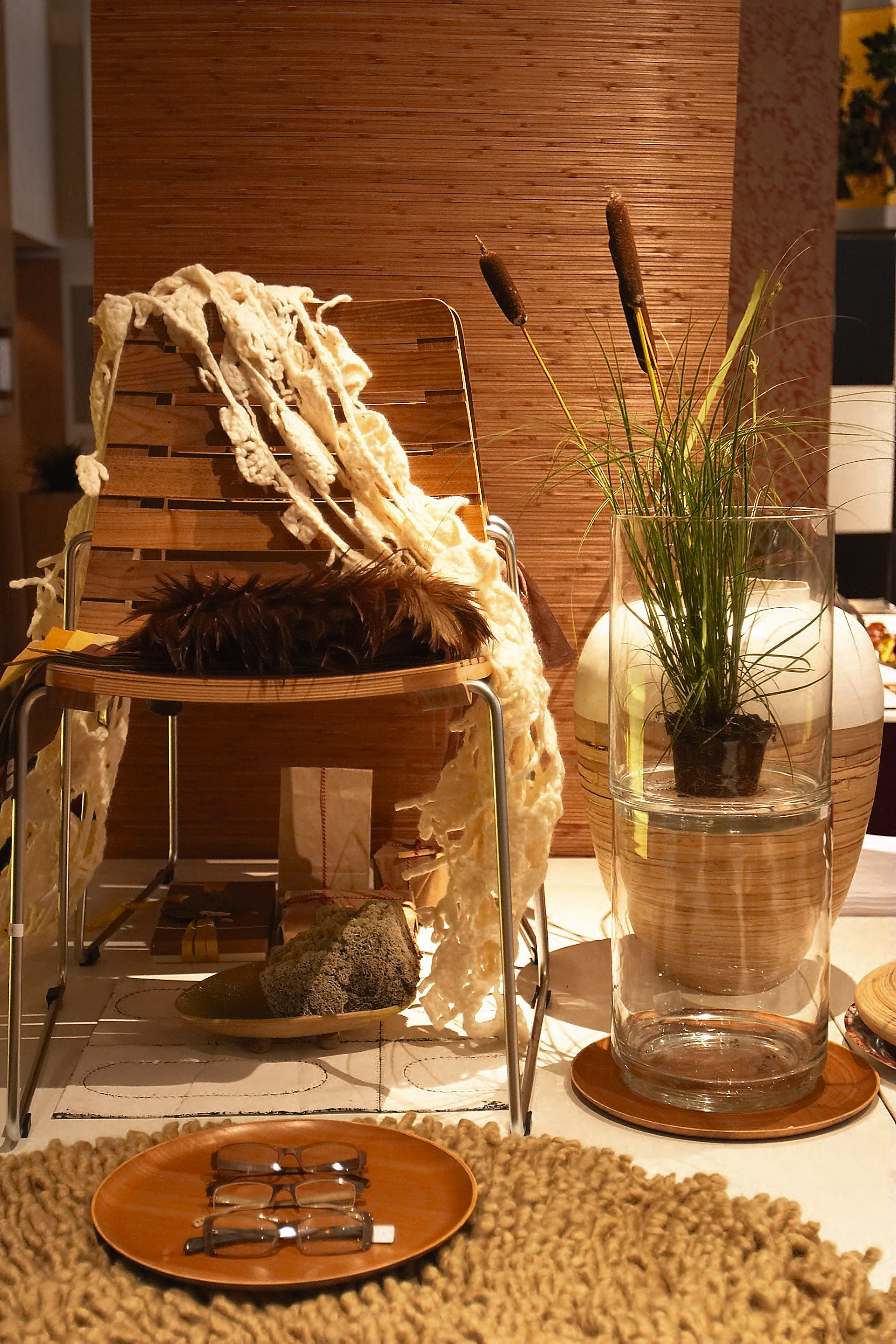 Høstens farger, kaffe, te, sjokolade, honning, naturlige materialer, rustikt og autentisk er hovedingrediensene i "Wrap me up". Vi trekker naturen inn i heimen. Møblene er i grovt tilhogde materialer, eller vi forsøker å forlenge sommeren ved å trekke utendørs aktiviteter inn. Vi vil dessuten se en rekke kombinasjoner av minimalistiske former i et etnisk uttrykk.