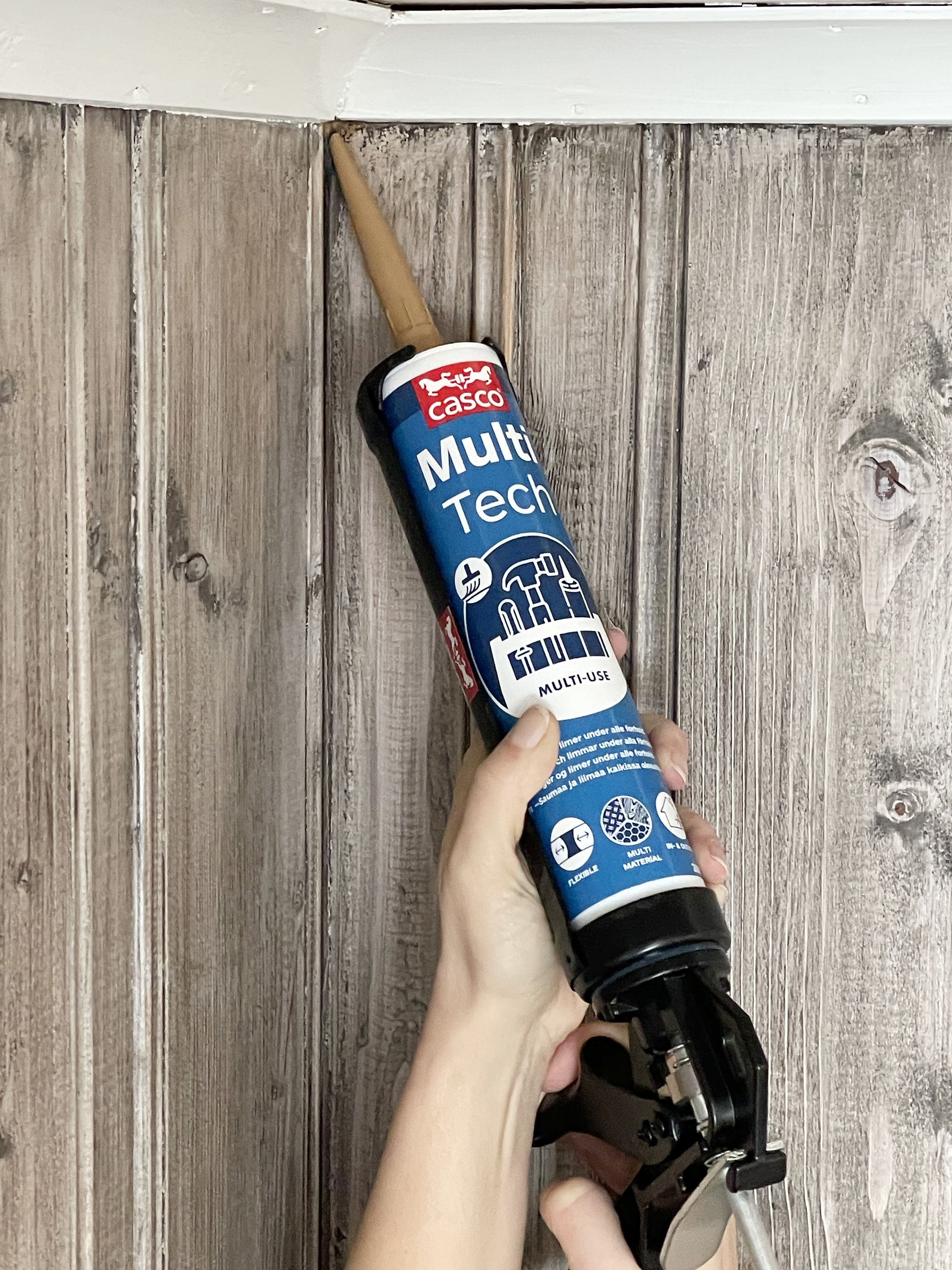 Innendørs kan du bruke patronen til å sette opp lister, tette fuger ved tak, vegger og rundt vinduer og dører. Du kan tette sprekker, lage bevegelsesfuger i gulvet, henge opp knagger og hyller på flisene på badet eller kjøkkenet.