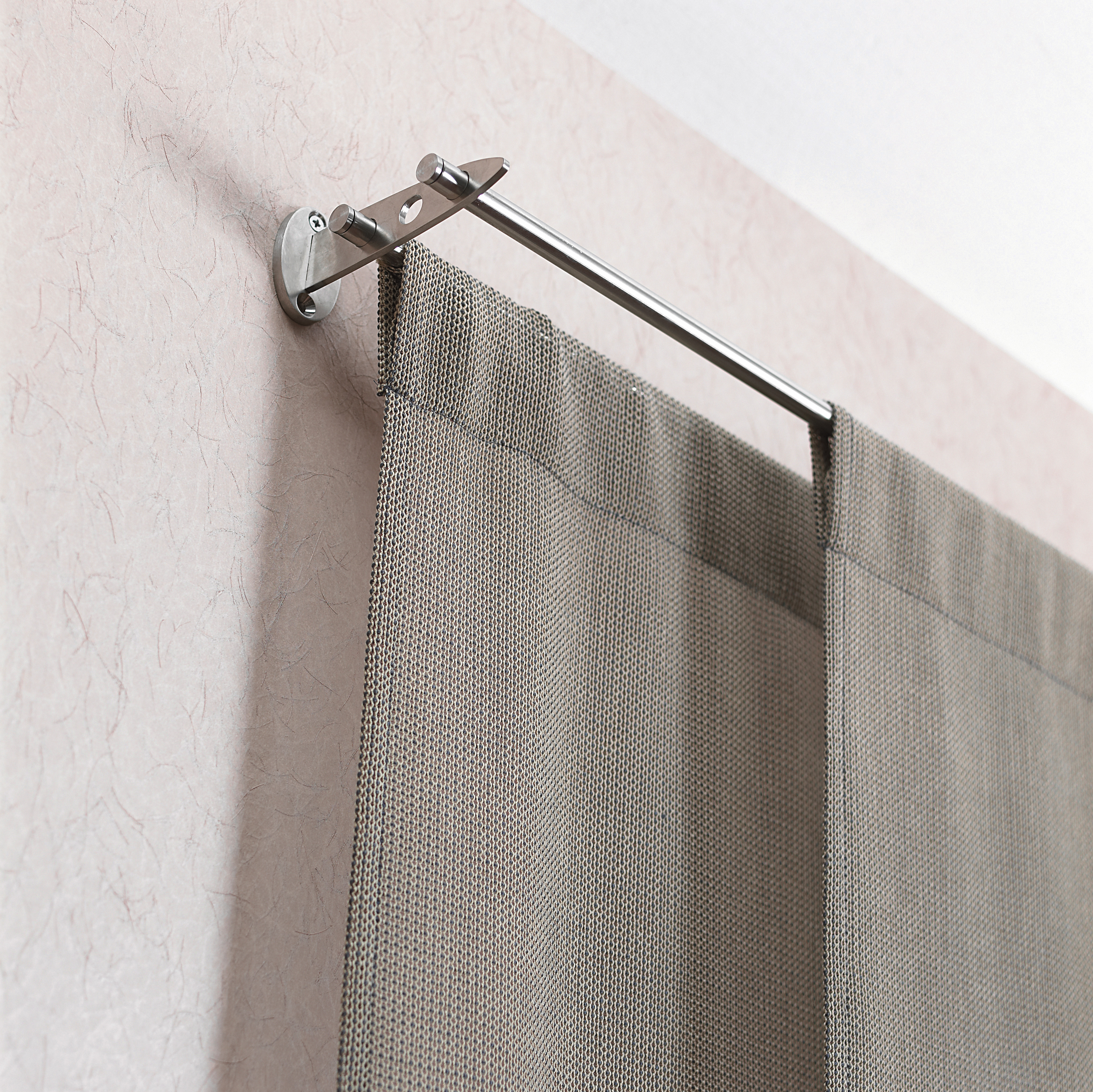 Hvert kvadrat er rammet inn med tynne bånd. Man bruker vanlig tapetlim på veggen ved montering. Det følger med ekstra bånd hvis man må kutte kvadratene. Tapetet har et flott fargespill fra grå-blått til beige og den lyseste beigefargen er hentet ut og brukt i tapetet på kontrastveggen.