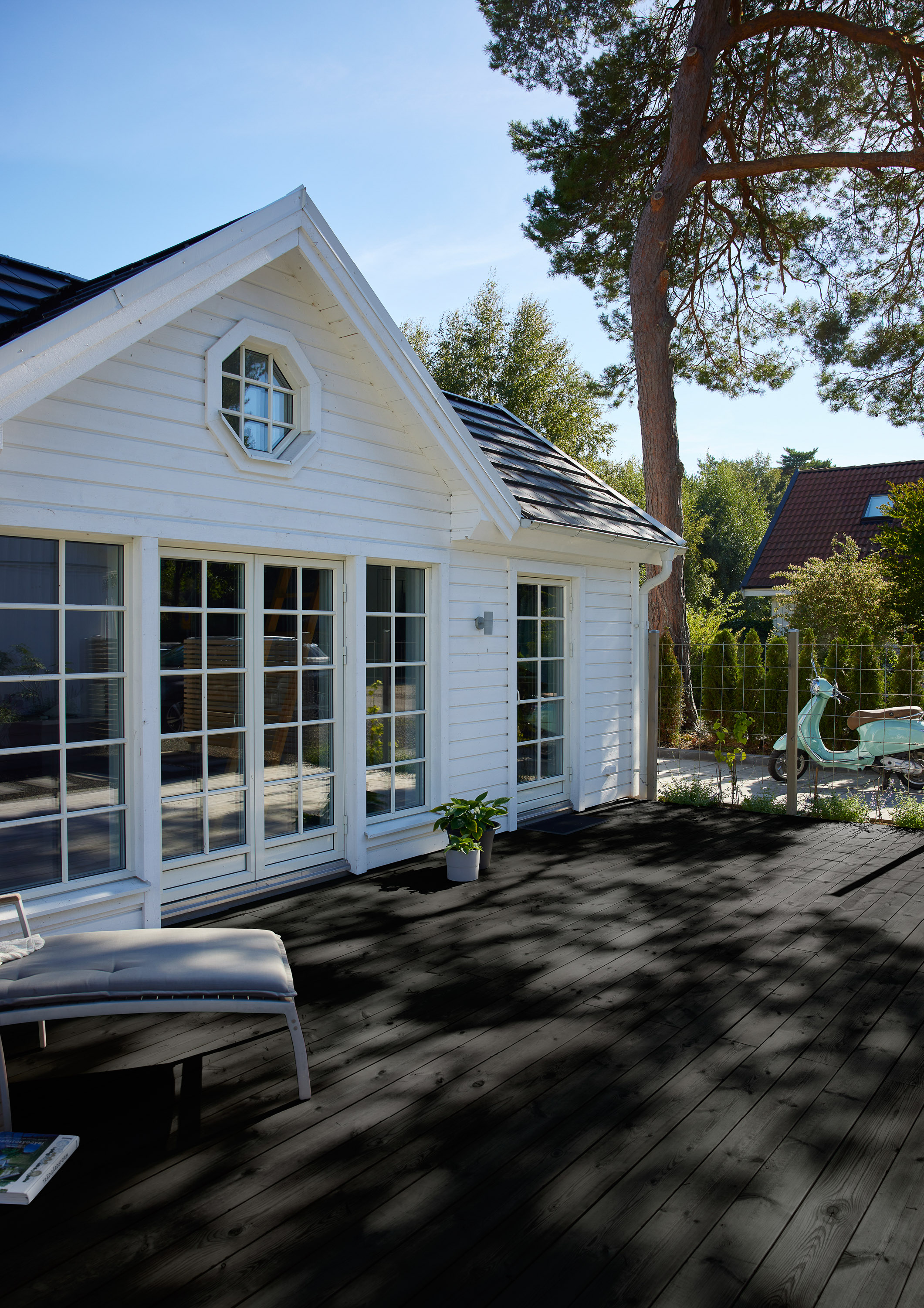– Se treverket som en del av en helhet, og ønsker du å fremheve det, velg en farge som avviker fra fargeskalaen på husfasaden. Det kan være greit å huske på at sollyset varmer opp treverket mer med mørke farger, råder Nordsjös fargesjef Ann-Charlotte Linde.