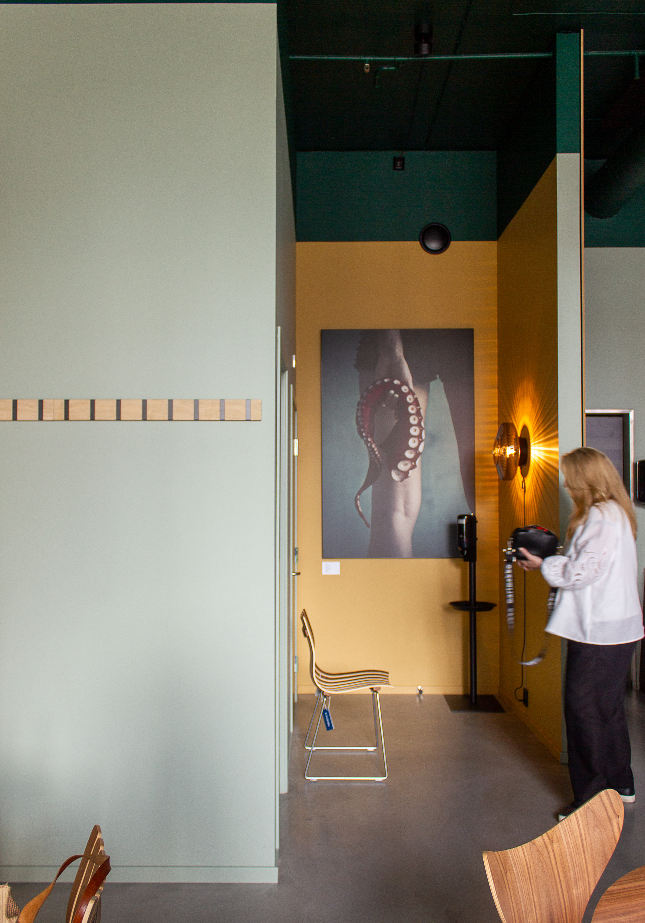 Farger og former som skaper kontrast er en gjenganger her, men også i flere av de nordiske interiørbutikkene. A. Huseby peker seg spesielt ut i denne kategorien med sine sterke farger på hyller og tepper rundt i lokalet. Fargepaletten i deres nye kafé 1889, som ligger vegg i vegg med butikken, strekker seg fra mild cognac, rød jord, sennep og til ulike toner av grønt.