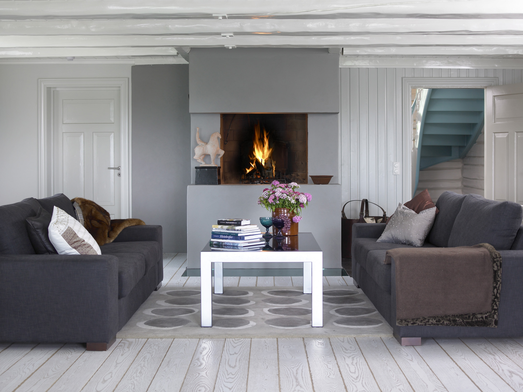 -I rom hvor arkitekturen ikke gir noen spennende detaljer, synes jeg det er fint å fargesette enkelte elementer slik at øyet får noe å dvele ved. Det er nærmest norsk tradisjon å male peisen hvit, men det gir ingen ”wow-effekt”. Den engelske designeren Tricia Guild i Designers Guild, sier det slik: