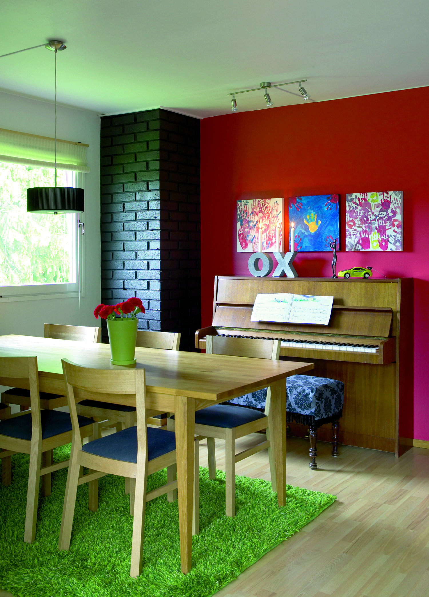 Har du et relativt kjedelig piano og en ganske kjedelig spisestue, i et nokså kjedelig rom, vil farger være med på å gjøre opplevelsen av rommet bedre.