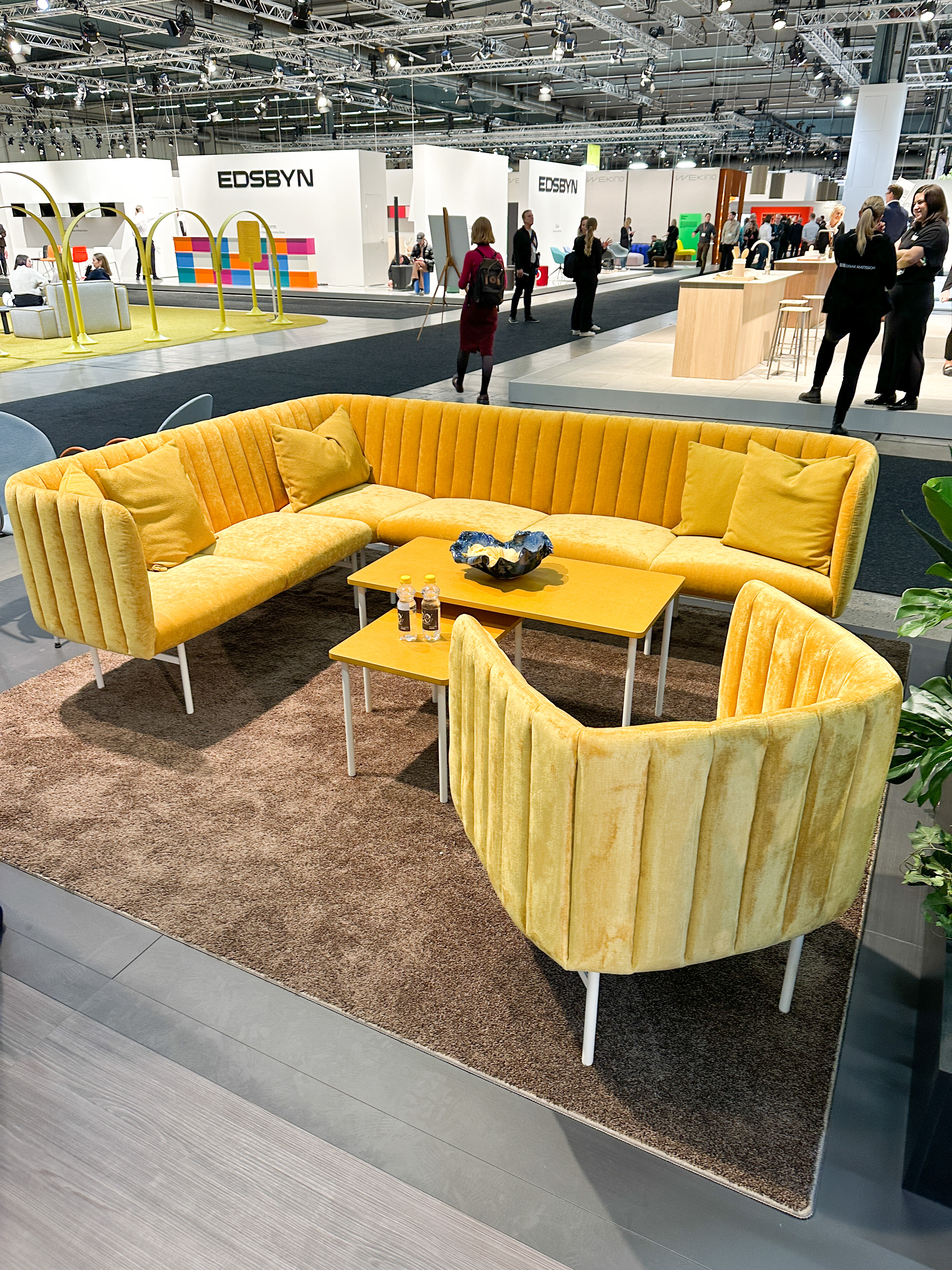 The Yellow Threas-prosjektet, ledet av designstudioet Färg&Blanche, demonstrerte på imponerende vis dette gjennom en gjennomtenkt bruk av tekstiler og tepper i et stort område med scene for foredrag og servering. Teppet i dette området var levert av Tarkett.