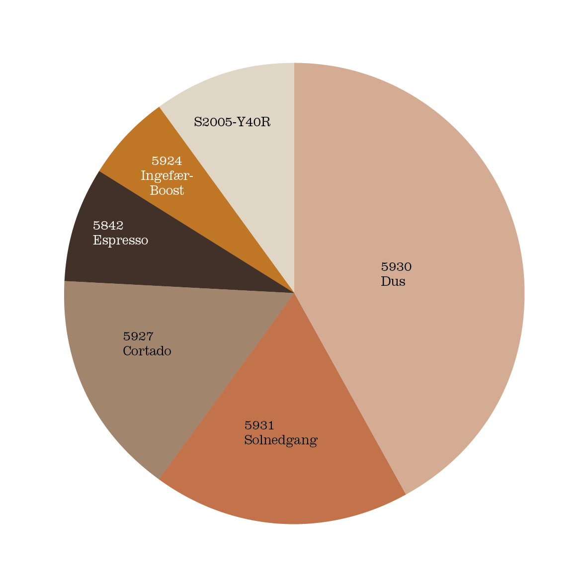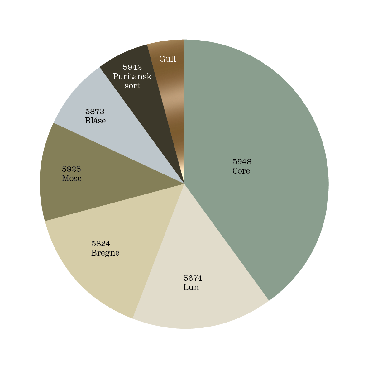 For å gjøre det enkelt har Jenny og hennes team satt sammen fire paletter, med farger hun vet mange vil like. Fargene er satt sammen i fargekaker.