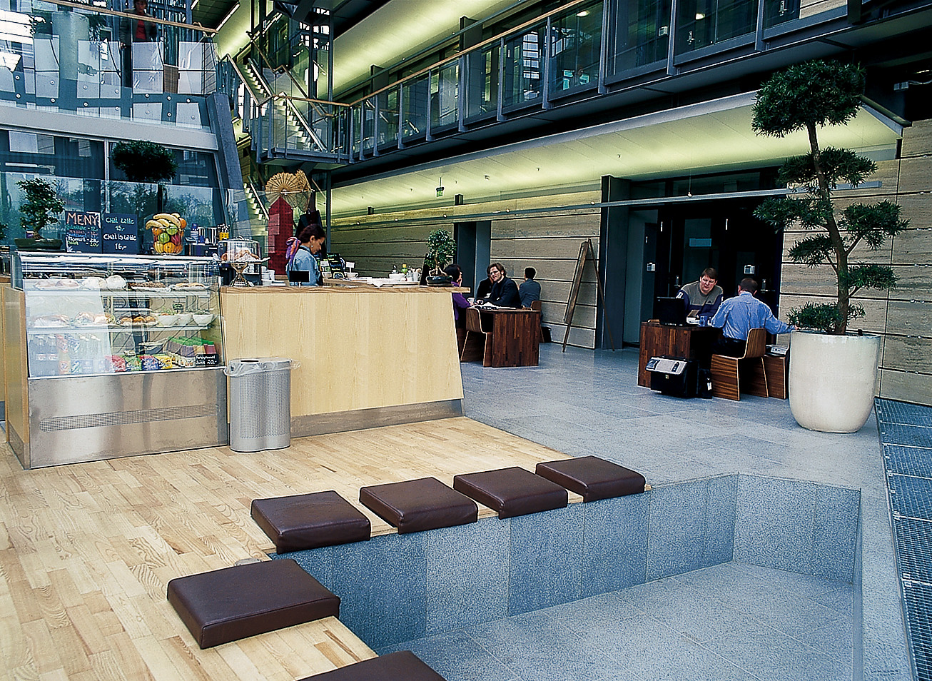 Fleksibel arbeidstid betyr også velutstyrte spisesteder for de ansatte. I tillegg til kaffebarer og tehus finnes fire restauranter, hver av dem med plass til ca 450 mennesker. Alle restaurantene har sitt eget farge- og stiluttrykk, i tillegg til utvalget av mat. F. eks. vil man i "Sundt begjær" fokusere på vegetarkost og salater, samt varmretter med fisk, kylling og grønnsaker. I "Olivenlunden" er rettene middelhavsinspirert. Kjøkkensjefene kommer bl.a. fra Italia, Frankrike og Portugal - og har tatt med seg gastronomiske ideer fra sine hjemland.