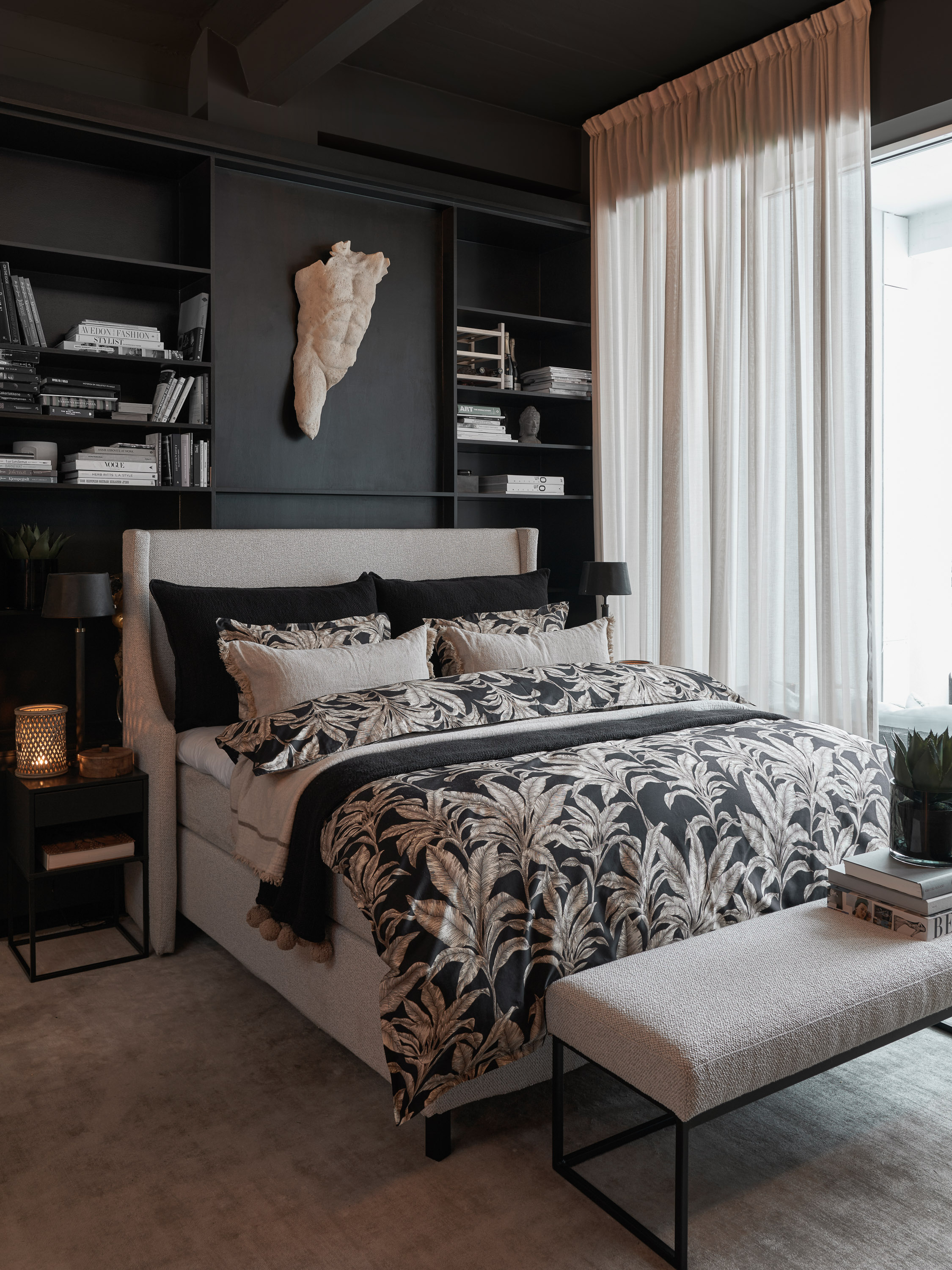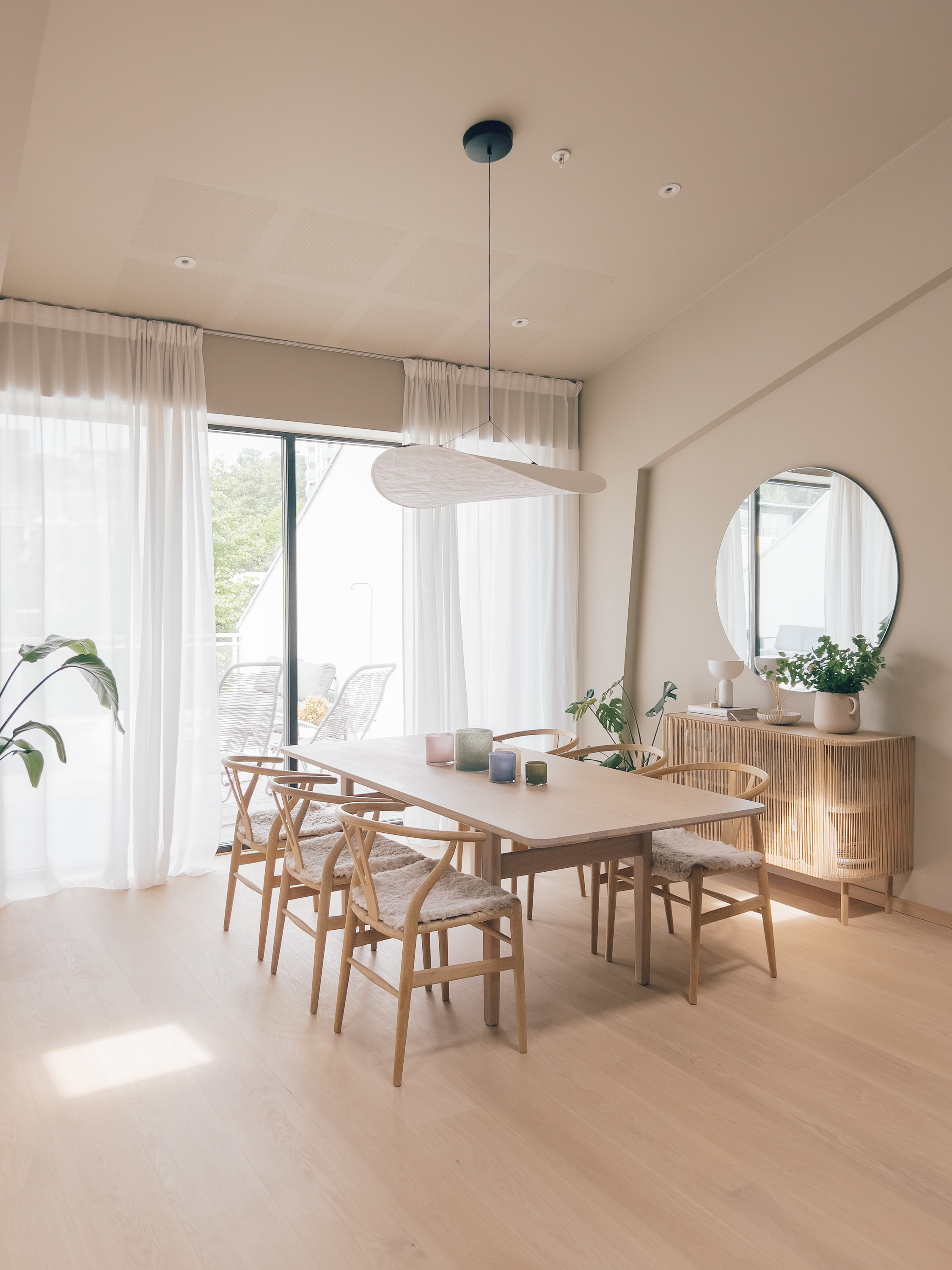 Tynnere, transparente gardiner er også populære, gjerne med matte eller svakt skinnende overflater som myker opp lysinnslippet og gir rommet et lett, luftig preg.