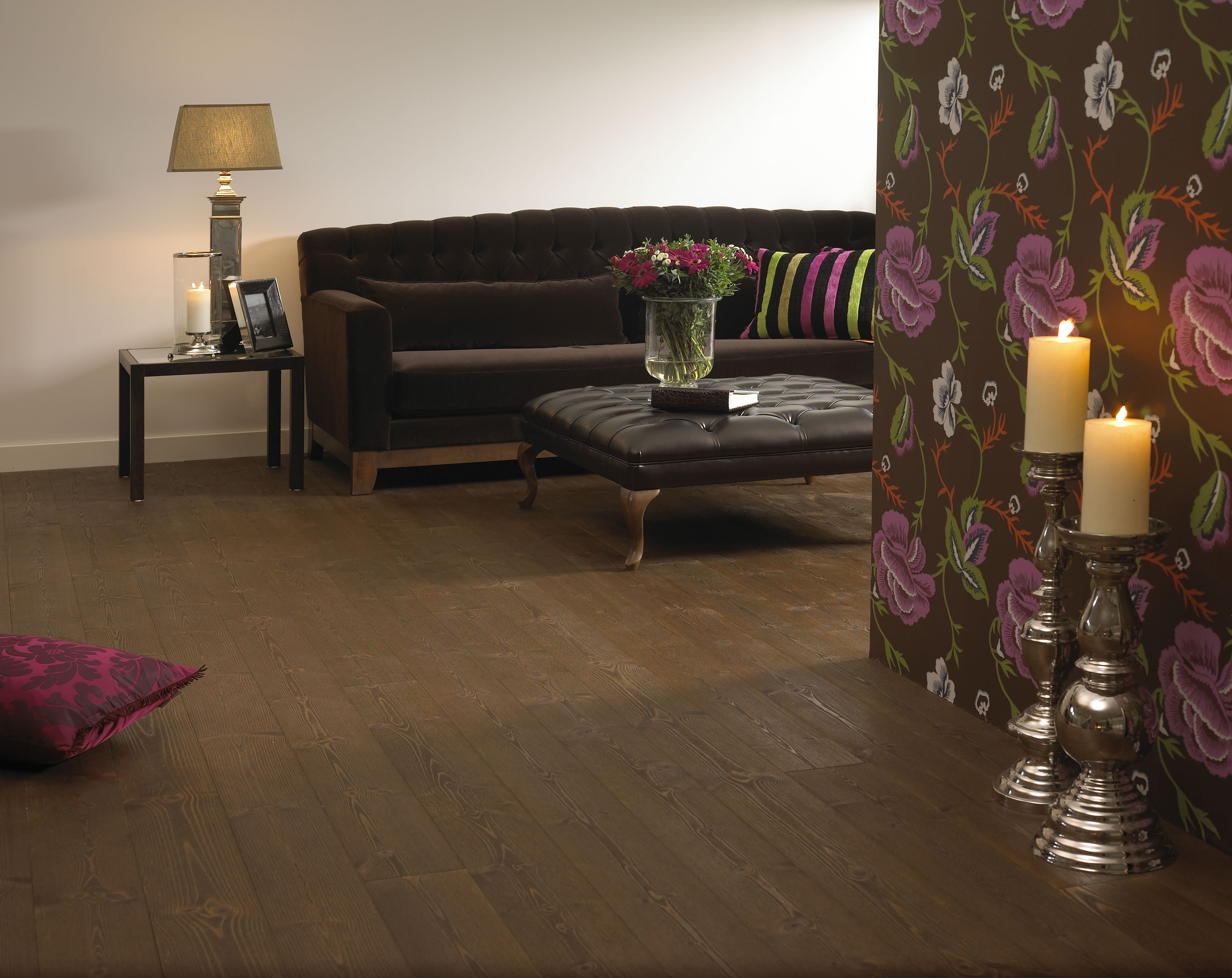 Skal bordene være smale eller brede? Vil du ha overflaten silkemyk eller en børstet, rustikk utførelse? Furu påført en mørkpigmentert olje, en lysgrå, hvit eller ufarget? Foretekkes lakkert naturlig utførelse? Den som vil ha et unikt gulv, velger ubehandlet og står fullstendig fri til å male, lasere, beise, lakkere, lute etter eget hode.