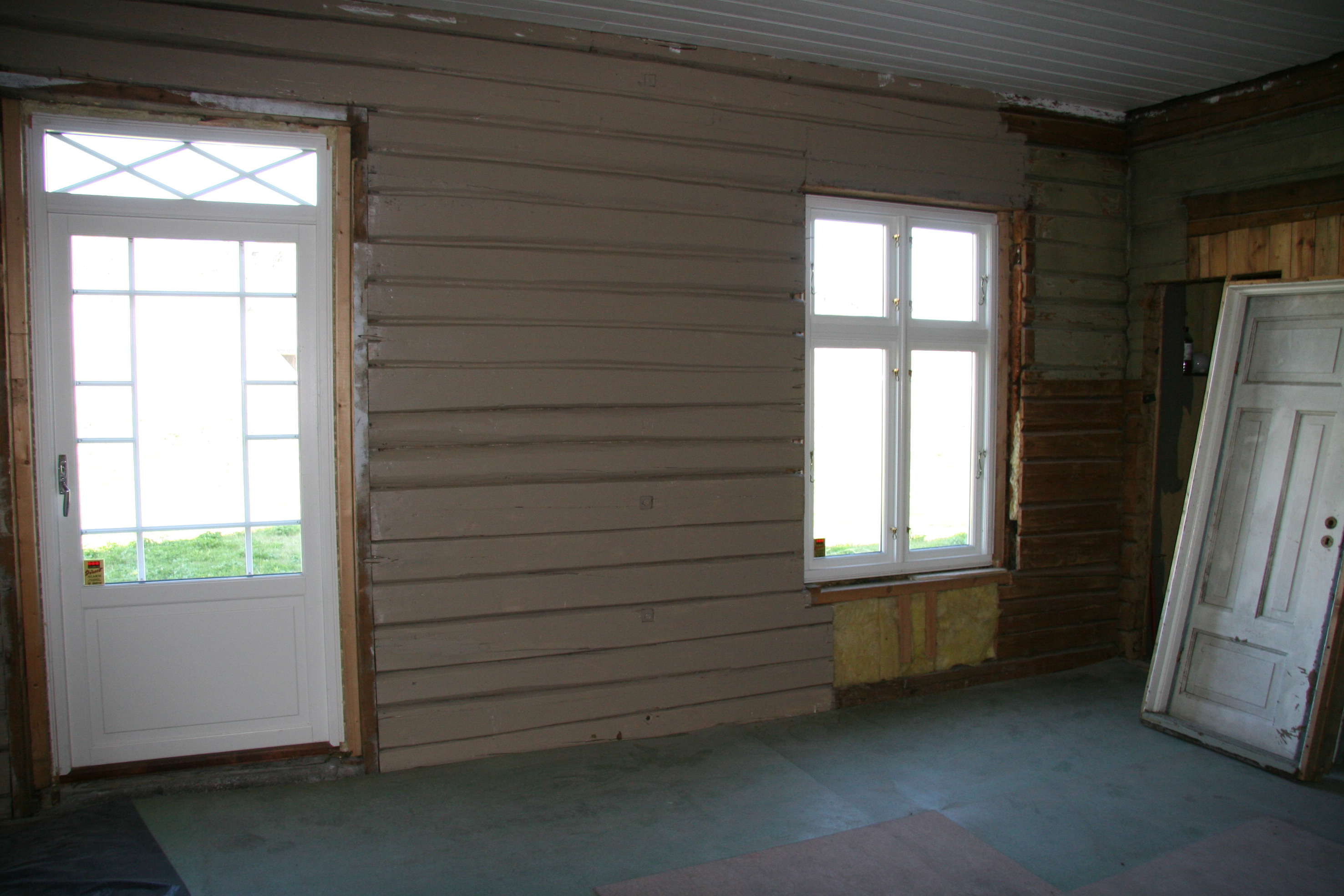 I det gamle huset er det funnet en herlig balanse i kontrasten mellom gamle rammer og moderne elementer, ikke minst i form av en stram kjøkkeninnredning mot det røffe tømmeret.