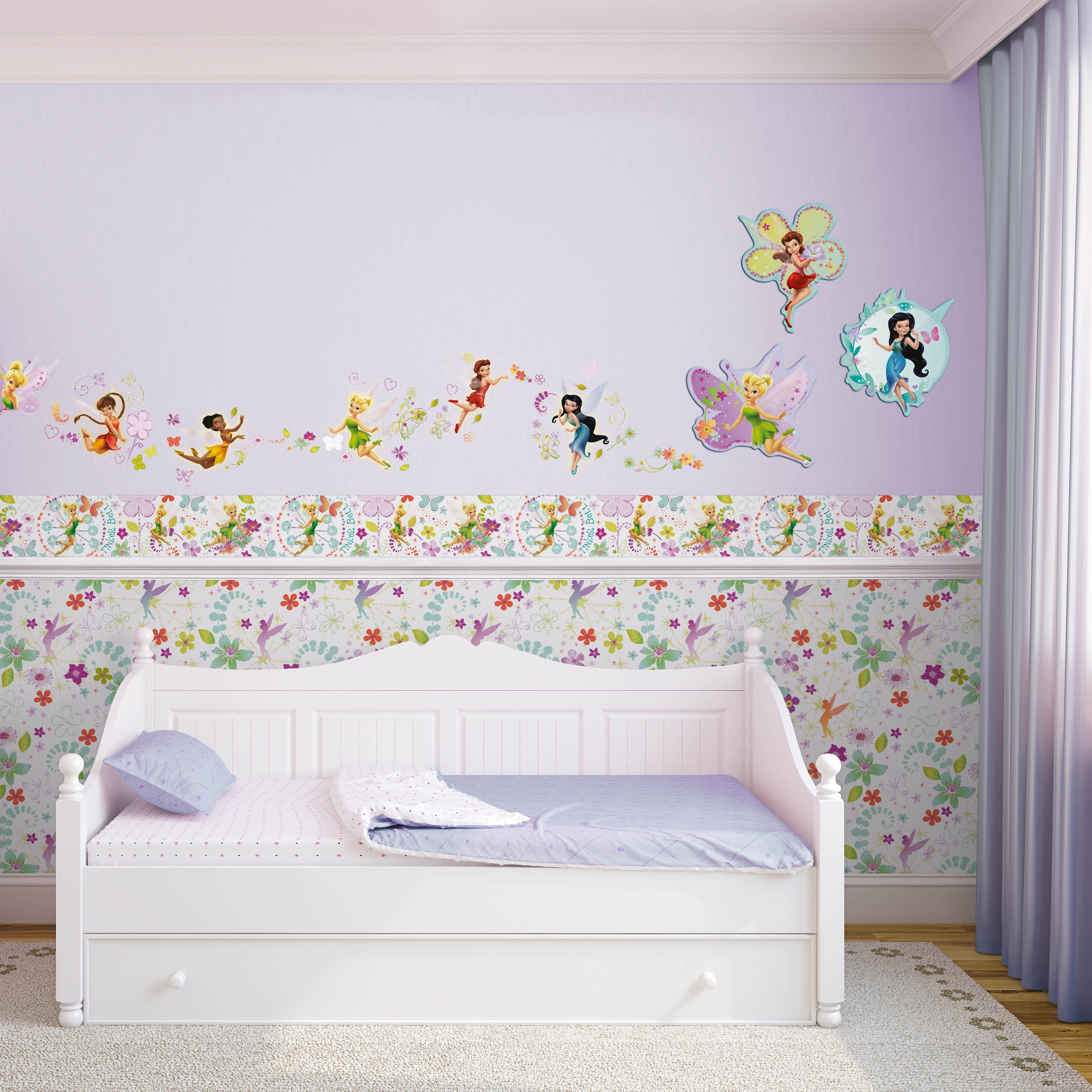 På et lite barnerom behøver man ikke ha et 20 års-perspektiv på interiøret. Javel, kanskje vesla går lei av rosa eller junior får nok av brannbiltapetet etterhvert, men det er da ingen stor sak å tapetsere eller male om en vegg eller to om et par år, så lenge barnet får et rom de trives i og er stolt av?