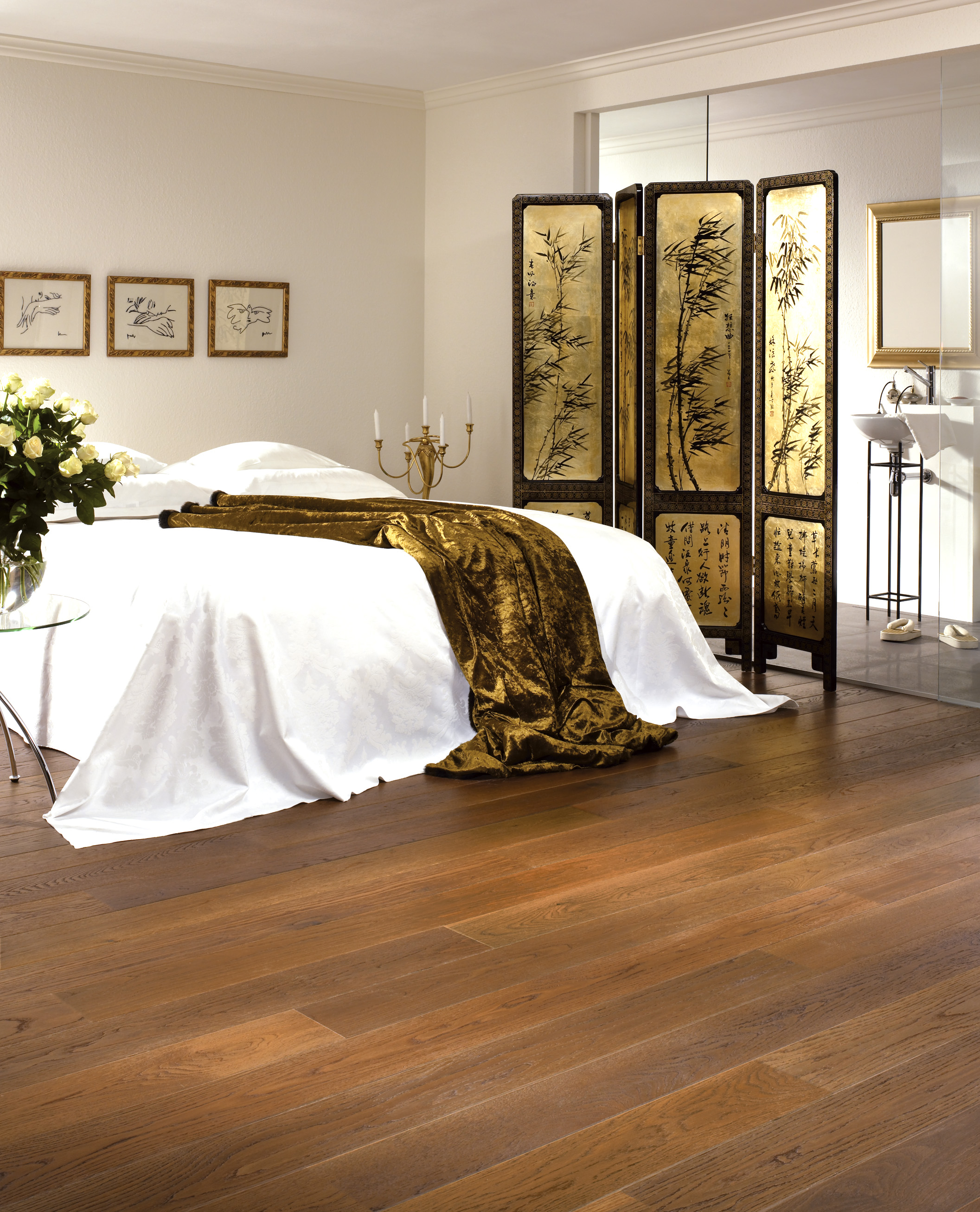 Andre eksempel på gjennomfarget parkett er Eik Java og årets nyhet er bjørk med kakaofarge, altså igjen en lys nordisk parkett som er blitt mørk.