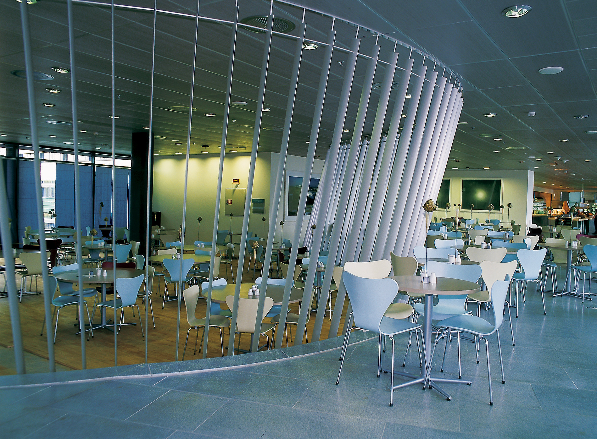 Til en viss grad følger man fargesirkelen rundt i bygget. Arkitektene har valgt å være ærlige i forhold til beliggenheten med varme farger og mørke toner mot landsiden og lyse og transparente farger mot fjorden. I den nordlige fløyen går man derfor fra rødt i vest via lilla varianter mot lyse blågrå, transparente farger i øst. I sørfløyen går man motsatt vei, fra de lyse mot fjorden, via grønt og tilbake til rødt. Veggene i kontorlandskapene er i hovedsak hvite, men fargene kommer til uttrykk i kjernene i bygget, som rommer tekniske installasjoner, i dekoren i gardinene, i lysavskjermende paneler og til dels i møbler. Gulvbelegget følger denne holdningen med bl.a. oljet merbau og mørk granitt mot vest, oljet ask og lys granitt mot øst.