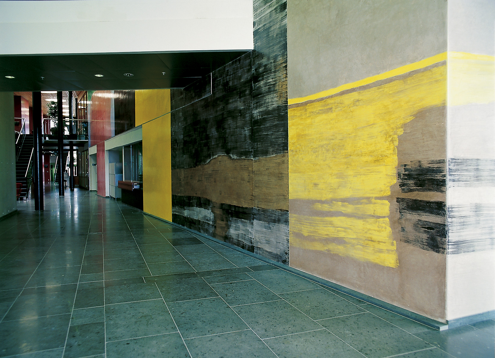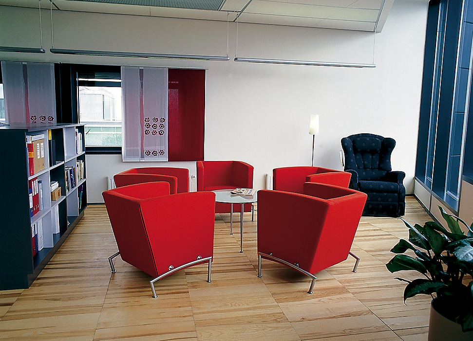 Arkitekt og byggherre har hatt en bevisst holdning til farge- og materialbruk. Allerede tidlig i prosjekteringen ble det utarbeidet en helhetsprofil. Generelt har man holdt seg til linoleum og laminat i arbeidsområdene, der belegget for en stor del befinner seg på et datagulv med omfattende kabling under. Fellesområdene har fått parkett og stein.