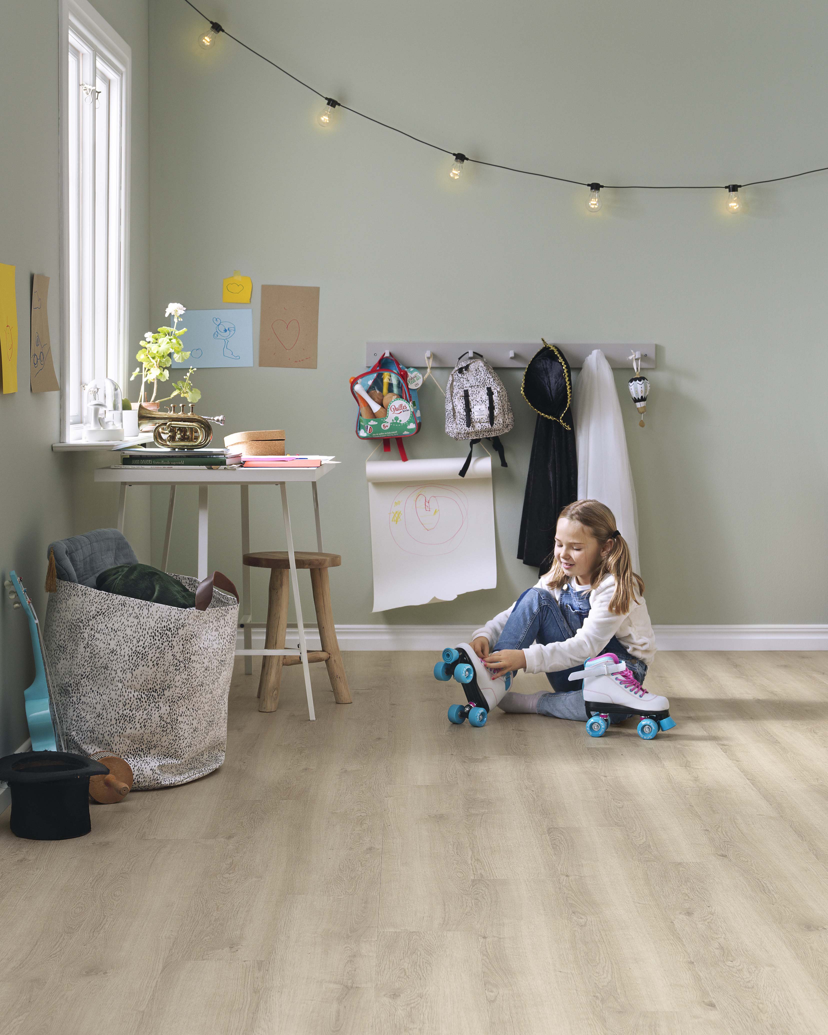 – Vinylgulv har alle de gode egenskapene som ønskes på barnerom, sier hun, og utdyper: Barn vokser seg store, og behovene når det kommer til gulvet endres raskt. Men i utgangspunktet er det denne generasjonen som sitter mye og leker på gulvet. Det å ha et lunt og behagelig gulv som er godt å gå og sitte på er viktig. Velg derfor et gulv som er varmegivende, lunt, renholdsvennlig og komfortabelt, som vinylgulv.