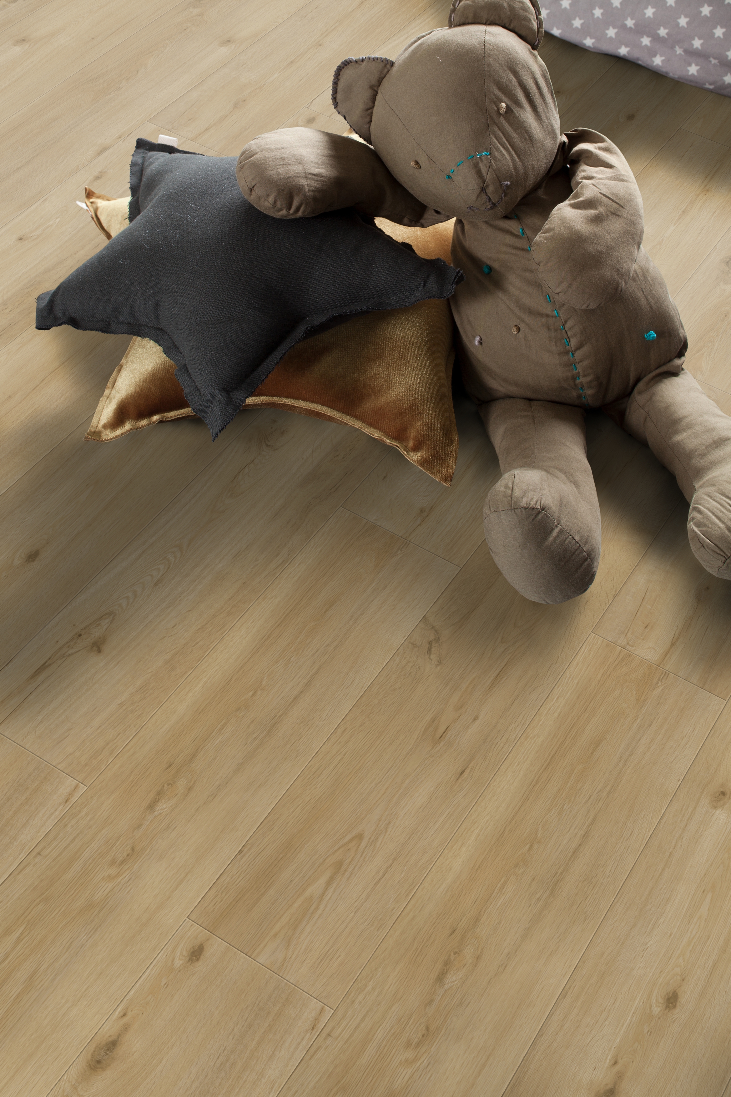 – I første rekke, for de yngste, vil jeg anbefale vinylgulv, som er myke, komfortable og lette å holde rene, eller klikkgulv med en akustikkdempende bakside. Dette er gulv med gode egenskaper og som er enkle å vedlikeholde. De føles også varme og er myke, forklarer hun.