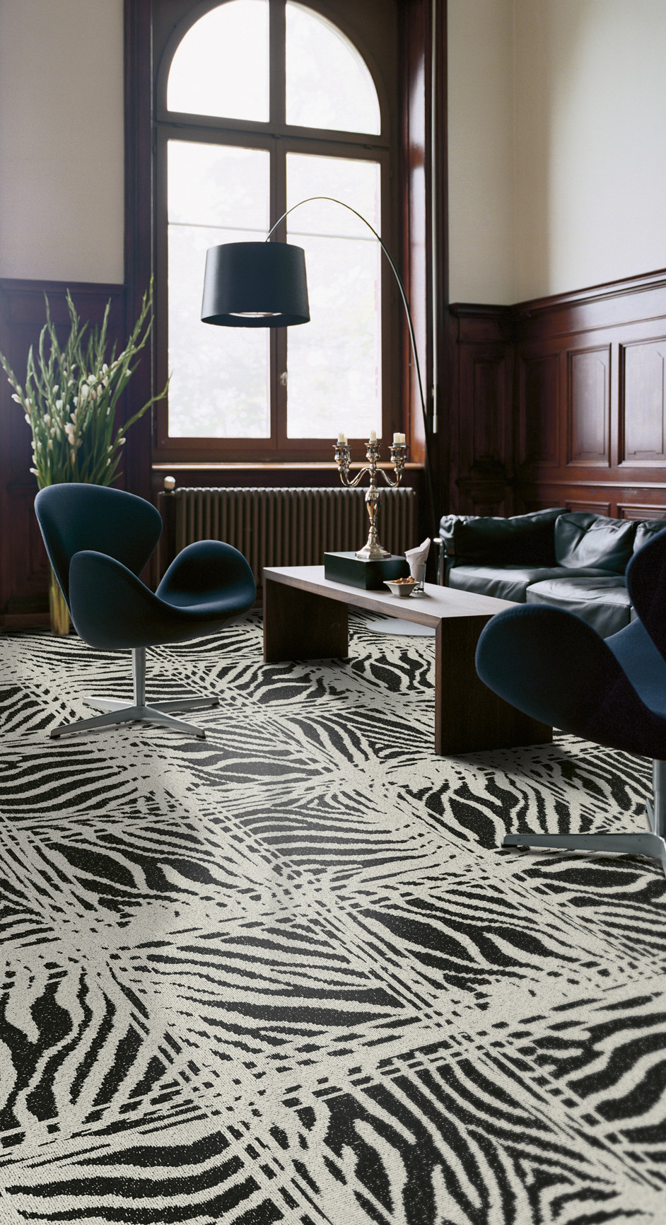 Vegg-til-vegg-teppene er sterkt tilbake, med så stor slitestyrke at de kan ligge i offentlige miljøer. Luven har blitt kortere og tettere til fordel for flotte mønstre, som gjør gulvet til et blikkfang i seg selv. Møbler blir nesten unødvendig.