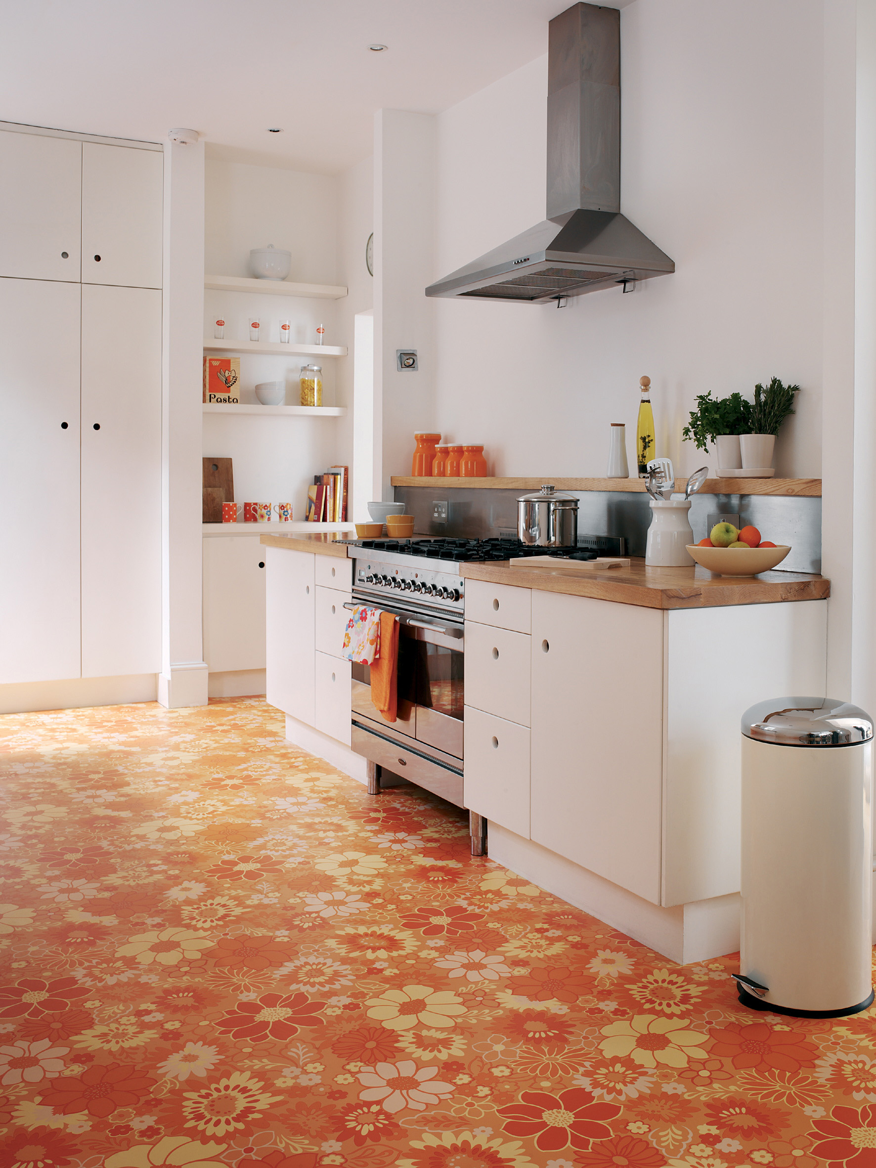 Som banevare er linoleum like tynn som vinyl, bare 2,5 millimeter. I ulike farger kan den skjæres til og kombineres i mønstre som ikke er firkantet. Slik kan gulvet fremheve deler av rommet eller lage "stier" som viser vei. Selv om dette mest er brukt i offentlige innredninger, er det ikke noe i veien for å gjøre det også hjemme.