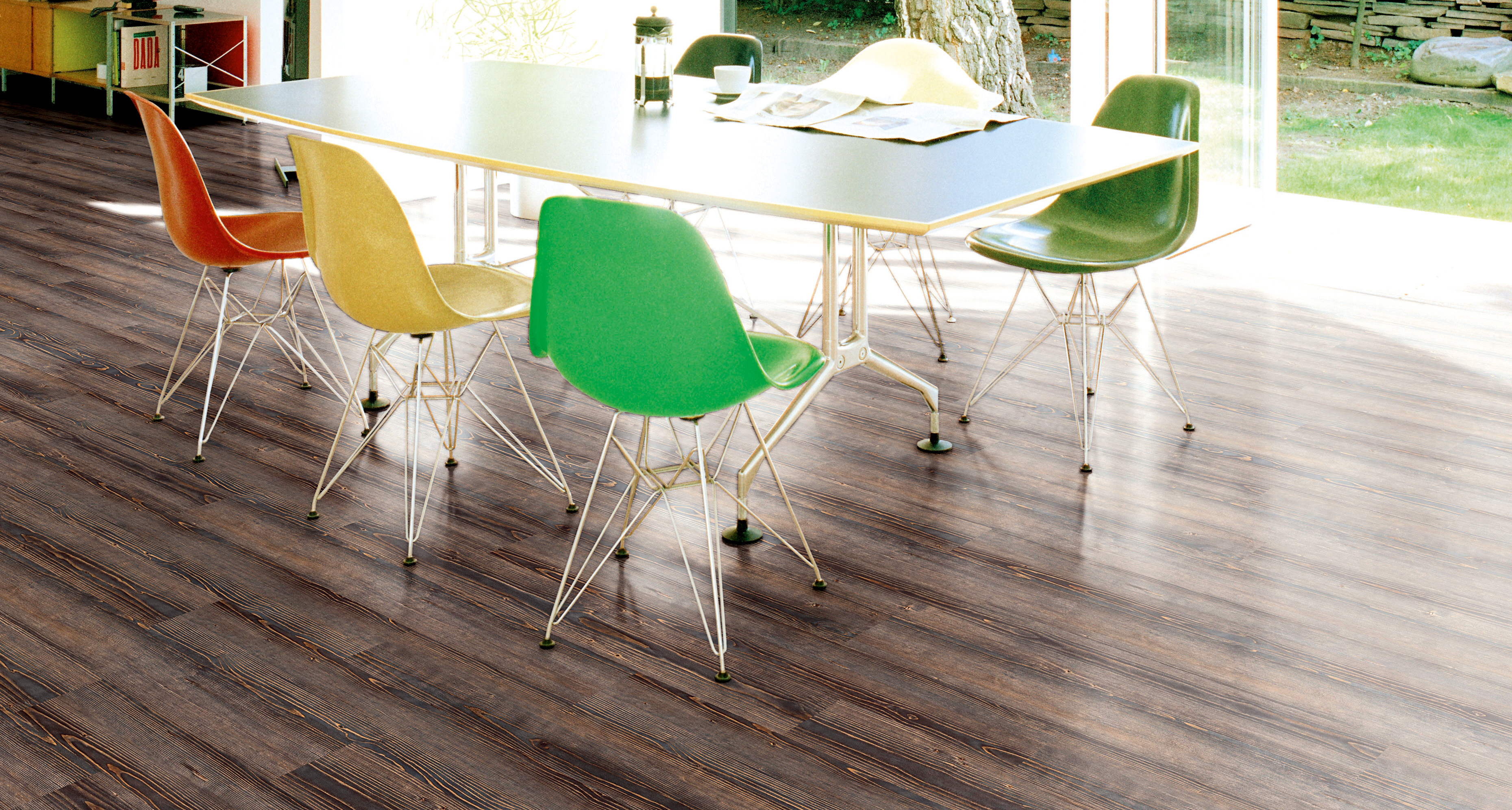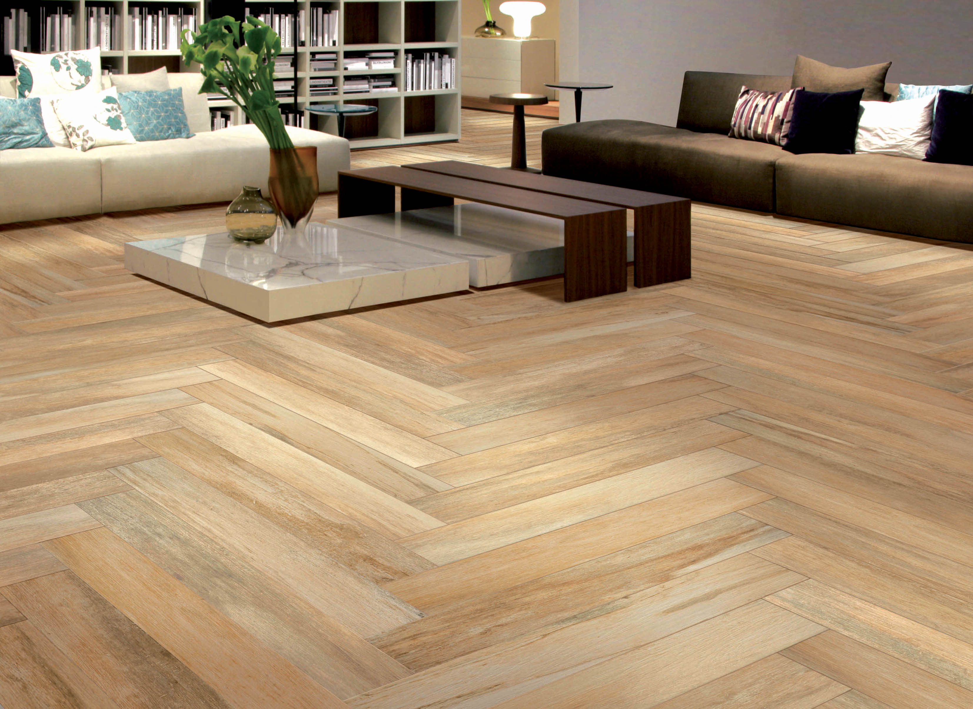 Stadig flere får øynene opp for gulvets muligheter i helheten. Innredernes favoritter er massive, brede plank, helst med grålig, hvitaktig eller gråbrun fargetone, og trestrukturen skal være tydelig og overflaten matt. Markedet er rikt på muligheter. Massivt tre er idealet, men tilbudet er rikt også innen parkett, laminat og vinyl. Til og med produsentene av keramiske fliser har kastet seg på tretrenden.