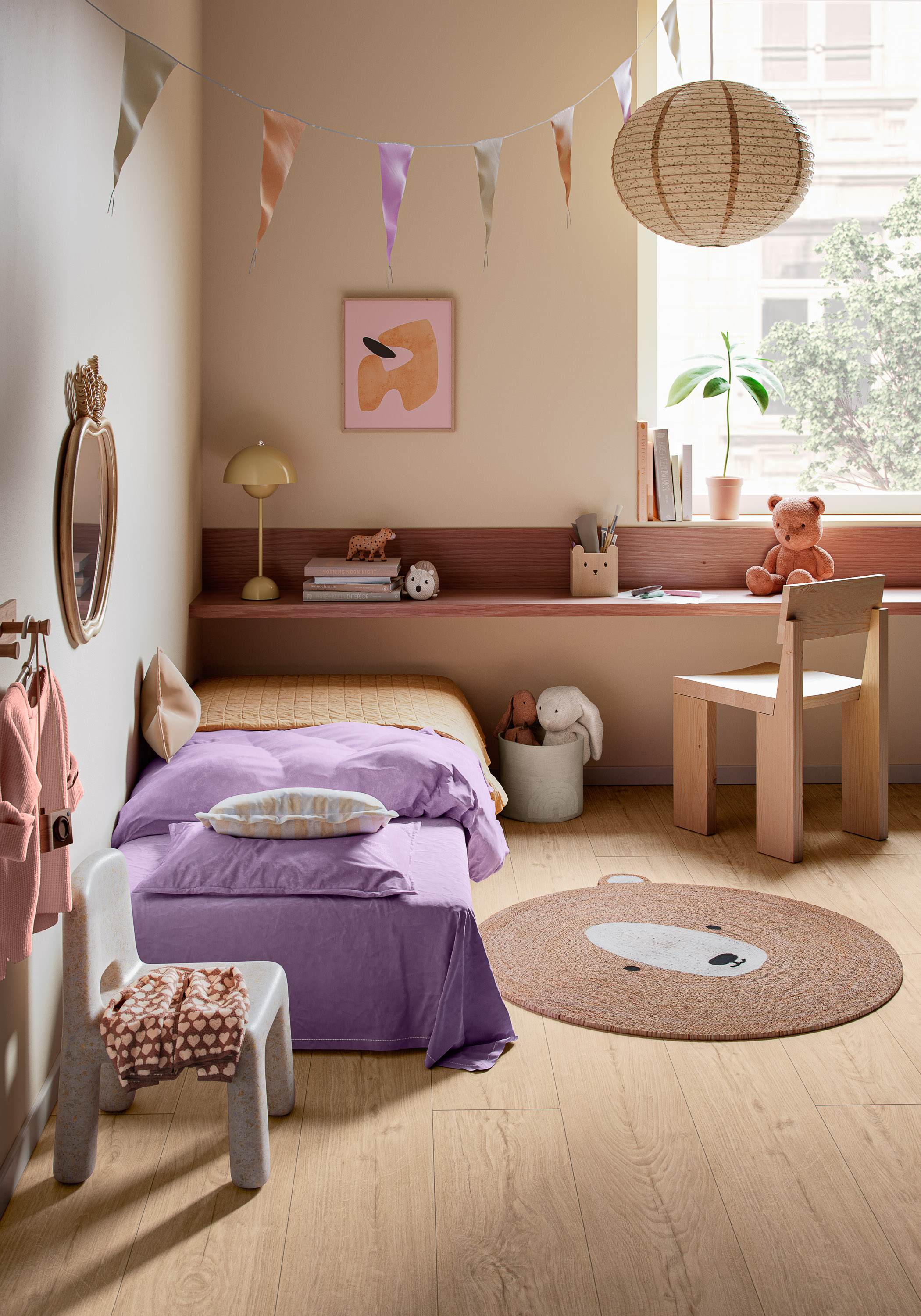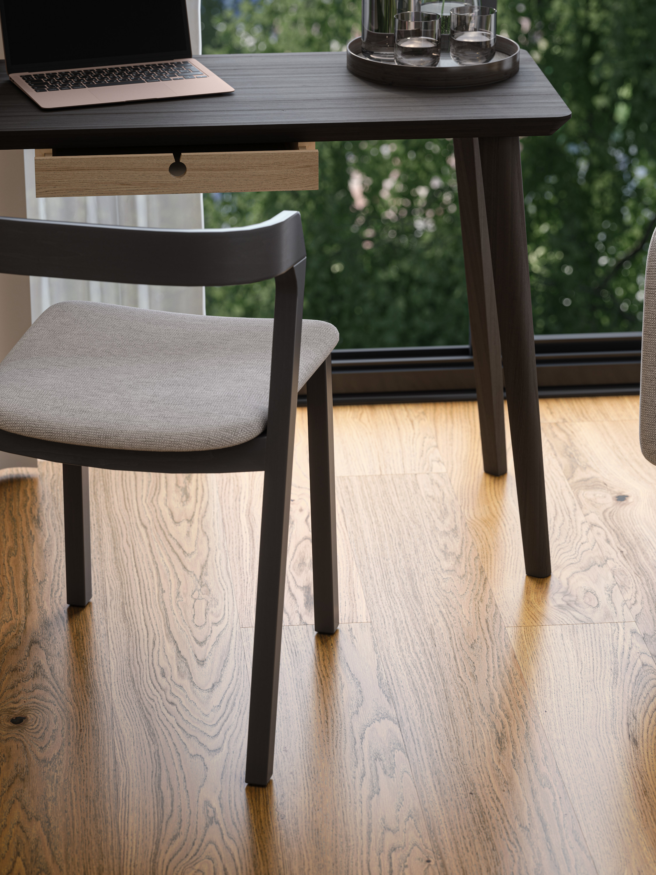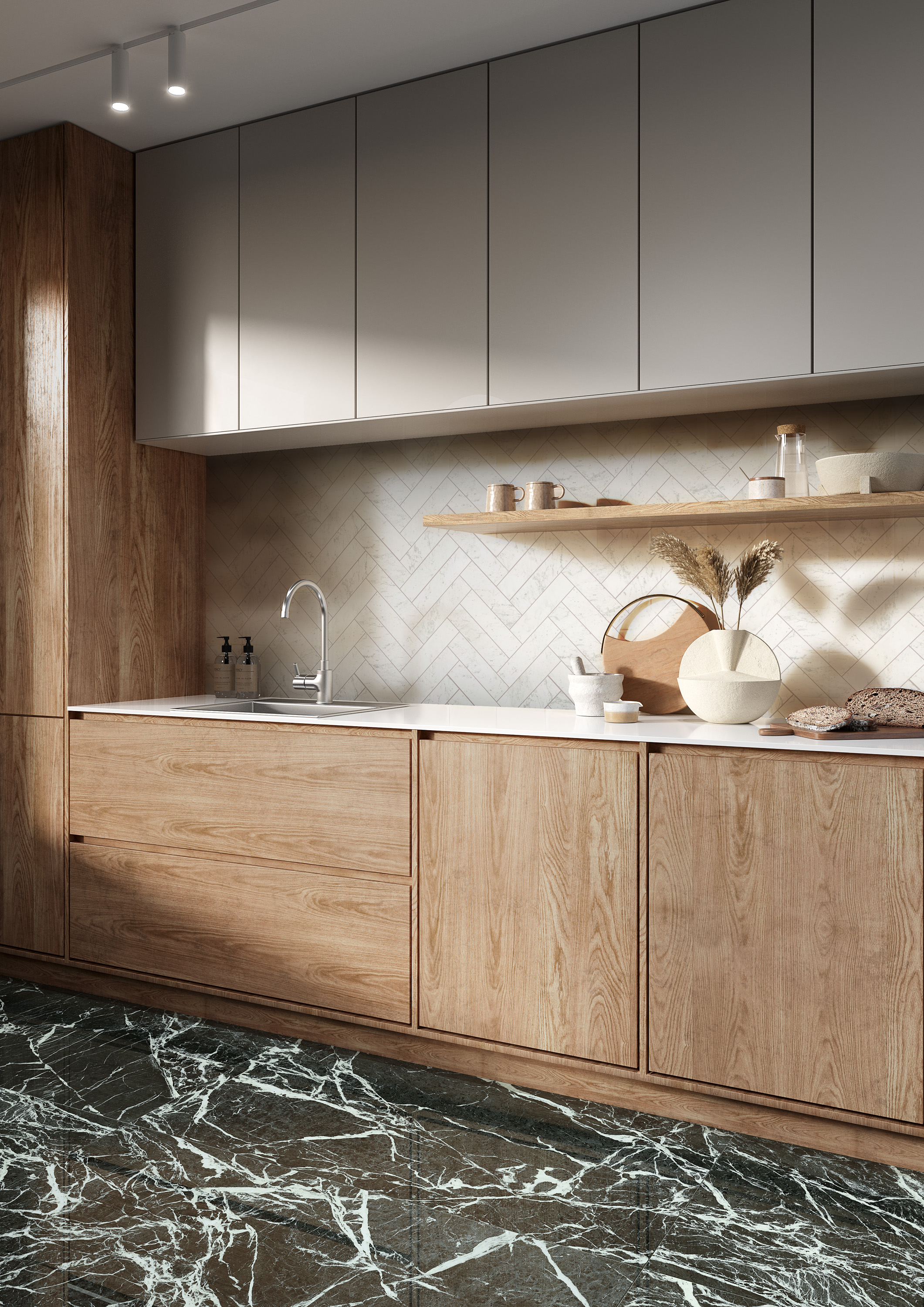 Gulv skal gjøre mer enn å ligge flatt på gulvet. Det skal være sanselig. For 2026 vil stadig flere velge taktile overflater som imiterer kalkstein, marmor, skifer eller gi inntrykk av å være tre. Matt finish gir et mykere uttrykk enn høyglans og skjuler daglig bruk bedre.