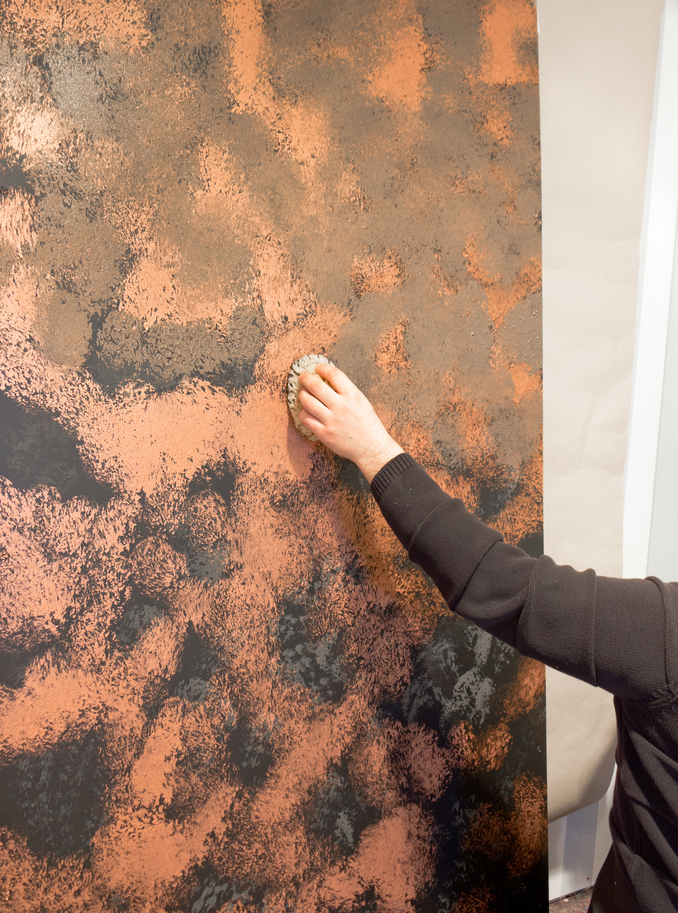 5. Aktivatoren kan gjerne renne over overflaten, stoples ut, eller børstes forsiktig, for å gi ønsket effekt. Stoplingen forhindrer rennemerker og luftbobler fra å dannes, samt blander pigmentene.